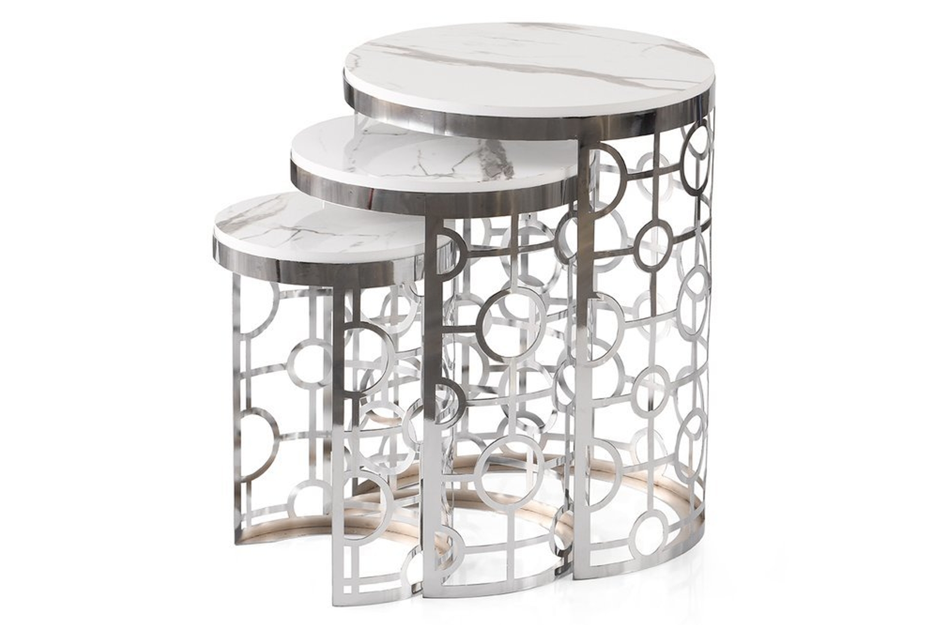 Ürünün ayağı krom pervane desen olup, tablası beyaz mermer high glosstur.