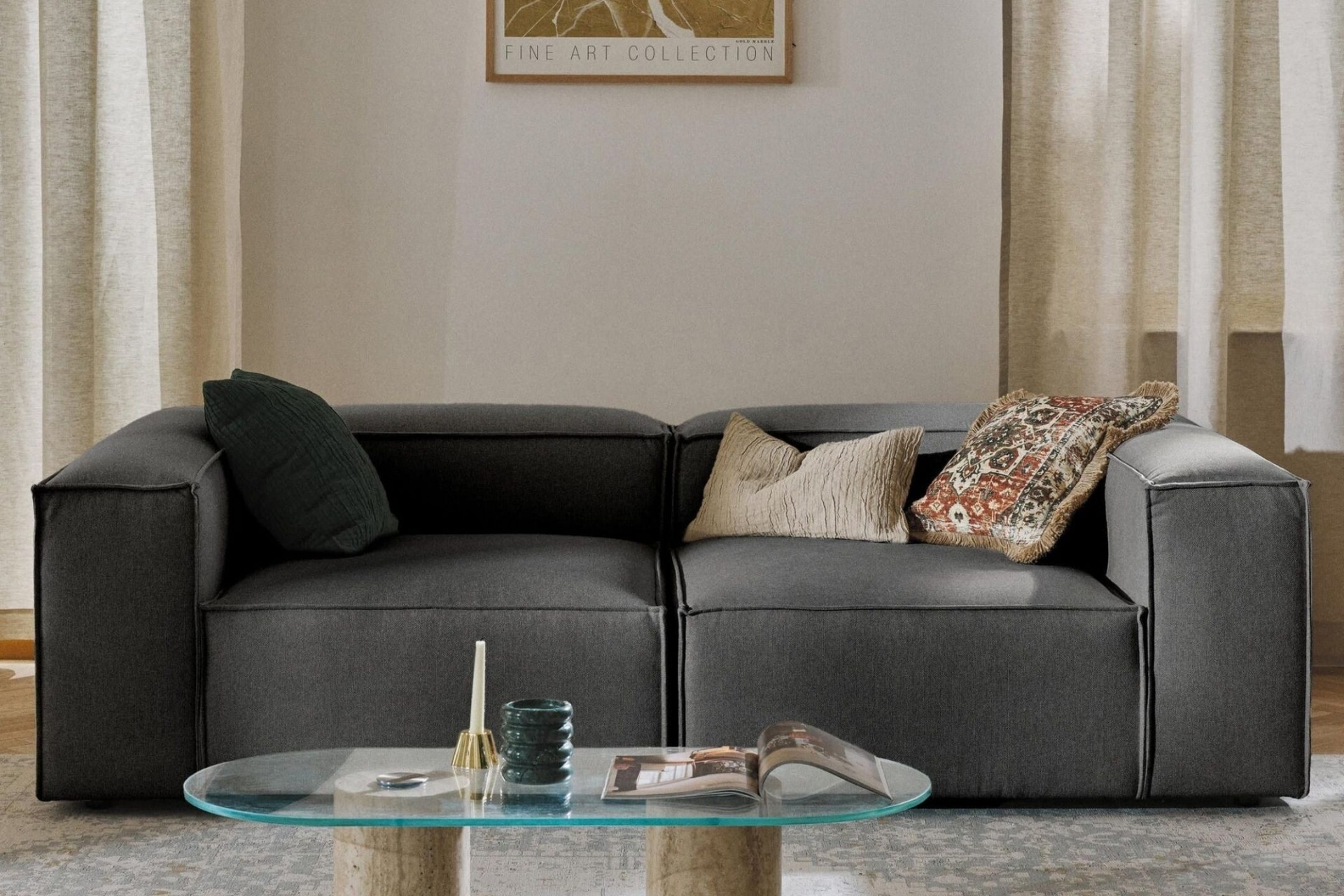 LENA İKİLİ KETEN KANEPE,ANTRESİT 210 cm 105 cm 66 cm