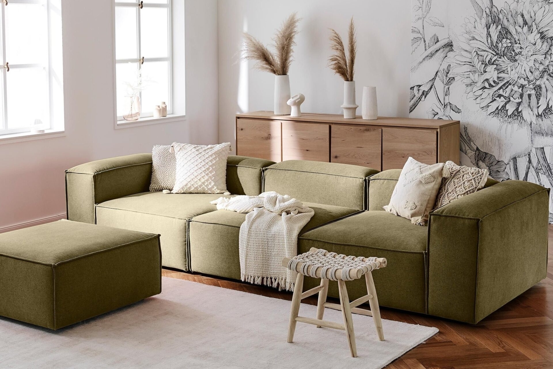 LENA KETEN MODÜLER KÖŞE KOLTUK TAKIMI,YEŞİL 296 cm 105 cm 66 cm