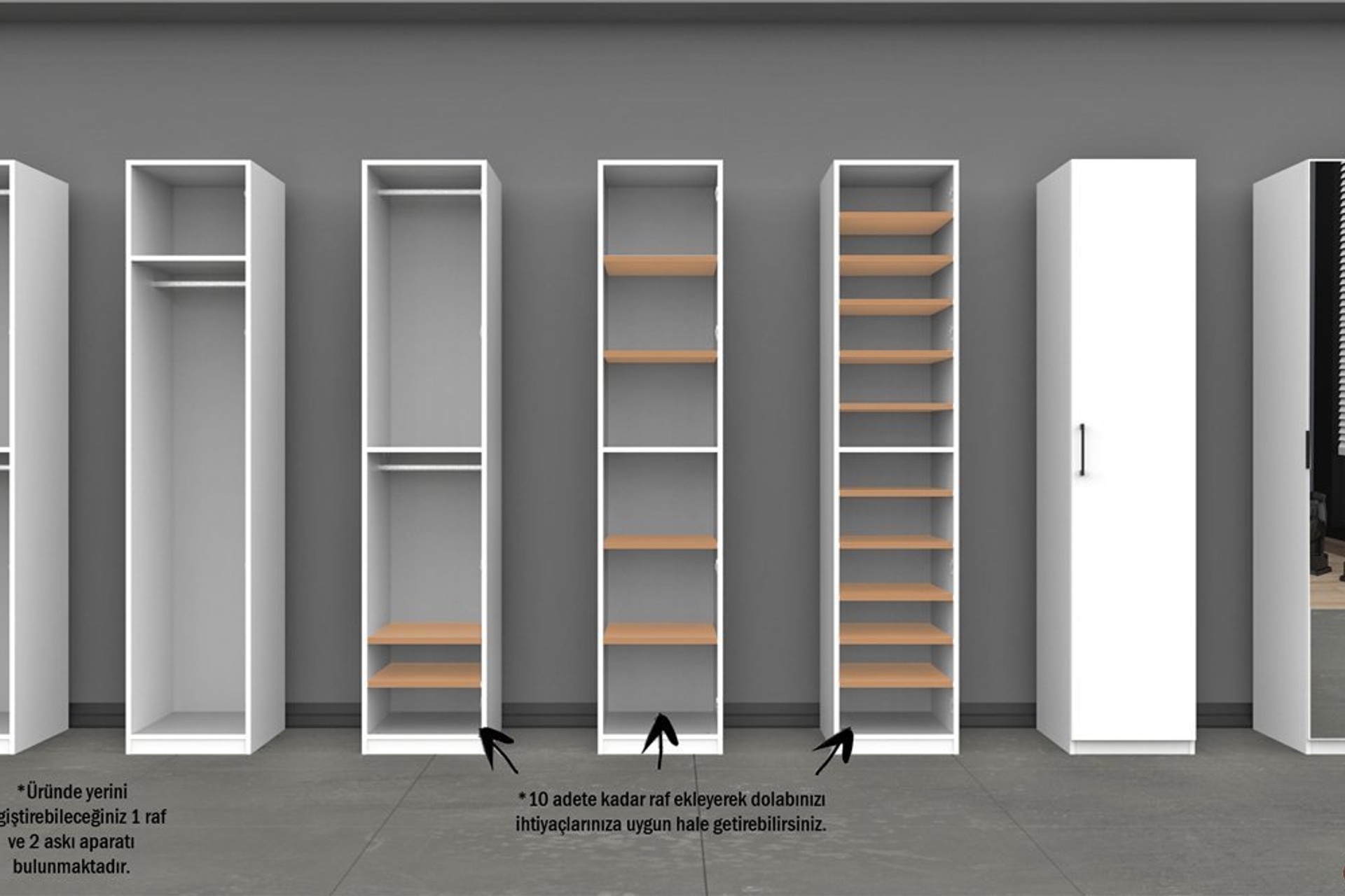 * Standart takım içeriği: 1 adet Tek Kapılı Aynalı Modül. Takım indiriminden yararlanmak için bu ürünleri sepete eklemelisin.