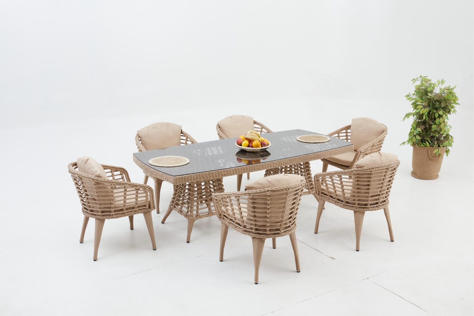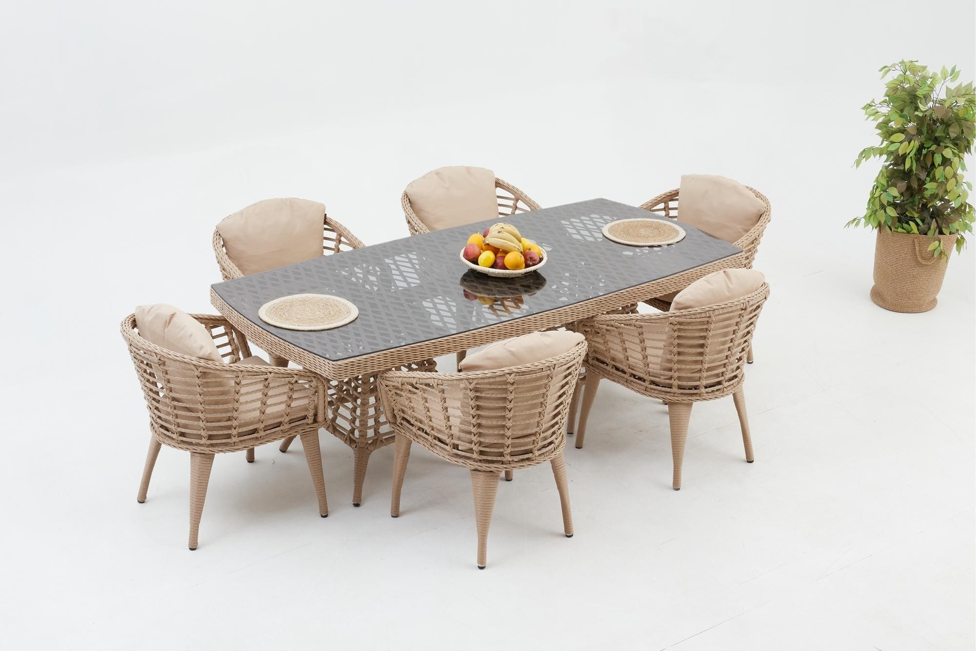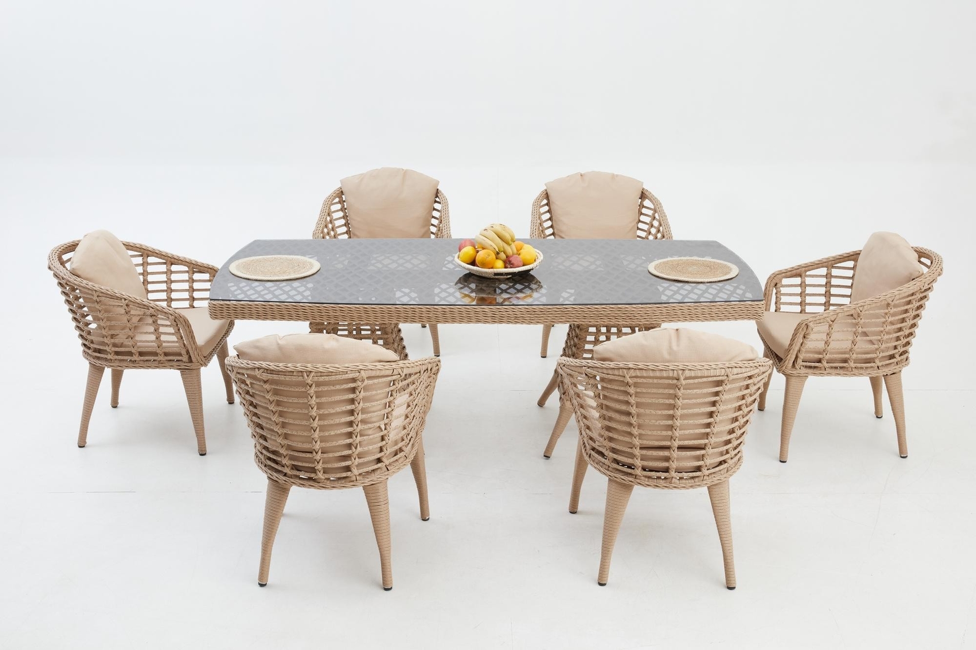Ek BilgilerBu set size uzun süre hizmet edecek kadar sağlam ve dayanıklıdır.Minderler size rahat bir oturma deneyimi sunuyor. Bu minderlerin kılıfları fermuarlı tasarımı sayesinde çıkarılabilir. Bahçe, havuz başı ve veranda gibi dış mekanlar için uygundur. • UV ve Hava Koşullarına Dayanıklı • Renk Solmasına Karşı Korumalı • Yıkanabilir ve Dayanıklı • Zararlı Madde İçermez ve Çevre Dostudur • 100% Geri Dönüştürülebilir. ÖZELLİKLERİ • Minderler, rahatlık ve yumuşaklık için yüksek yoğunluklu süngerle doldurulmuştur. • Rahat kullanım ve temizlik için temperli camlı masa • Minderlerin kılıfları fermuarlıdır, yıkanmak üzere kolayca çıkarılabilir ÜRÜN DETAYLARI • Dış Çerçeve Malzemesi: Rattan masa ve sandalye gövde malzemesi alüminyum • Çerçeve Dayanıklılığı: Hava Koşullarına Dayanıklı; Suya Dayanıklılık • Yastık Döşeme Malzemesi: Polyester / Polyester Karışımı