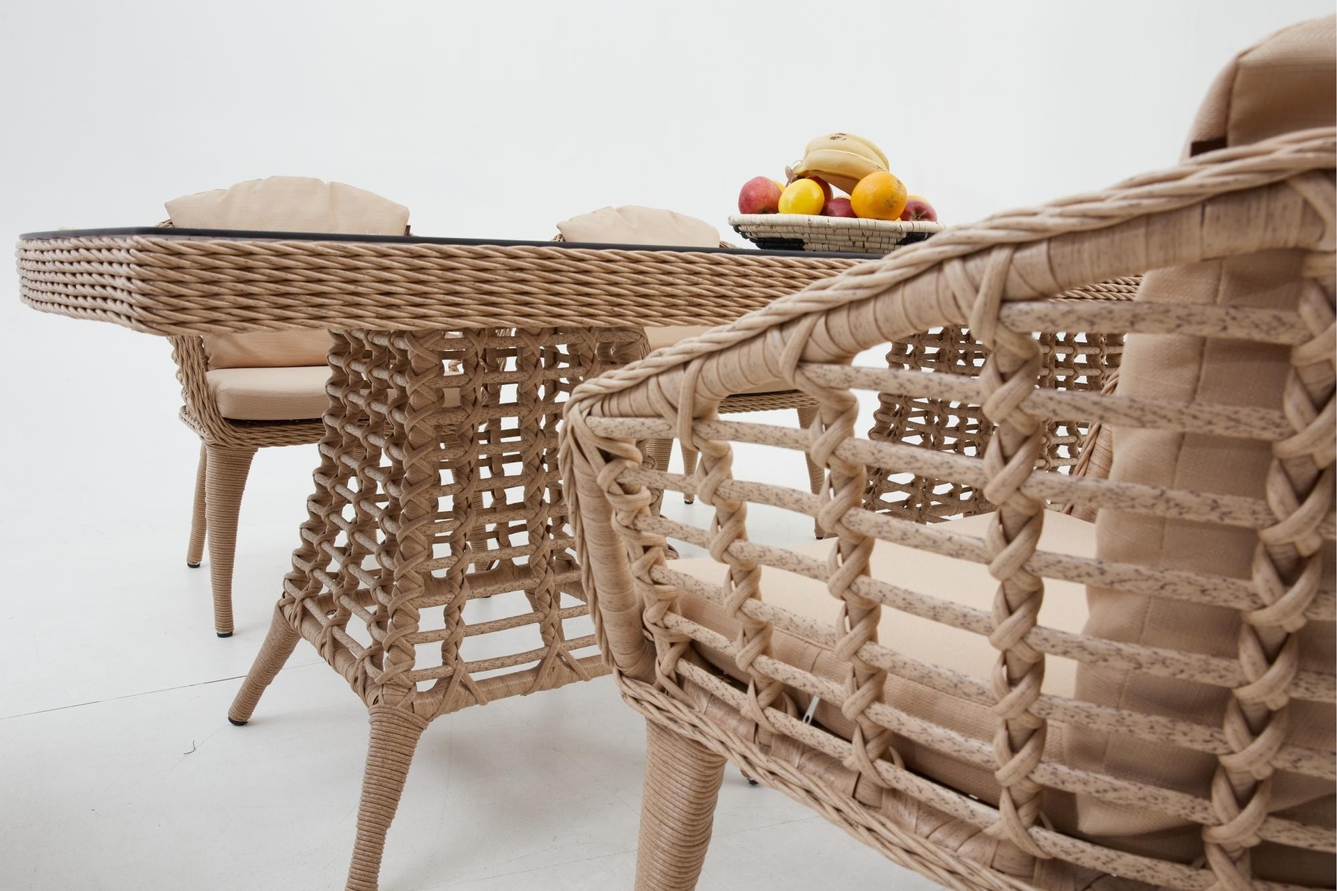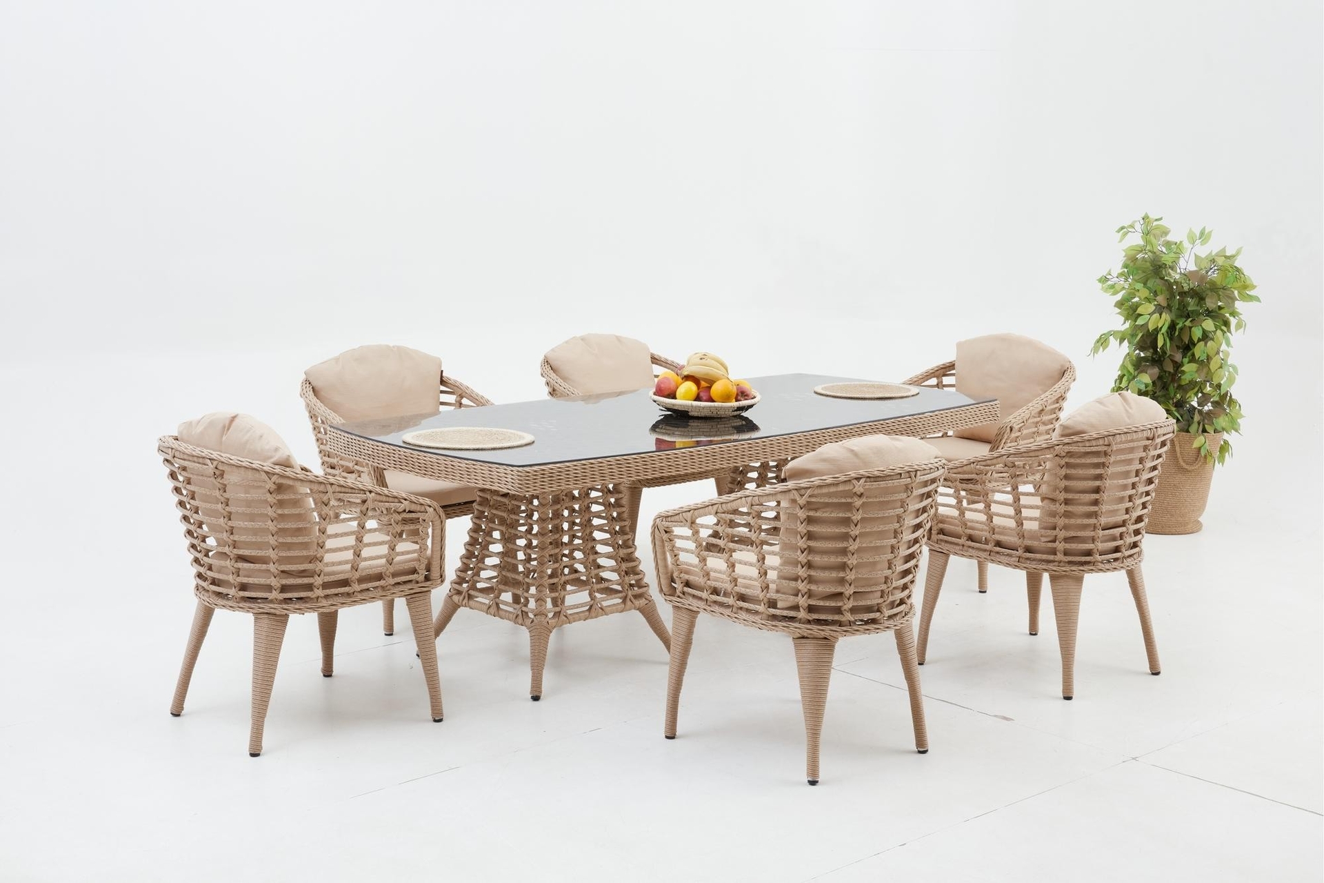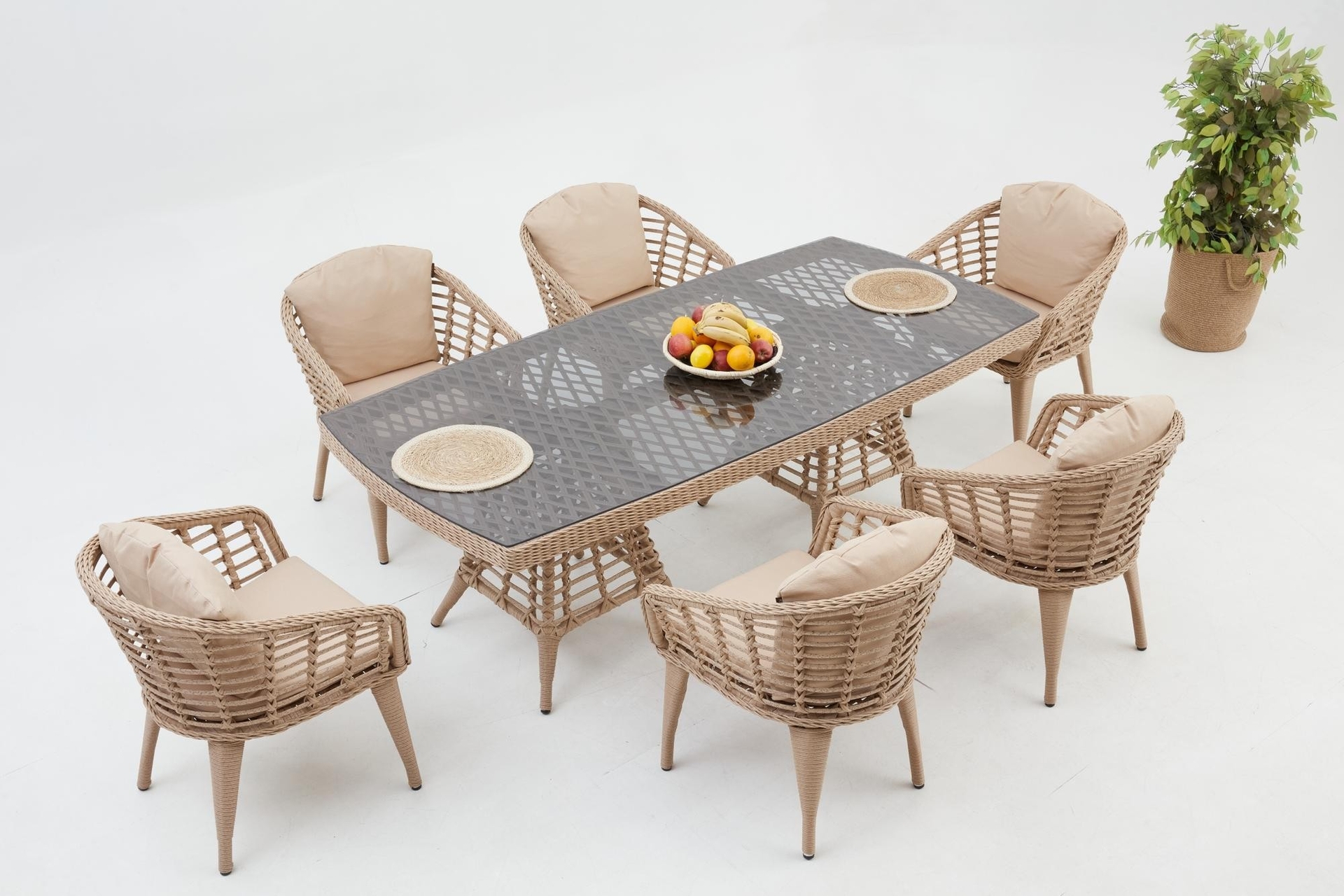 Ek BilgilerBu set size uzun süre hizmet edecek kadar sağlam ve dayanıklıdır.Minderler size rahat bir oturma deneyimi sunuyor. Bu minderlerin kılıfları fermuarlı tasarımı sayesinde çıkarılabilir. Bahçe, havuz başı ve veranda gibi dış mekanlar için uygundur. • UV ve Hava Koşullarına Dayanıklı • Renk Solmasına Karşı Korumalı • Yıkanabilir ve Dayanıklı • Zararlı Madde İçermez ve Çevre Dostudur • 100% Geri Dönüştürülebilir. ÖZELLİKLERİ • Minderler, rahatlık ve yumuşaklık için yüksek yoğunluklu süngerle doldurulmuştur. • Rahat kullanım ve temizlik için temperli camlı masa • Minderlerin kılıfları fermuarlıdır, yıkanmak üzere kolayca çıkarılabilir ÜRÜN DETAYLARI • Dış Çerçeve Malzemesi: Rattan masa ve sandalye gövde malzemesi alüminyum • Çerçeve Dayanıklılığı: Hava Koşullarına Dayanıklı; Suya Dayanıklılık • Yastık Döşeme Malzemesi: Polyester / Polyester Karışımı