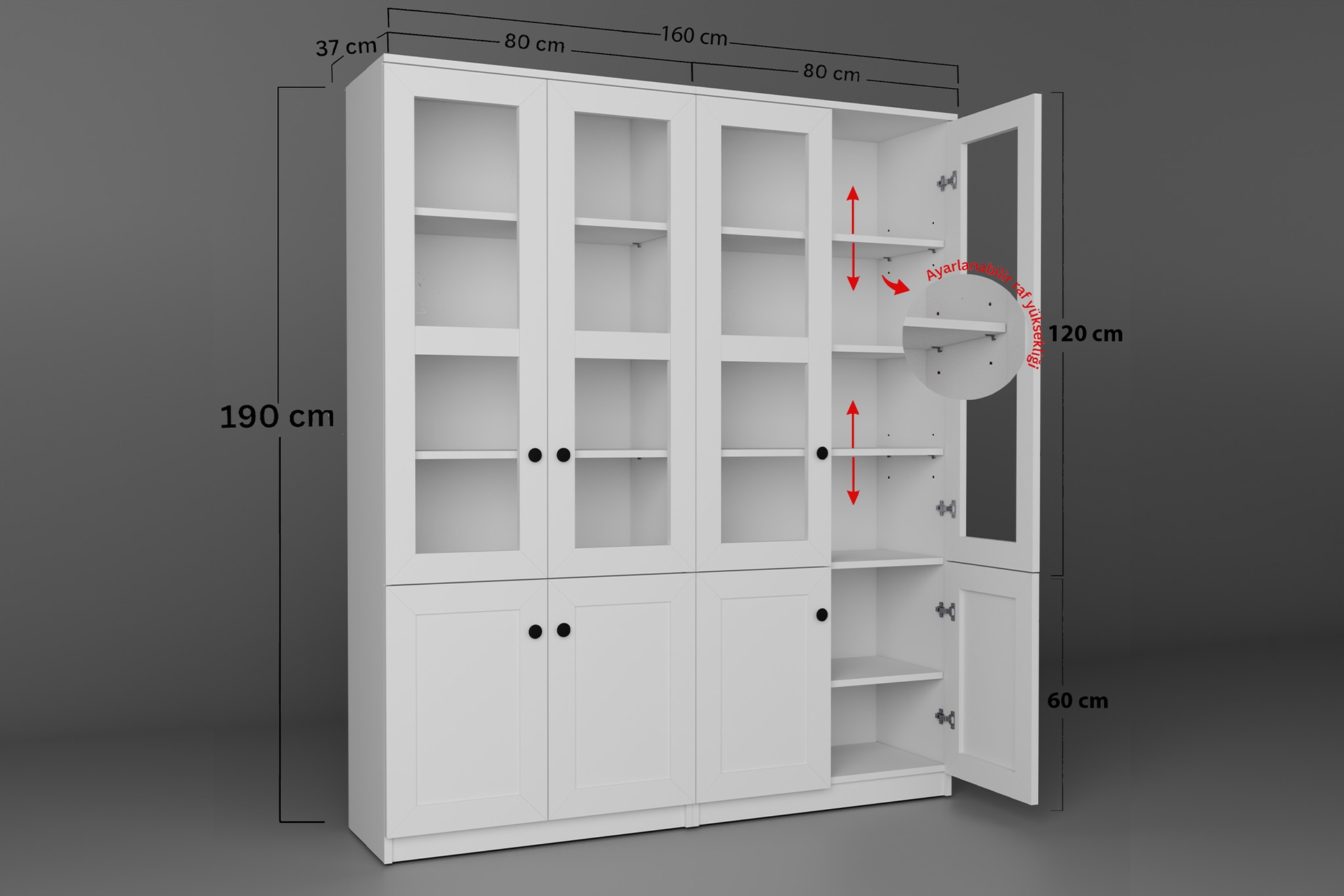 Vitrin&Kitaplık 160 cm 37 cm 190 cm