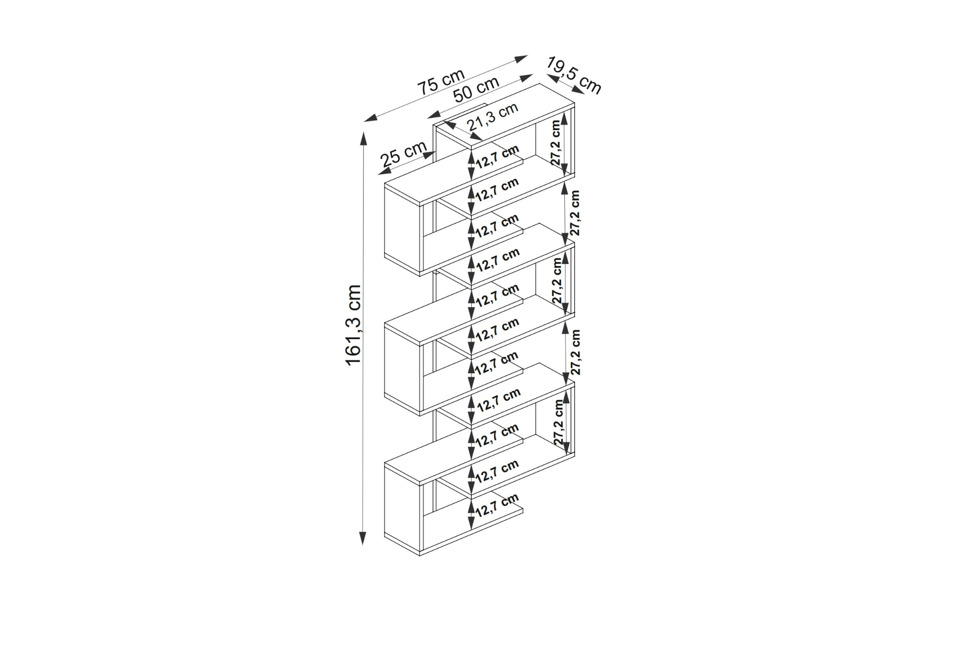 kitaplık 75 cm 21.3 cm 161.3 cm