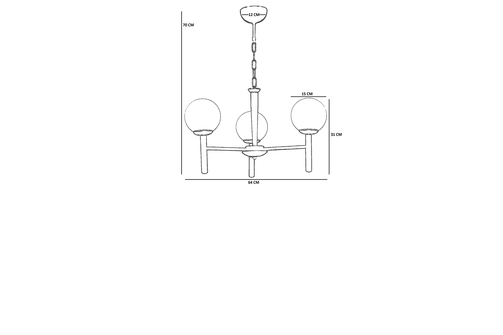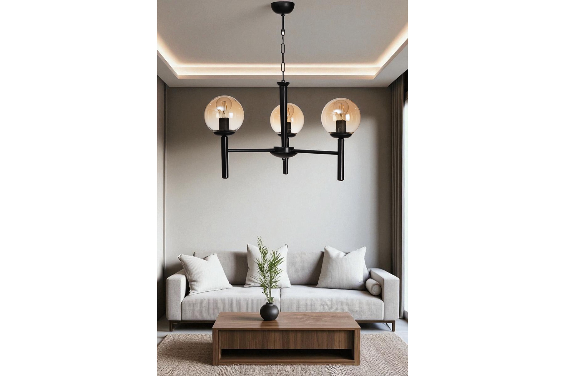 LUKE 3 LÜ SİYAH BAL CAMLI AVİZE 64 cm 1 cm 70 cm