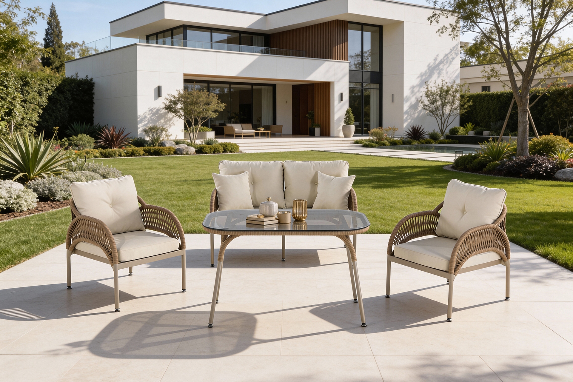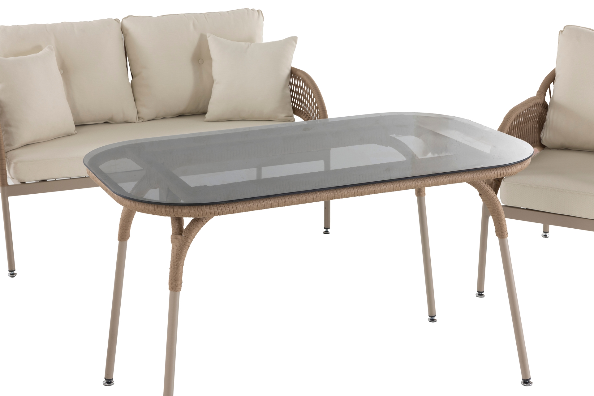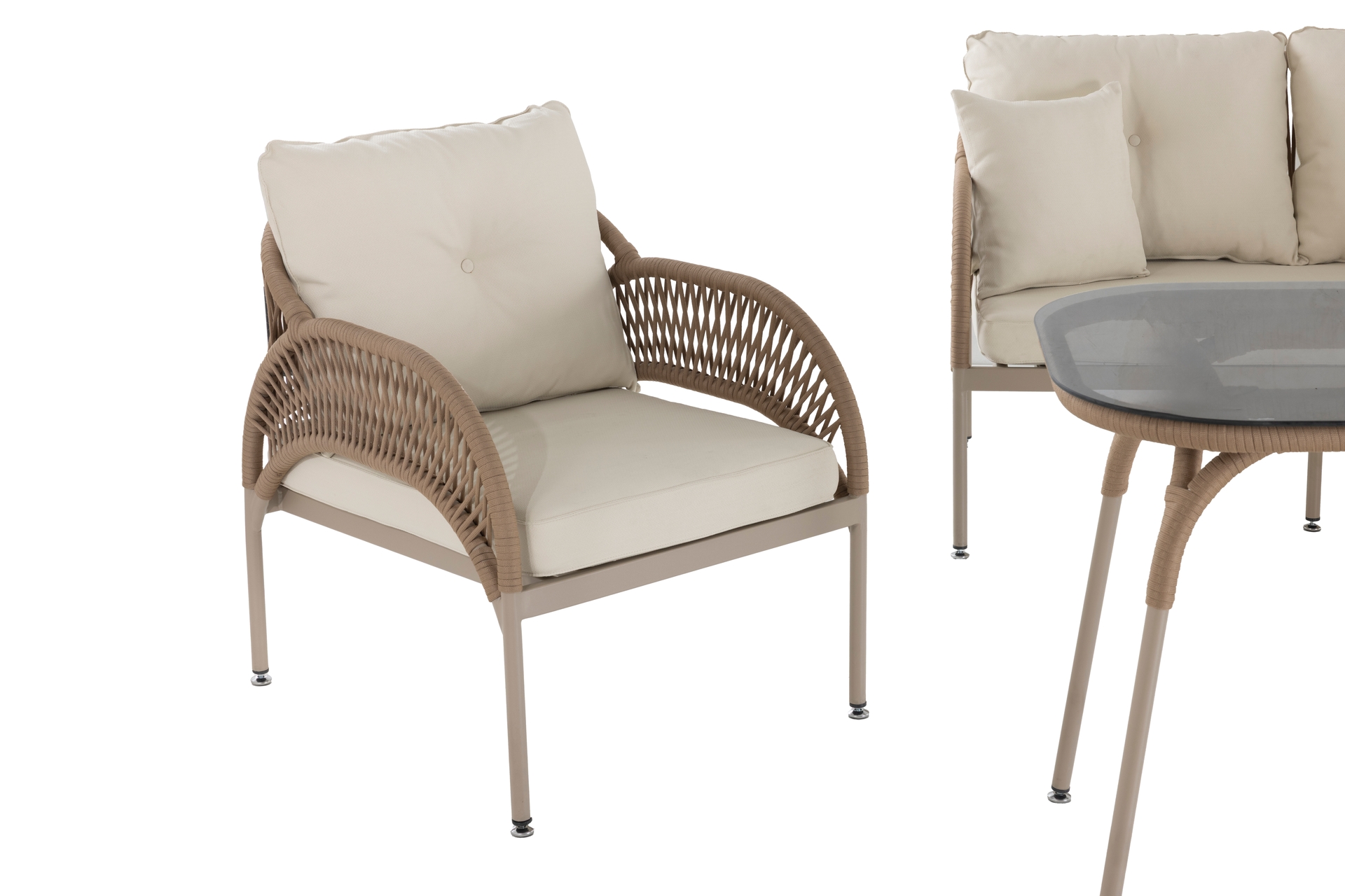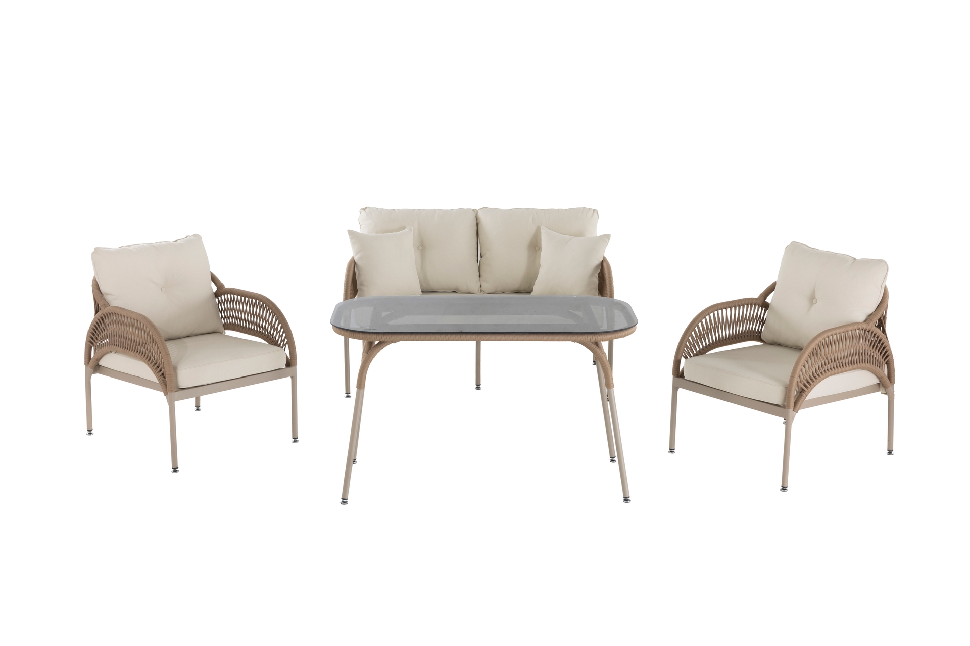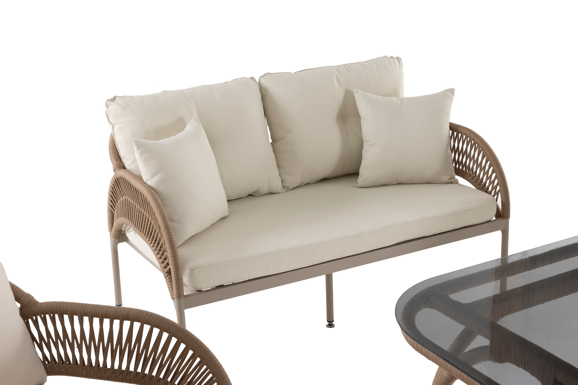 Ek BilgilerMalzemeler: Elyaf : Polipropilen veya Polietilen gibi poliolefinden yapılmış bir sentetik elyaftır. Döşemelik kumaş, ve içi mekânlarında kullanılır. Olefinin avantajları; lekelenmeye, küflenmeye, aşınmaya ve güneş ışığına karşı dayanıklıdır. Kumaş : Bahçe ve Balkon mobilyalarında, dış mekan şartlarına dayanıklı olefin içerikli malzemeden imal edilmiştir. Sünger : Oturum konforu sağlayan Yüksek yoğunlukta, soft özellikli poliüretan malzemeden imal edilmiştir. Outdoor ip: Dış mekan örgü teknolojisinde yeni bir soluk. Su geçirmez ve UV ışınlarına karşı dayanıklıdır. Kolay yıkanır leke tutmaz. Kopmaya ve tüylenmeye karşı dayanıklıdır. Metal Profil : Korozyona karşı dayanıklı ve dış mekânlarda uzun süre kullanım dayanımı sağlayan özel fırınlarda, elektrostatik boya işleminden geçirilmiş, yüksek kalitede metal malzemedir. Temperli Cam : Camın kırılmaya, erimeye ve çatlamaya dayanıklı hale getirilmesi amacıyla ısıl işlem uygulanmasına temperli cam denir.