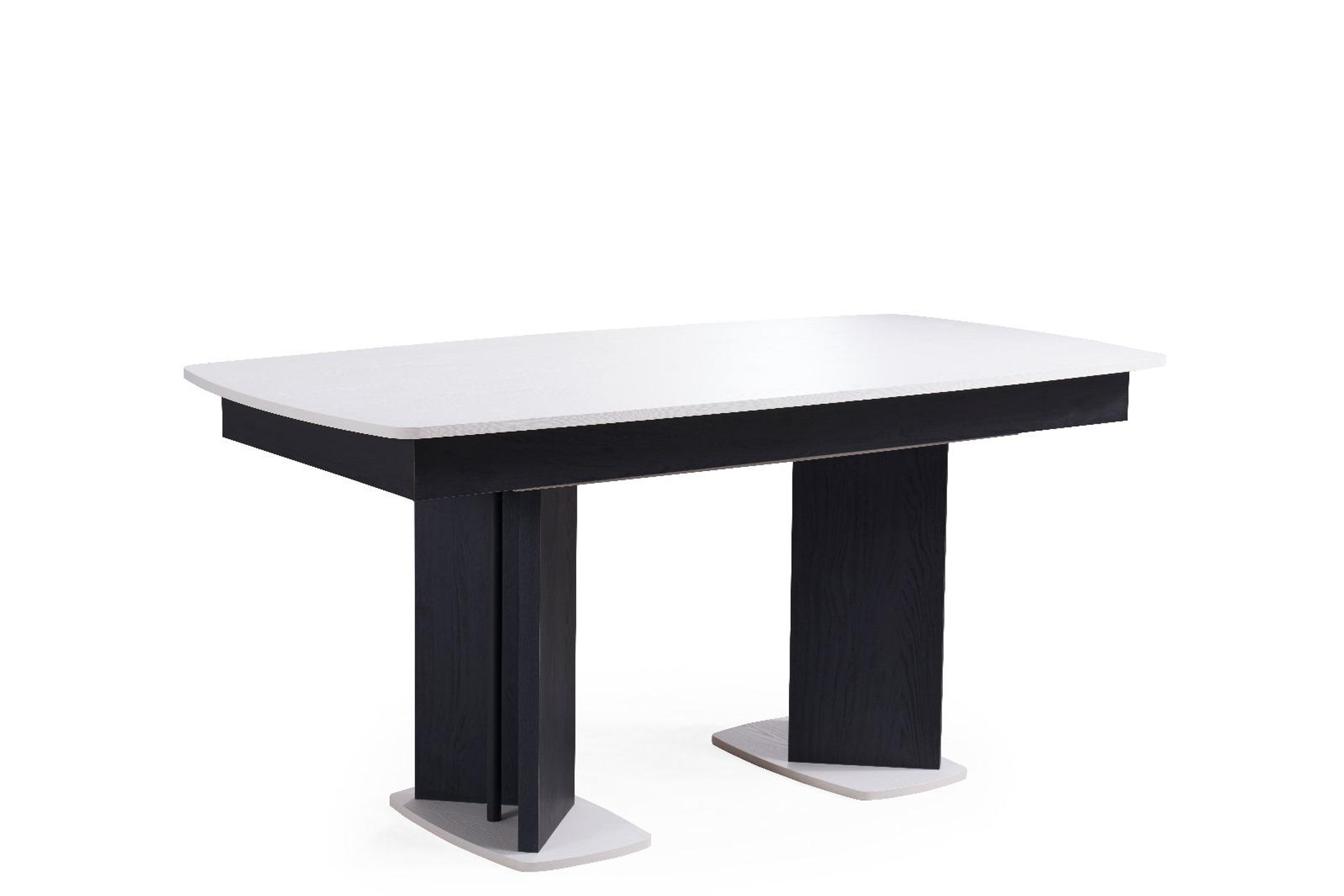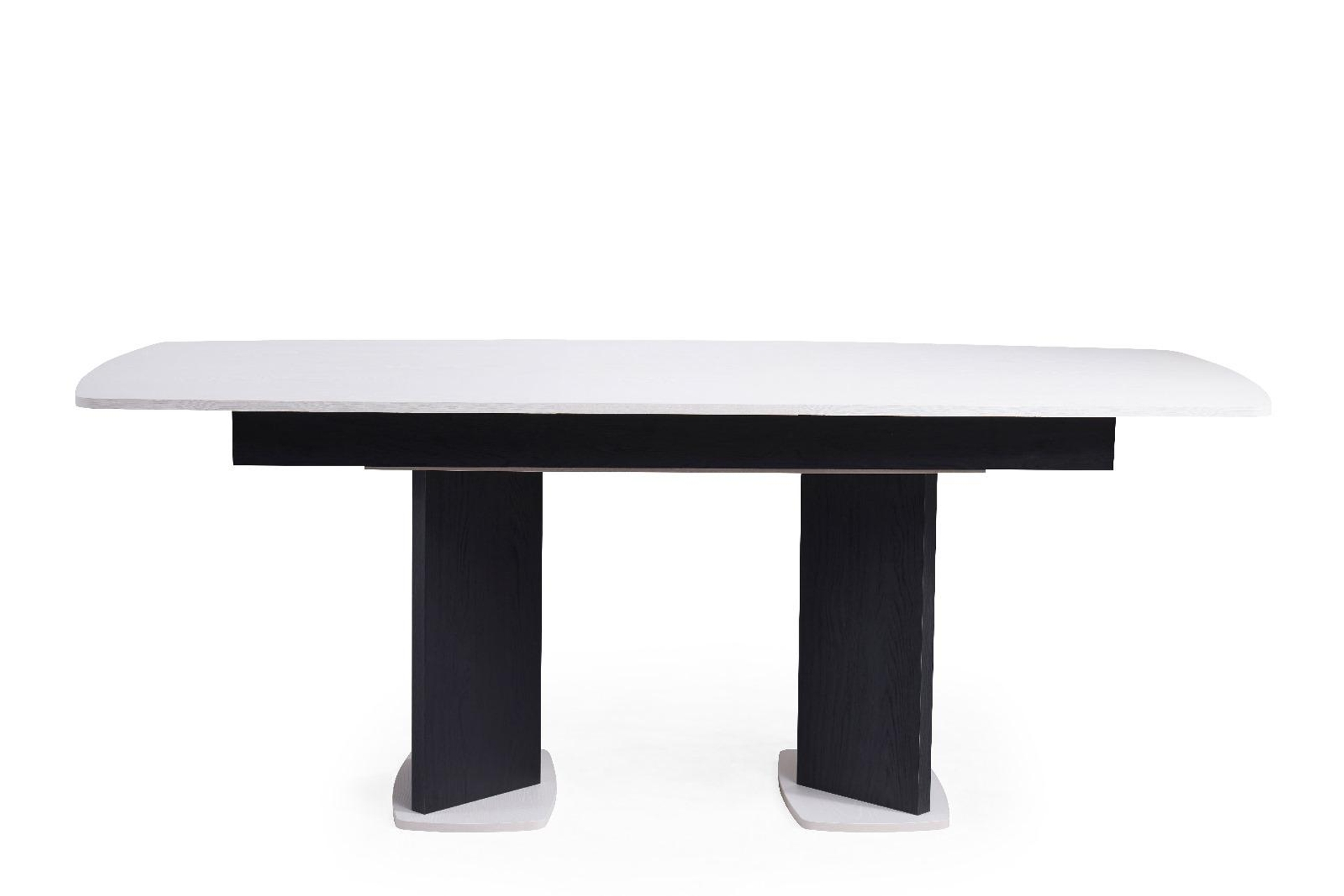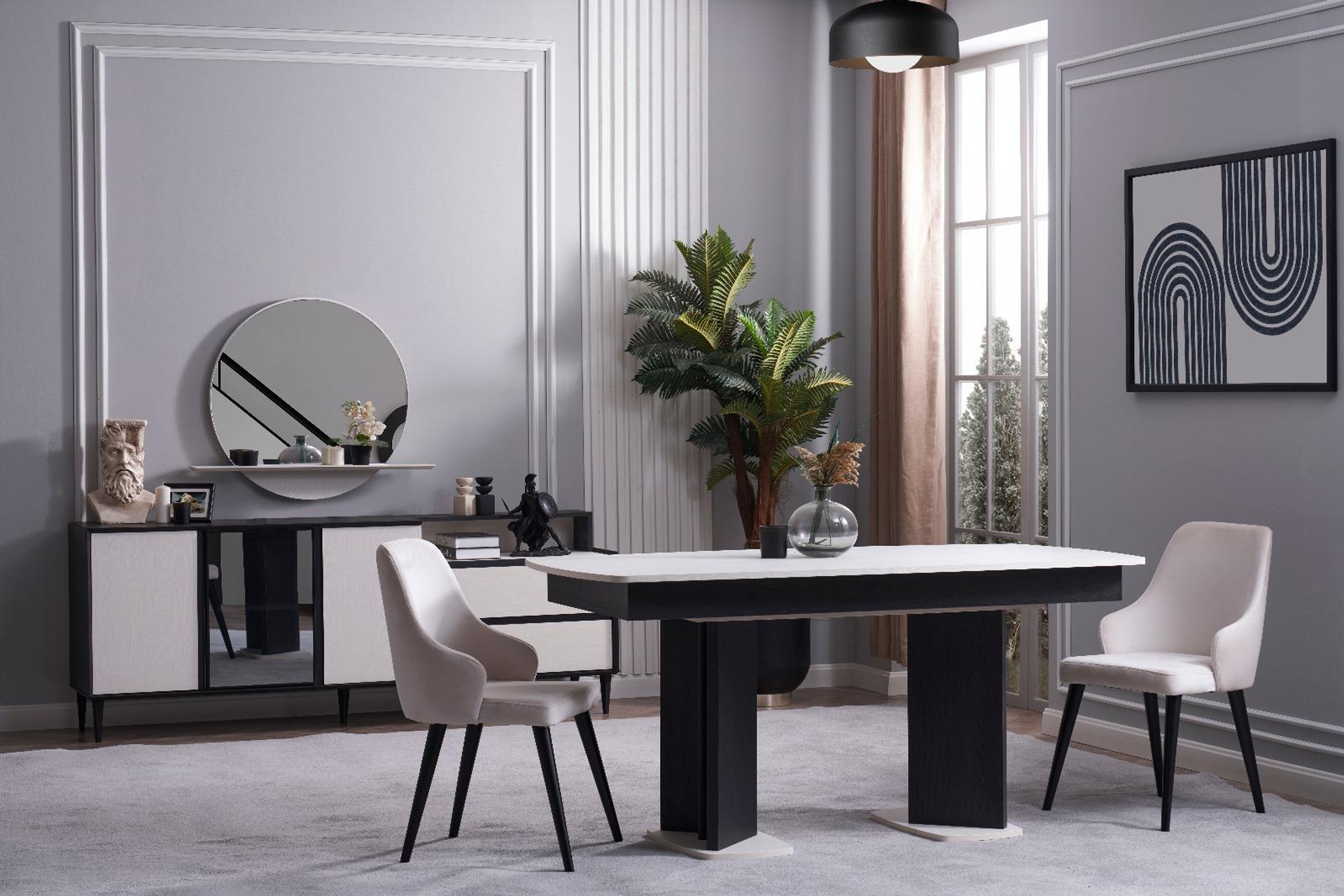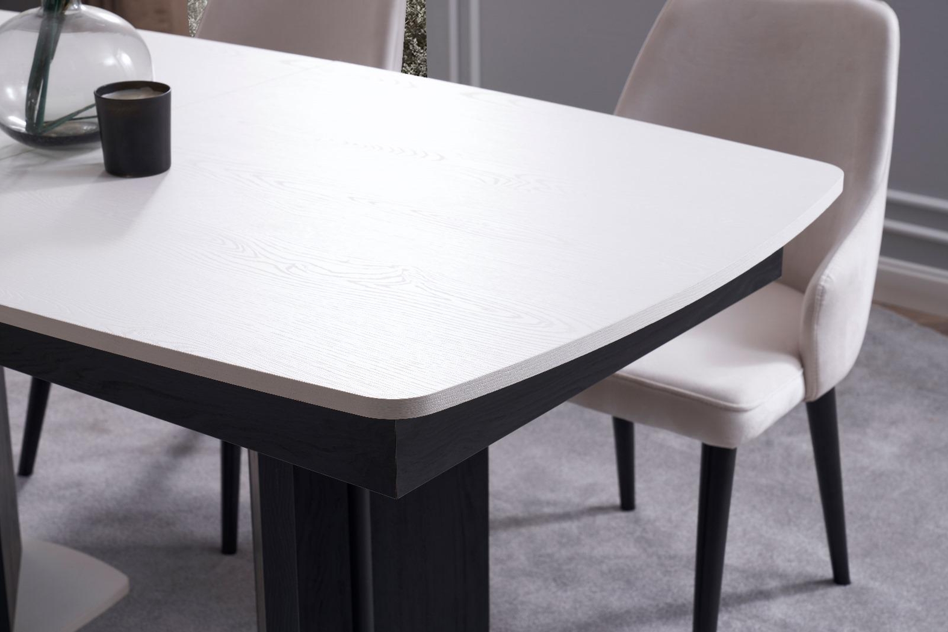 Ek BilgilerTasarım Detayları Kontrast Renk Uyumu: Mat siyah gövde ve ayak tasarımı, dokulu beyaz üst tabla ile mükemmel bir zıtlık oluşturarak modern bir görünüm sunar. Genişleyebilir Mekanizma: Orta kısmından kolayca açılan mekanizması sayesinde saniyeler içinde daha geniş bir servis alanına sahip olabilirsiniz. Özel Ayak Formu: Masanın merkezine yakın konumlandırılan geniş ve geometrik siyah ayaklar, hem maksimum denge sağlar hem de sandalyeler için daha fazla hareket alanı bırakır. Soft Oval Hatlar: Keskin köşeler yerine tercih edilen hafif kavisli tabla yapısı, mekana yumuşak bir akış kazandırırken güvenli bir kullanım sunar. Teknik Özellikler ve İçerik Malzeme: Çizilmelere ve ısıya dayanıklı, kolay temizlenebilir dokulu yüzey kaplaması. Kapasite: Kapalıyken 4-6 kişilik, açıldığında 8 kişiye kadar rahat oturma imkanı. Taban: Zemine zarar vermeyen, stabiliteyi artıran beyaz detaylı sağlam alt tablalar. Kullanım Alanı: Salon ve geniş mutfaklar için ideal, modern ve avangart dekorasyon stilleriyle tam uyumlu.