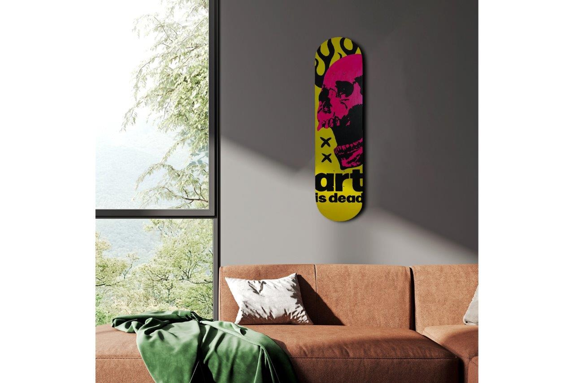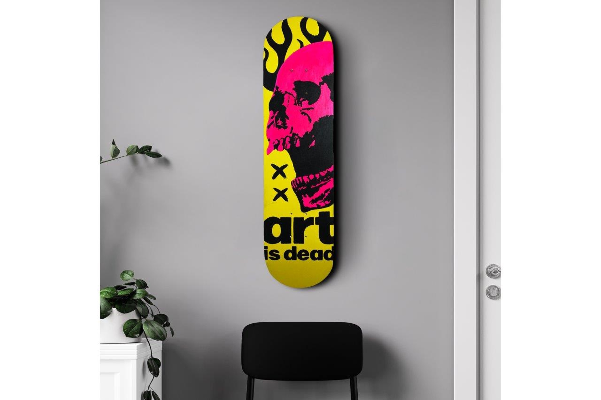 Ek Bilgiler"Sanat Öldü. Gerçekten mi?" // Kaykayları tuval gibi görünce daha dinamik oluruz diye düşünen ekibimiz bu sefer kaykayları boyamaya karar verdi. // Tamamı el ile boyanmış bu kaykay duvar dekorları tam olarak aradığınız değişimi yakalamanıza yardımcı olabilir. // Ev dekoru, ofis dekoru ve hatta bar ver restoranlarınız için havalı bir sohbet konusu olarak sahip olmanız gereken bir ürün. // Özel tasarım askı aparatı ile sadece 1 vida kullanarak duvara asabilirsiniz. // Unutmayın, bunlar sanat eseri, binmek için değiller. Binmeye çalışan olur diye tekerlekleri göndermiyoruz. Binmenizi de tavsiye etmeyiz. Ölçüler: Uzunluk: 80 cm X En: 19.5 cm X Derinlik: 1 cm"