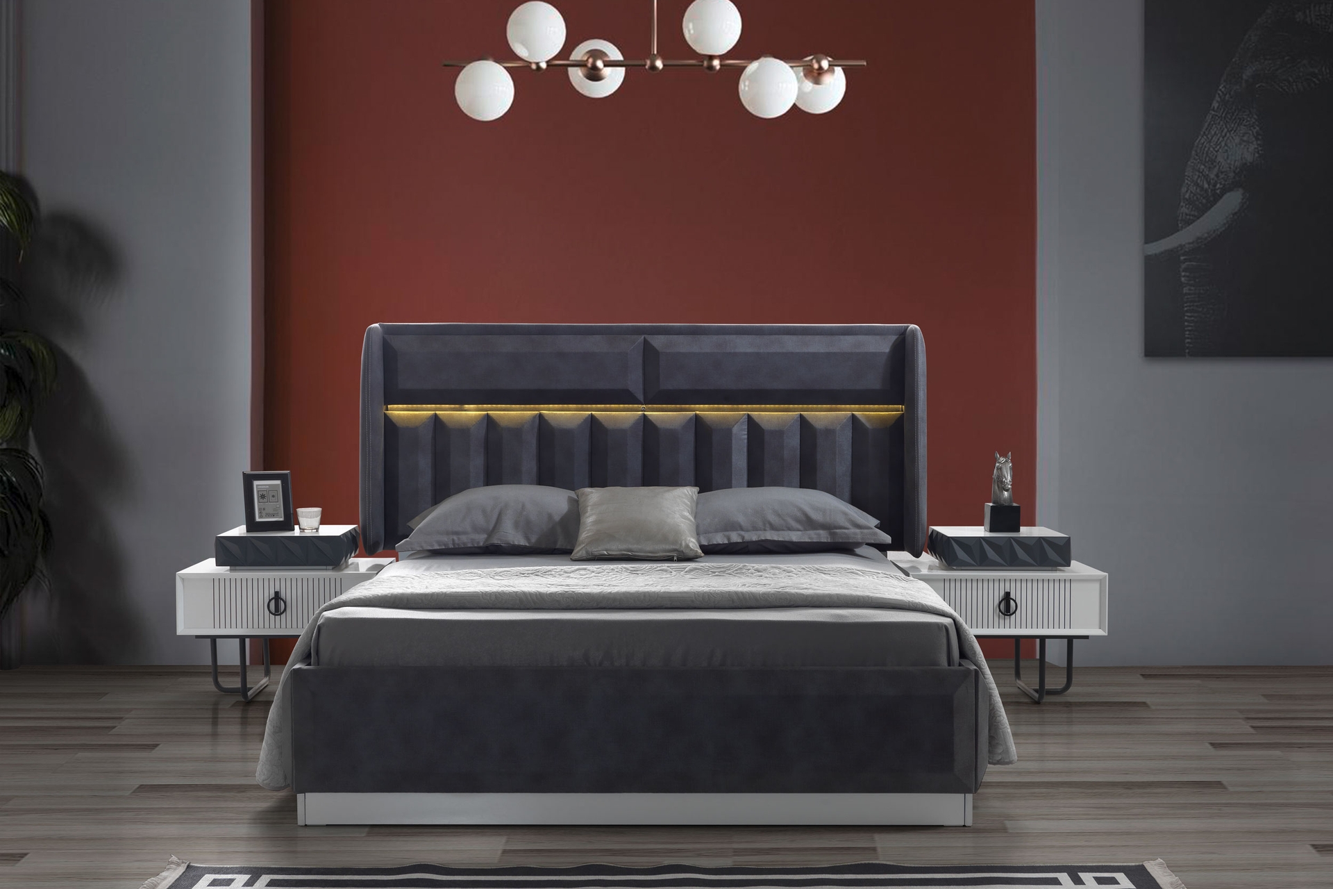 Takım İçeriği1 Adet Gardrop + 1Adet şifonyer + 1 Adet karyola + 2 Adet komidin' denOluşmaktadır.