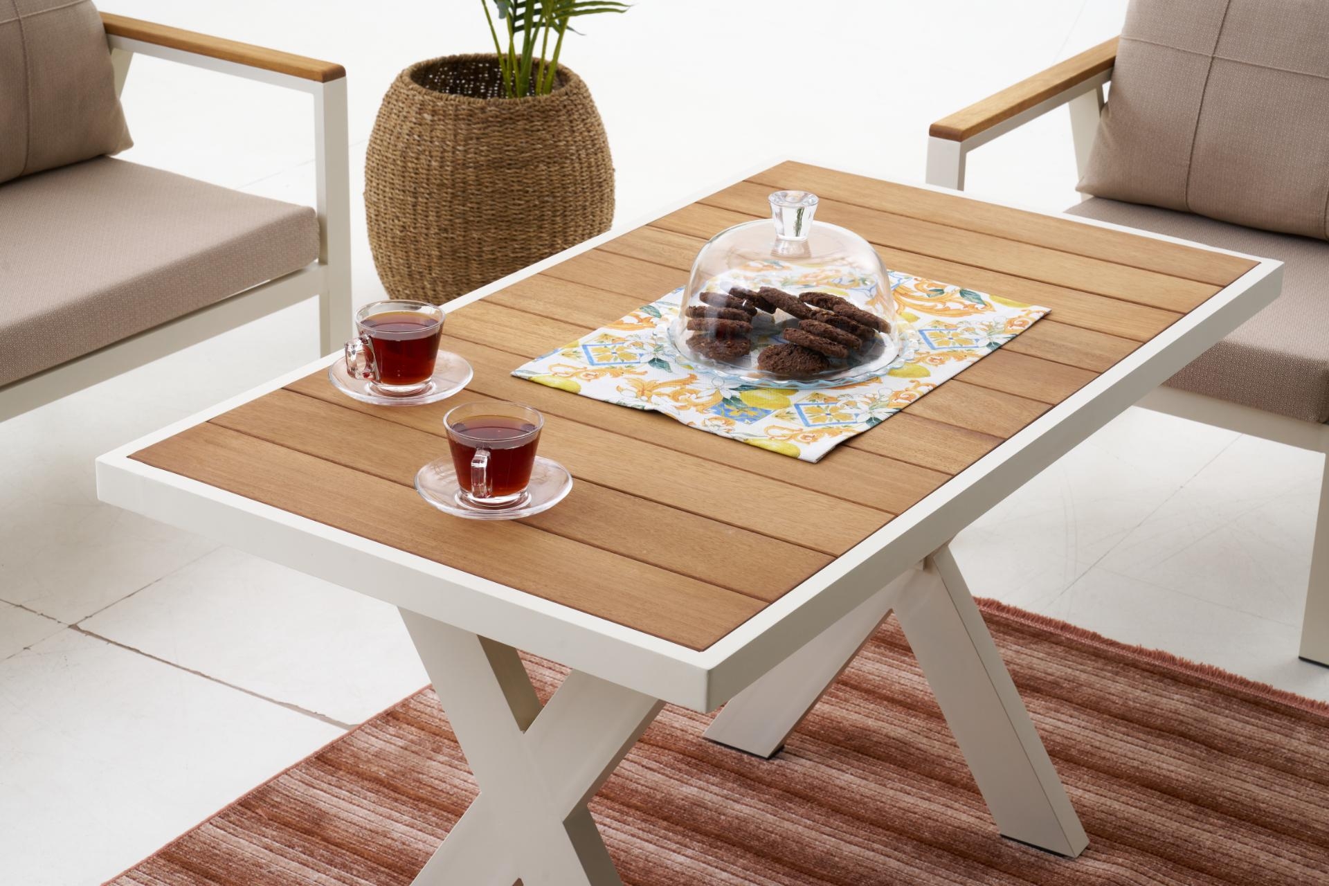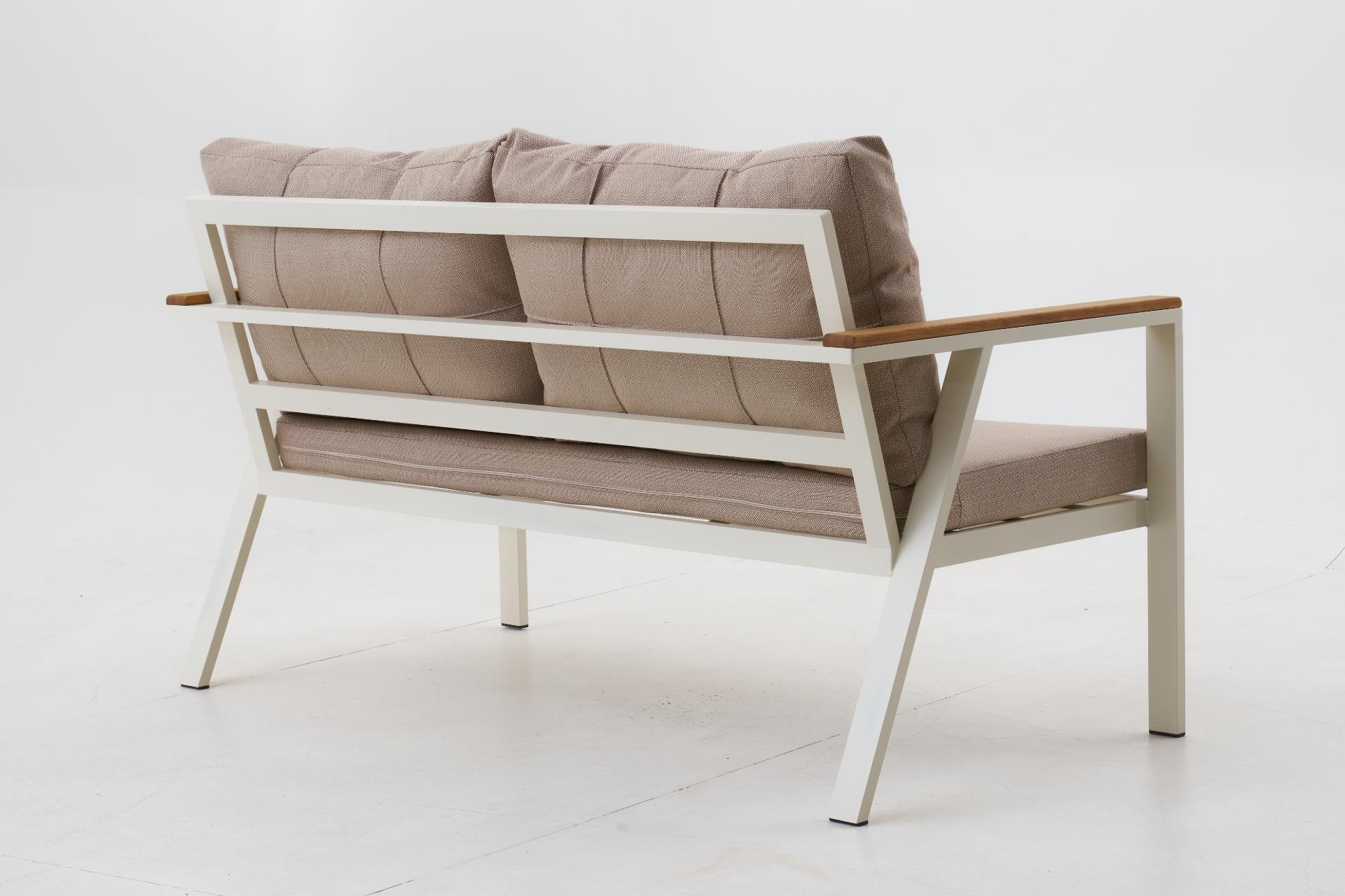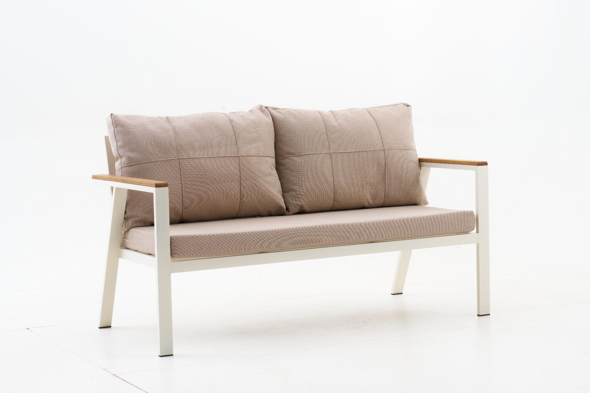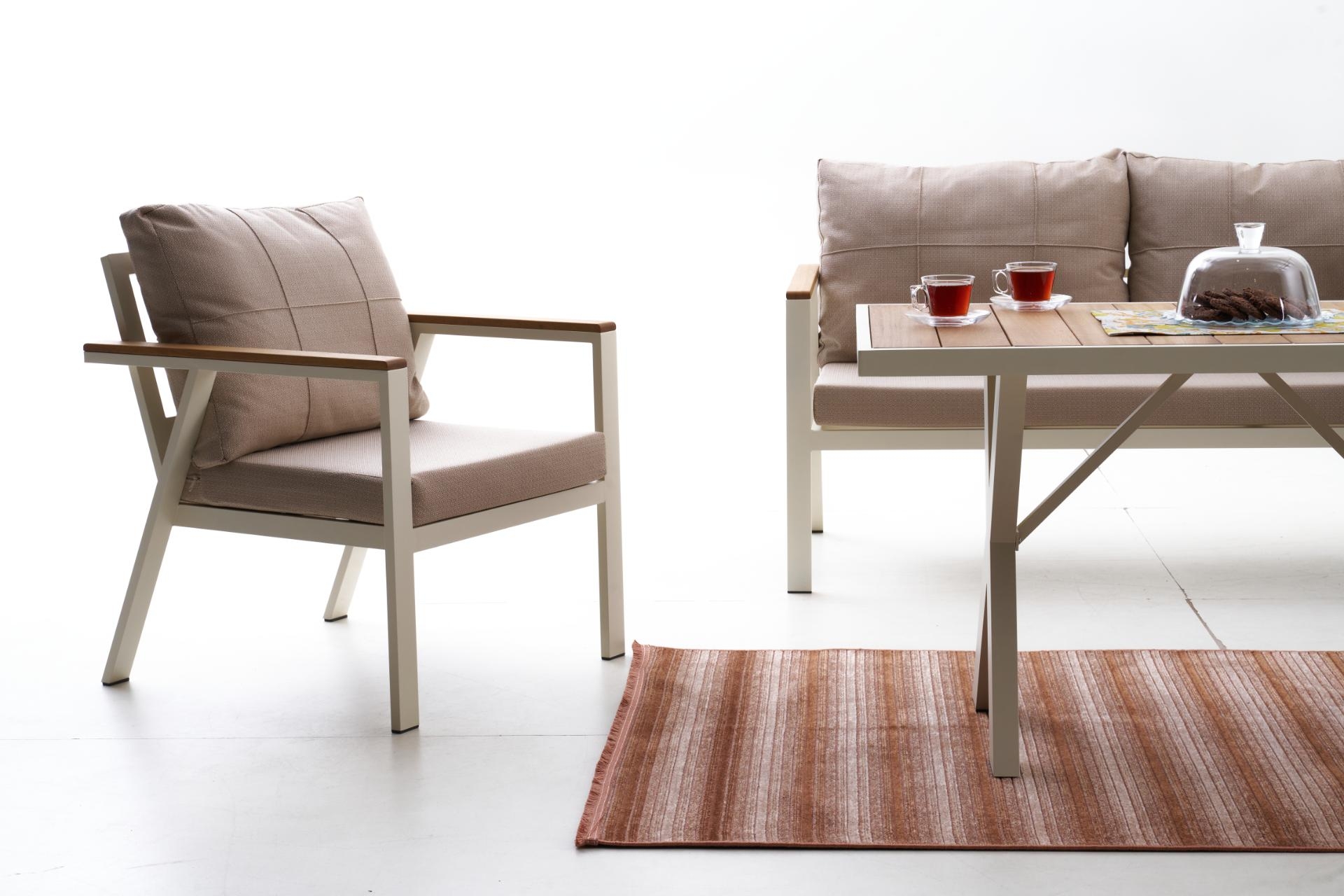 Ek BilgilerNeva Alüminyum Bahçe Oturma Grubu (2+1+1+S) Modern çizgilerle tasarlanan Neva Alüminyum Bahçe Oturma Grubu, dayanıklılığı ve konforu bir araya getirerek açık alan keyfini üst seviyeye taşıyor. Geniş oturum alanı, şık detayları ve kullanışlı yapısıyla bahçenize ya da terasınıza zarif bir dokunuş katıyor. Ürün Özellikleri Dayanıklı İskelet Yapısı: Paslanmaz alüminyumdan üretilmiş iskeleti, dış mekân koşullarına uygun elektrostatik boya ile kaplanmıştır. Uzun ömürlü ve hava koşullarına karşı dirençlidir. Konforlu Sünger Desteği:Oturum minderlerinde kullanılan 30 DNS Soft sünger, formunu uzun süre koruyarak rahat bir oturma deneyimi sunar. Kaliteli Kumaş Detayları:UV katkılı,ışığa karşı dayanıklıvesu itici özellikteki kumaşlar sayesinde güneş ve yağmur altında güvenle kullanılabilir. Leke tutmayan yüzeyi kolay silinebilir yapıdadır. Pratik Kullanım:Fermuarlı minder kılıfları çıkarılıp yıkanabilir; sırt minderleri tamamenelyaf dolgulu olup yumuşak bir destek sağlar. Zarif ve İşlevsel Tasarım: Modern çizgileriyle her ortama uyum sağlar; hem estetik hem ergonomik bir kullanım sunar.