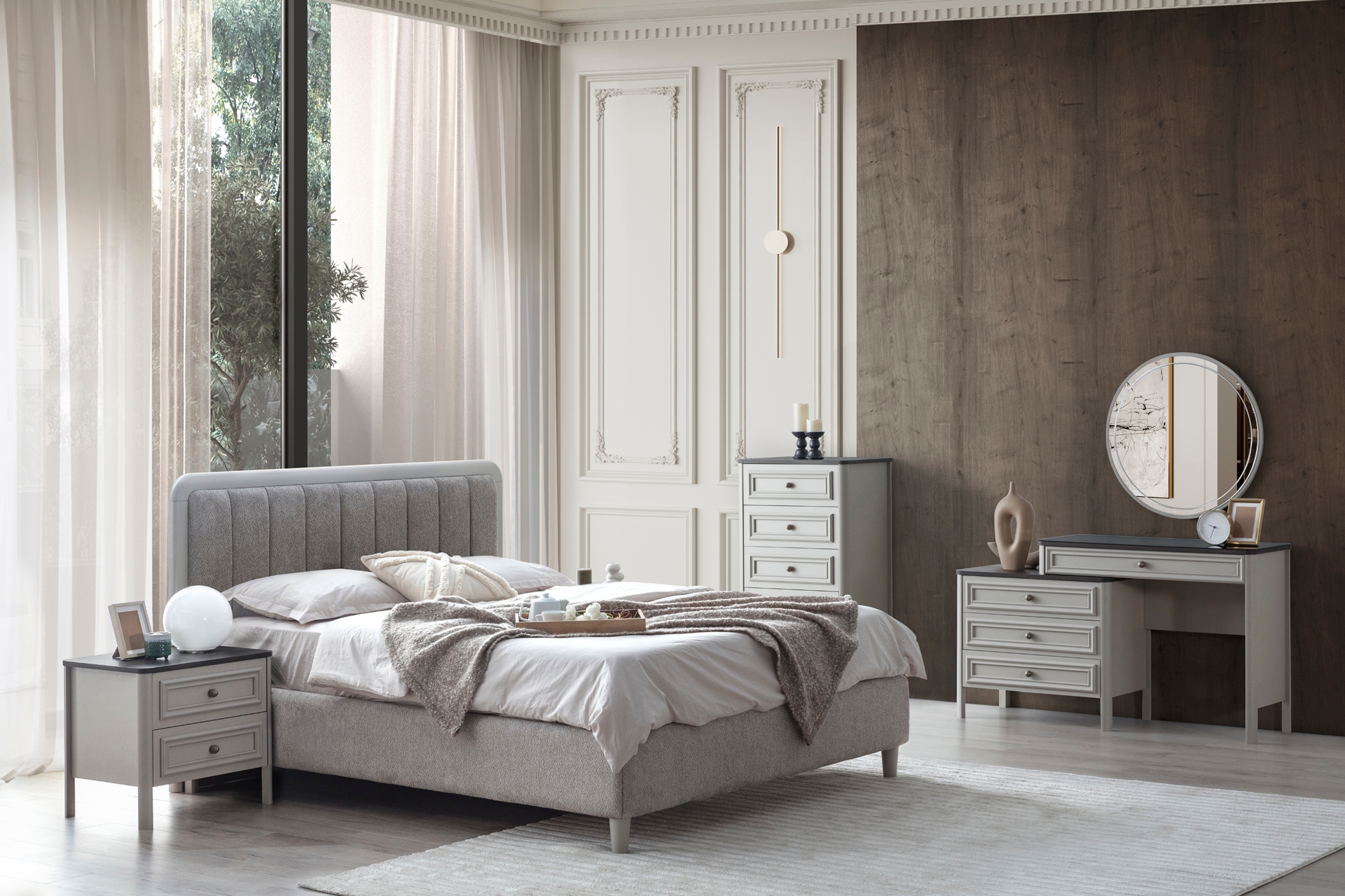 Takım İçeriğiGardırop+ Bazalı Karyola +2 Komodin + Makyaj Masalı Şifonyer ve Aynası