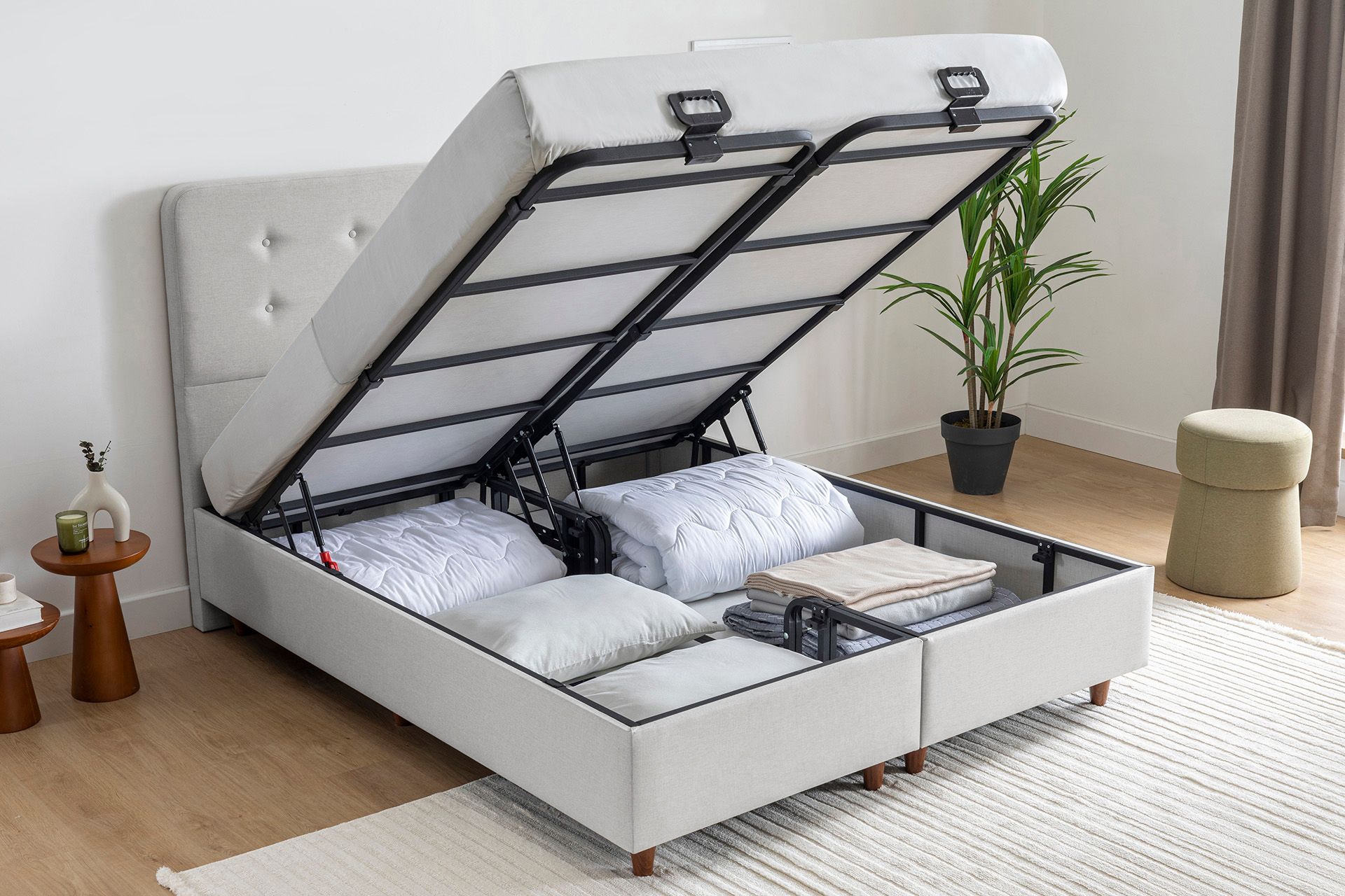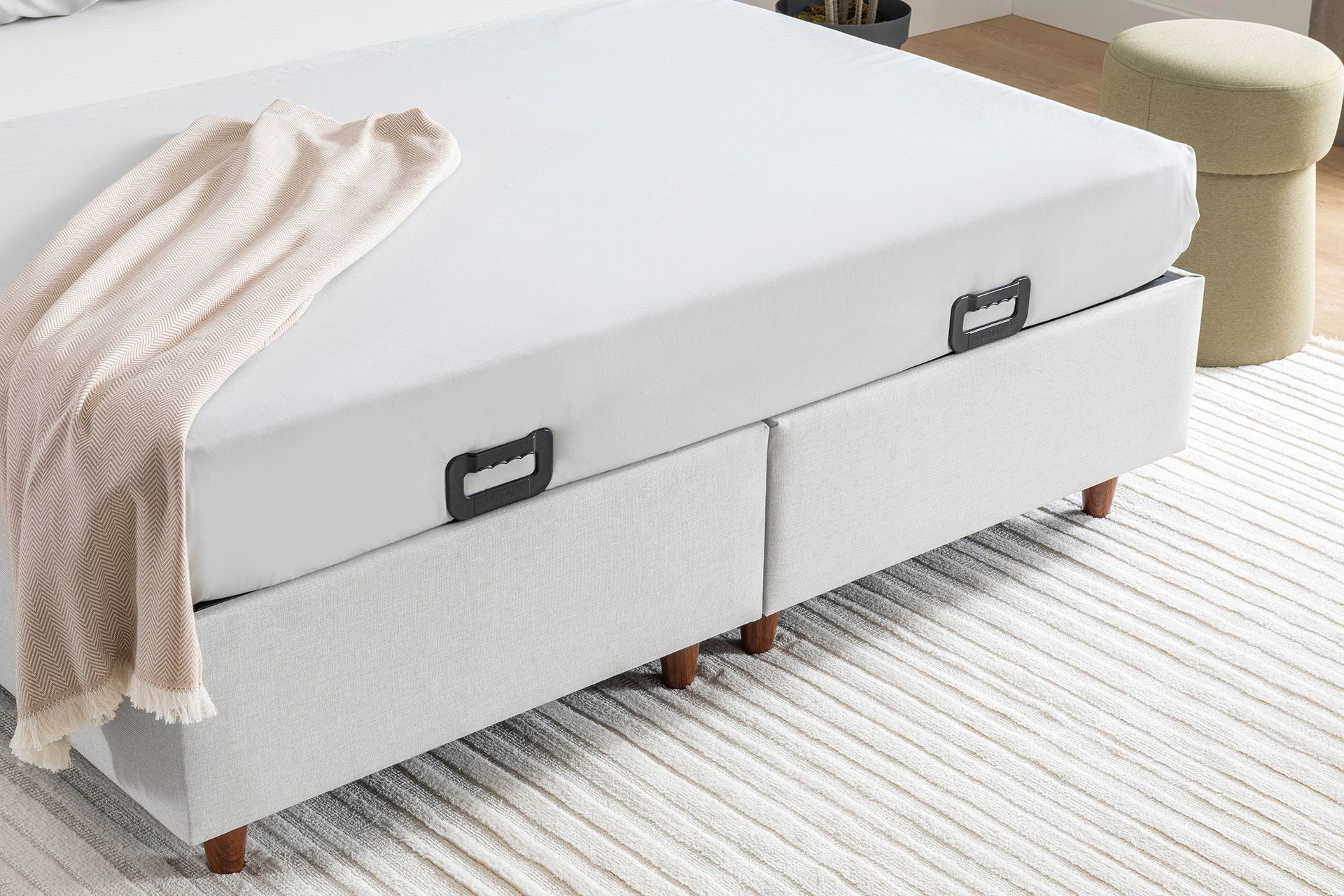 Ek BilgilerAyak Malzemesi: Yüksek dayanımlı ahşap görünümlü plastik malzemedir. Görseldeki kumaş kodu: VK9-2011'dir. Bağlantı elemanları ile ayakları demonte gönderilmektedir.- Bazanın ayak dahil yüksekliği 38 cm, baza ayak yüksekliği 12 cm, iç derinlik ise 20 cm dir.Her bir parçada amortisör/emniyet kilidi ve dengeleyici bulunmaktadır.Ahşap Bakımı: Mobilyalarınızı nemli bezle silerek temizleyebilirsiniz.