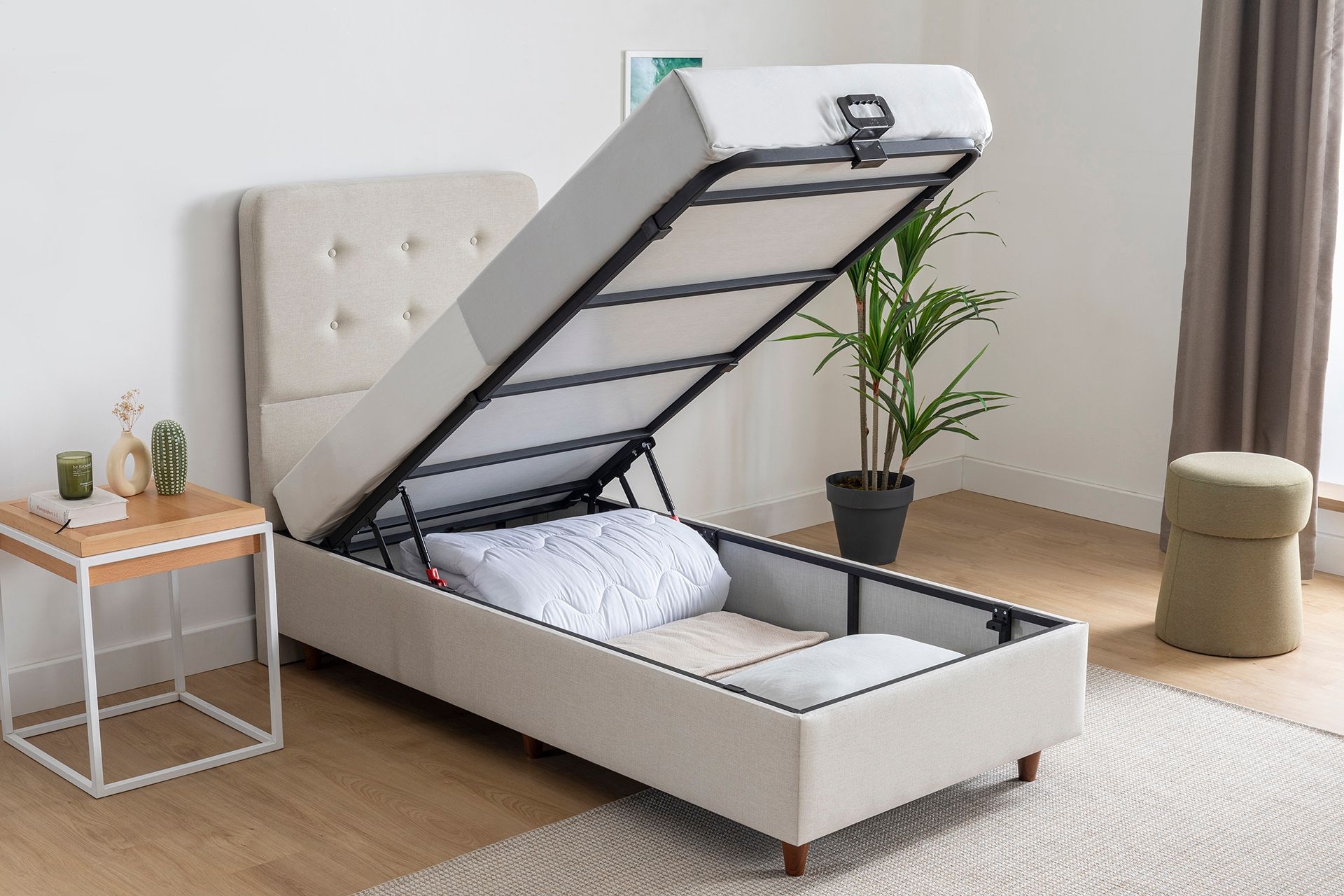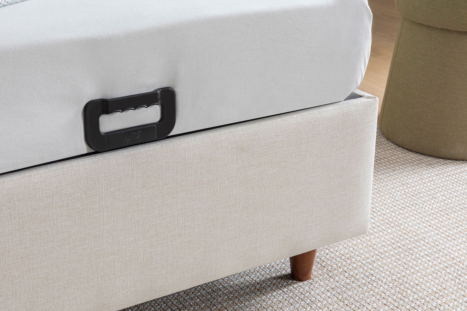 Ek BilgilerAyak Malzemesi: Yüksek dayanımlı ahşap görünümlü plastik malzemedir. Görseldeki kumaş kodu: VK9-2011'dir. Bağlantı elemanları ile ayakları demonte gönderilmektedir.- Bazanın ayak dahil yüksekliği 38 cm, baza ayak yüksekliği 12 cm, iç derinlik ise 20 cm dir.Her bir parçada amortisör/emniyet kilidi ve dengeleyici bulunmaktadır.Ahşap Bakımı: Mobilyalarınızı nemli bezle silerek temizleyebilirsiniz.