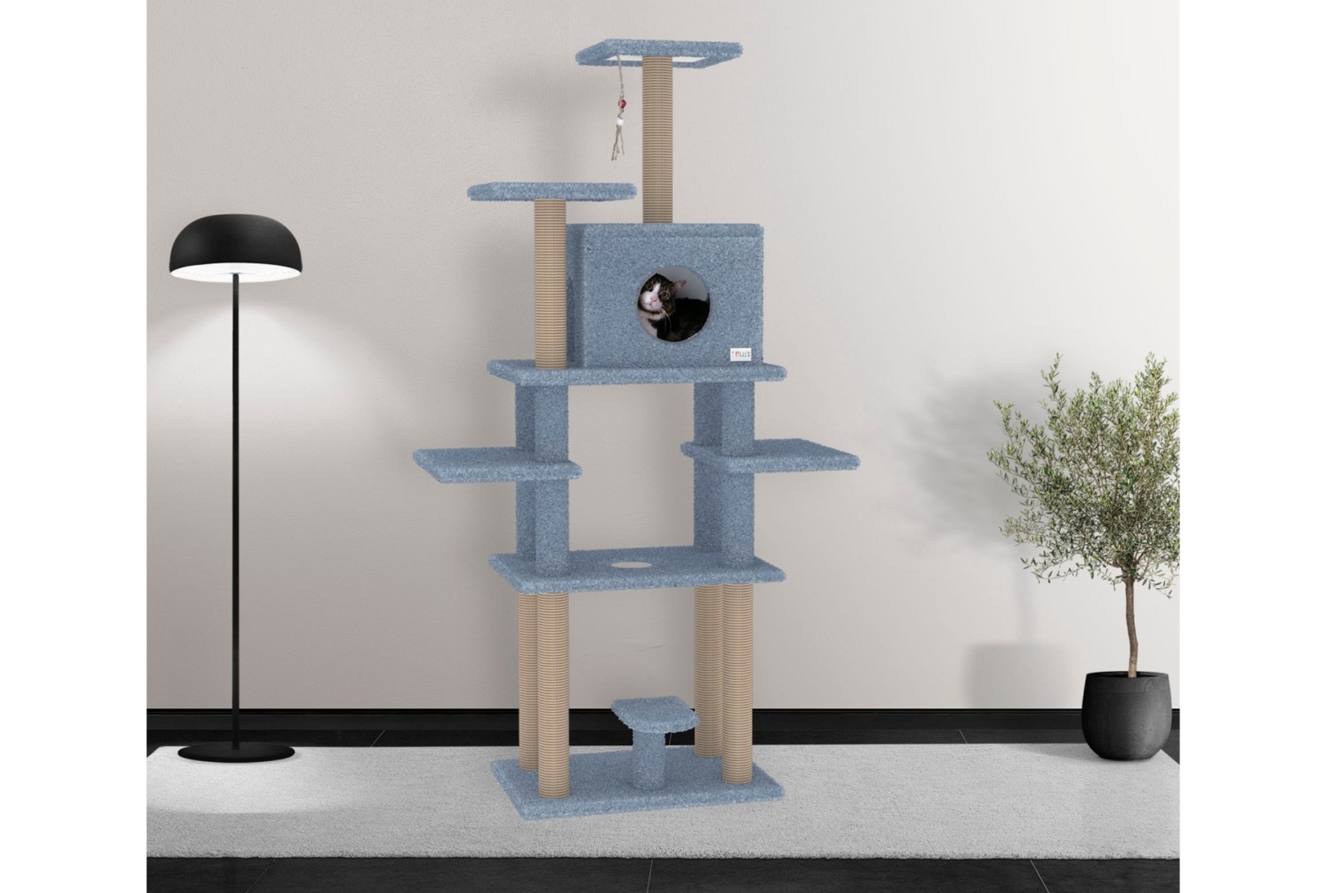 Ek BilgilerÜrünün yüksekliği yaklaşık 180 cm'dir. Tırmalama sütunlarında 1. kalite jüt halat kullanılmıştır. Tablalar 18 mm 1. Sınıf melamin kaplı yonga levhadır. Tüm zeminler 1. sınıf welsoft kumaşla kaplıdır. Yuva ölçüsü 40x32x34 cm'dir. Ürünün rengi gridir. Ürün görseliyle, ürün arasında, ekrandan kaynaklanan renk farklılıkları olabilir. Ürün demonte olarak gönderilmektedir. Not: Ürün dış mekan kullanımına uygun değildir, sadece iç mekanlarda kullanılabilir.