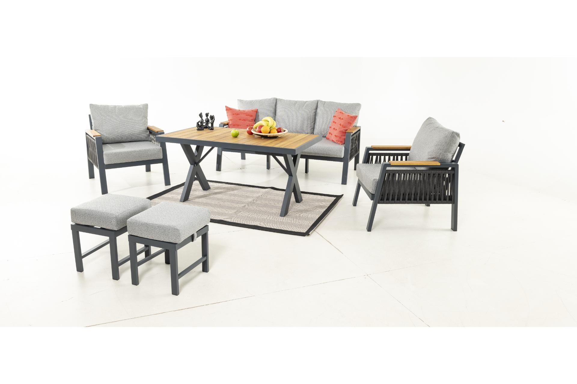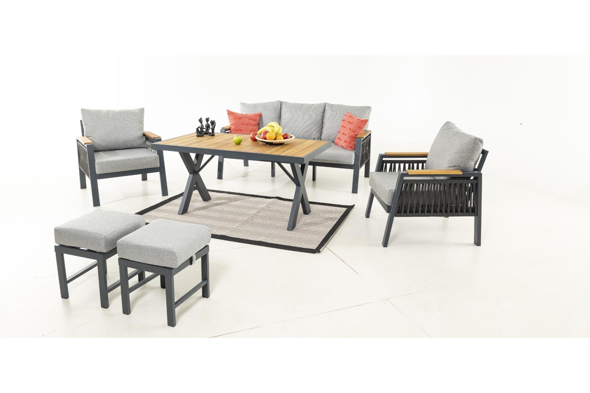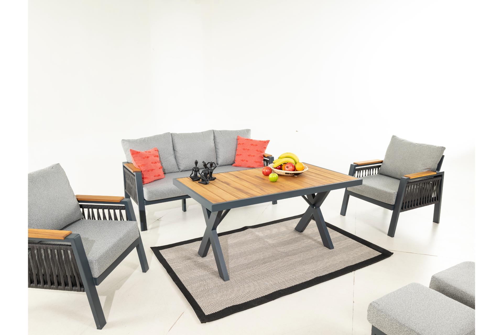 Bahçenizde veya geniş balkonunuzda sevdiklerinizle geçireceğiniz vakitleri bir üst seviyeye taşımaya hazır olun. Ocean serisi, antrasit tonlarındaki paslanmaz alüminyum iskeleti ve doğal İroko ahşabının sıcaklığını bir araya getirerek modern bir görünüm sunar