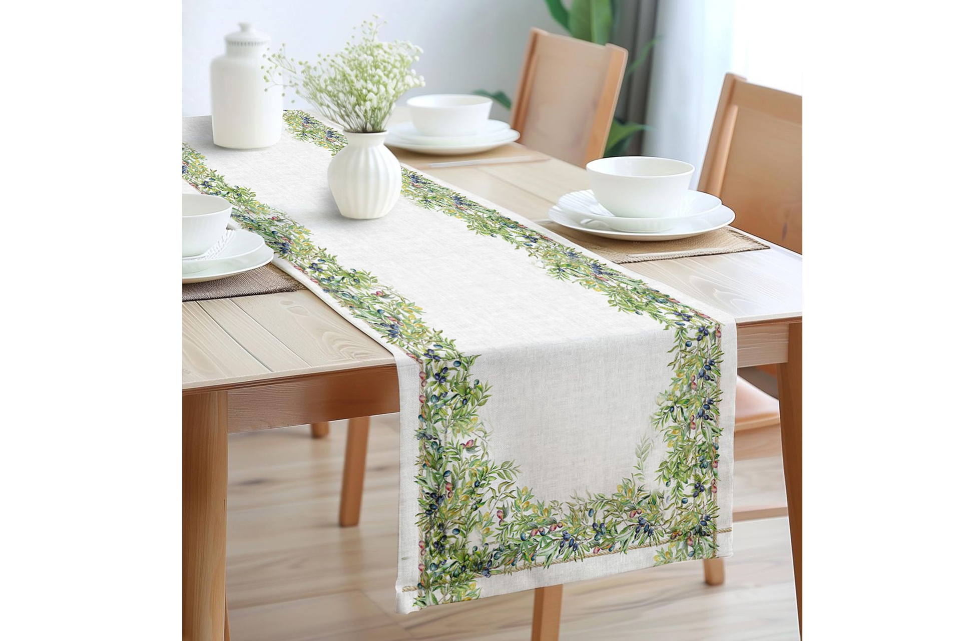Olive Pamuklu Masa Runner 0061– 50x150 cm 50 cm 150 cm 1 cm