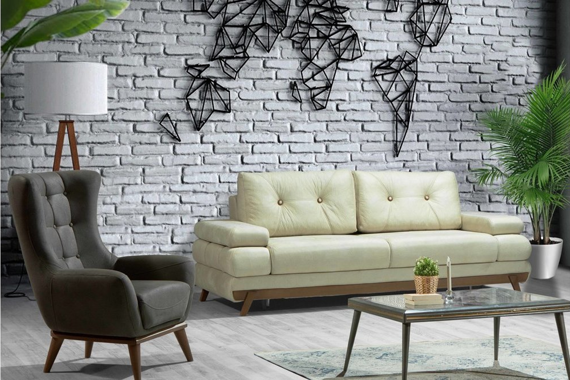 Üçlü Koltuk Krem