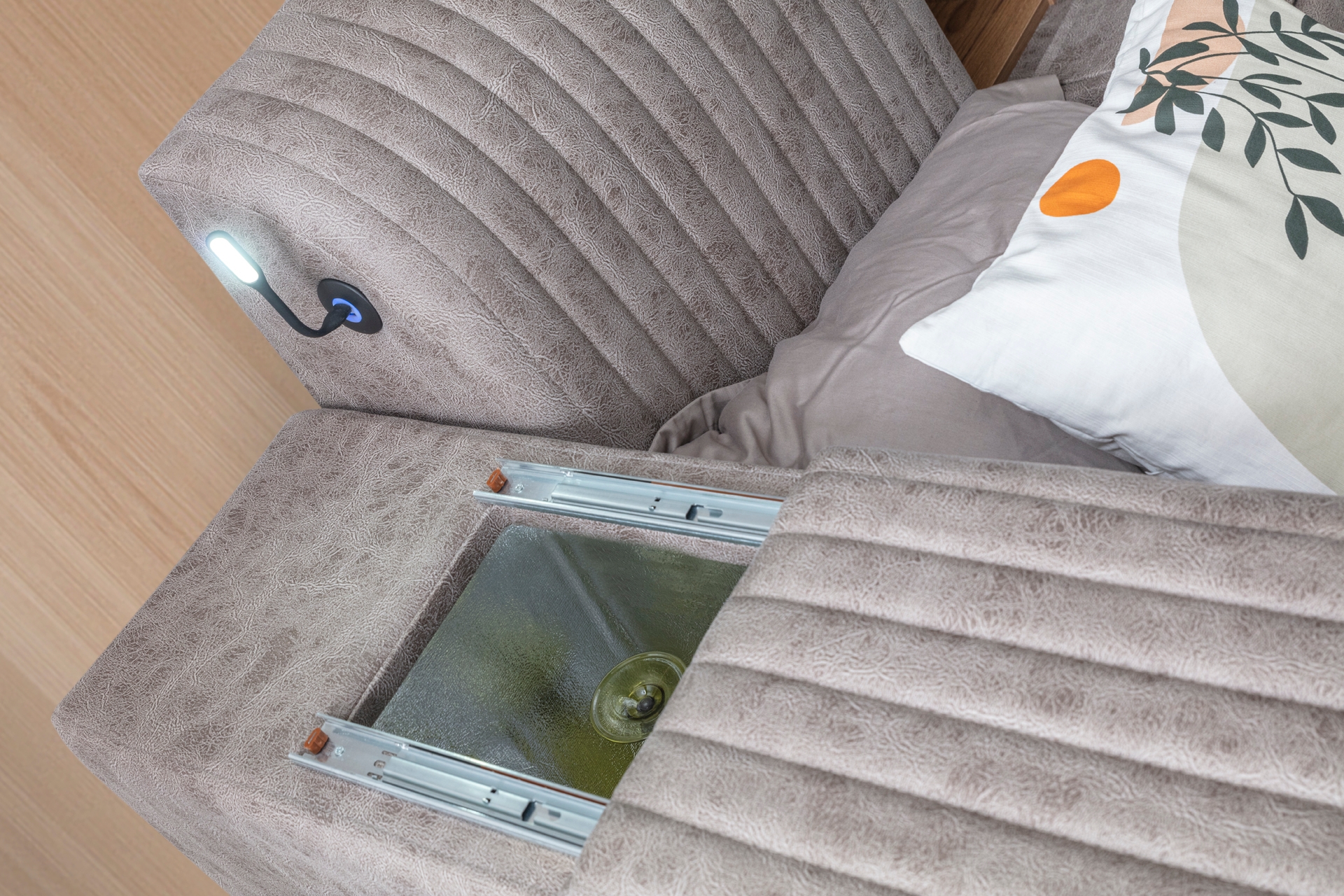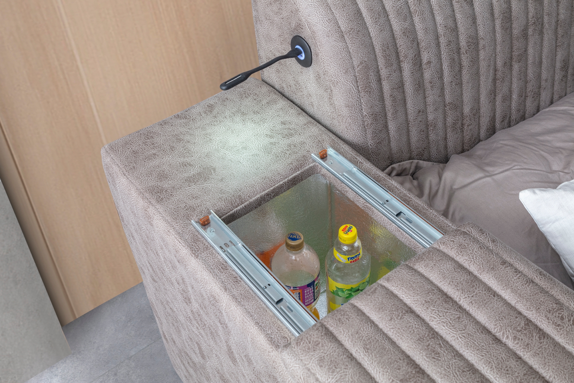 Takım İçeriğiTakım İçeriği: Ayarlanabilir Masaj Yatağı, Makyaj Pufu, Açılabilir Makyaj Aynası, Ses Sistemi , Priz Girişi, Gizli bölme Para Kasası, Kitap lambası, Soğutucu, Cam raf, Depolama alanları