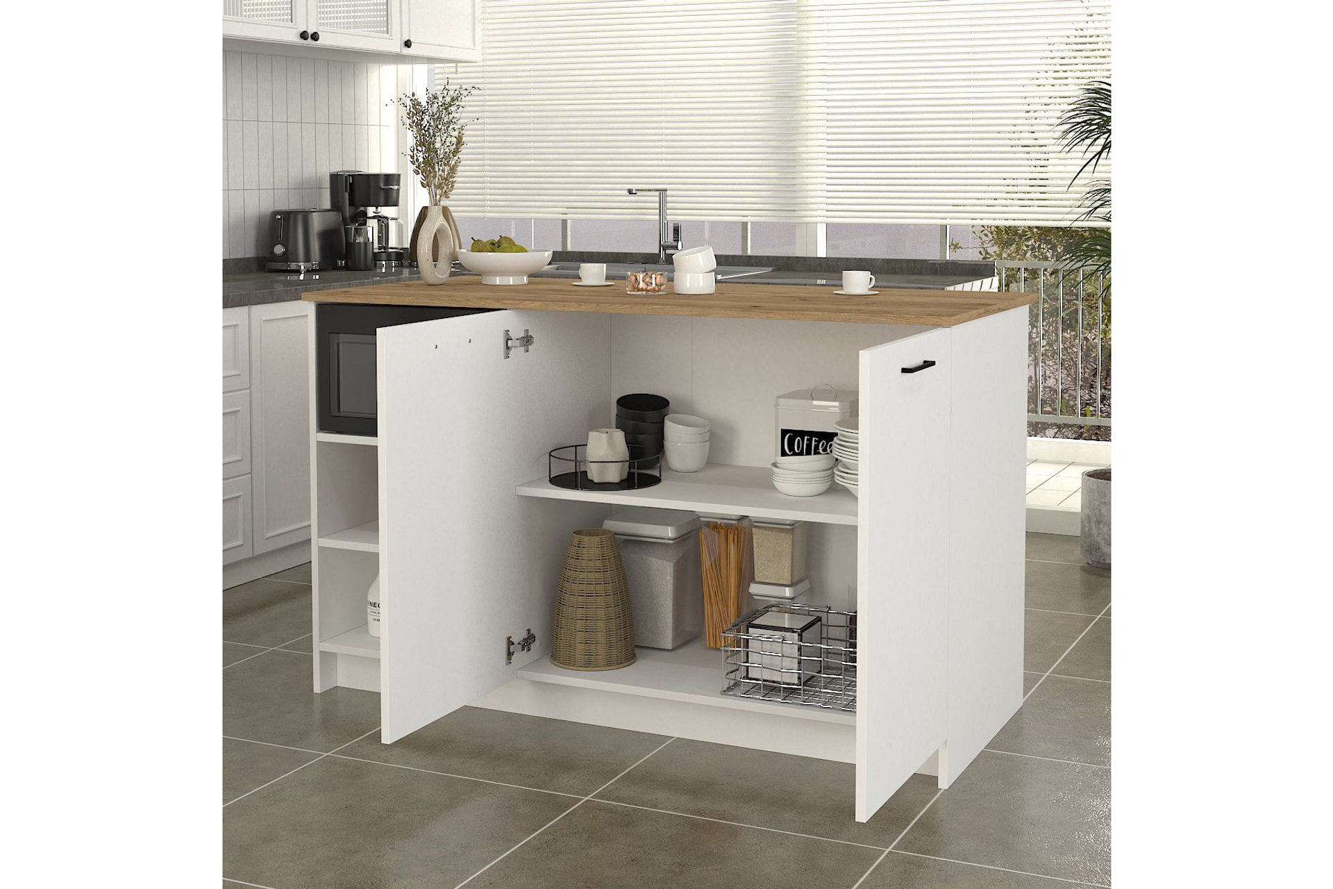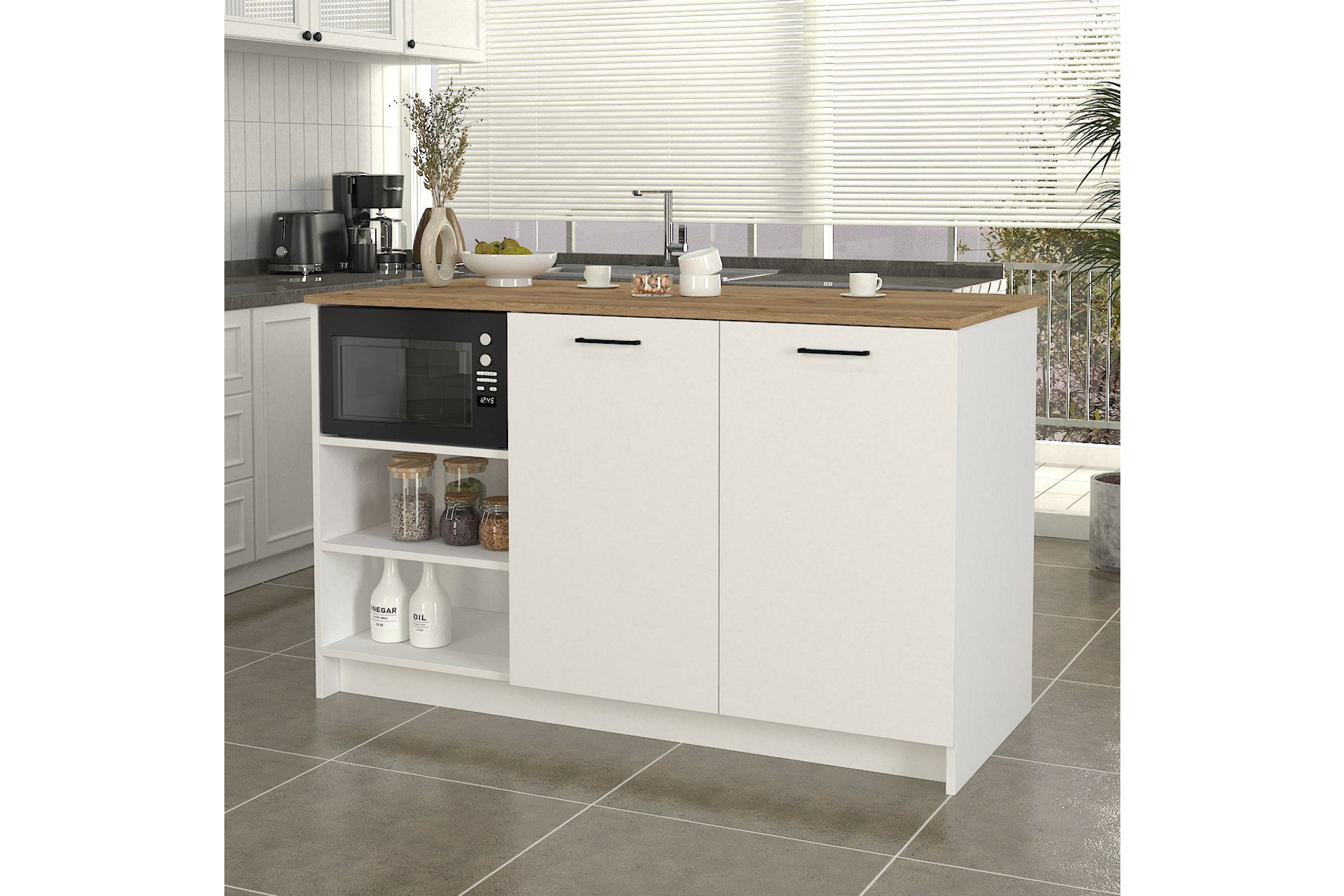Dorpek Peres Ada Mutfak Dolabı 150cm Beyaz - Sepet 150 cm 70 cm 91.8 cm