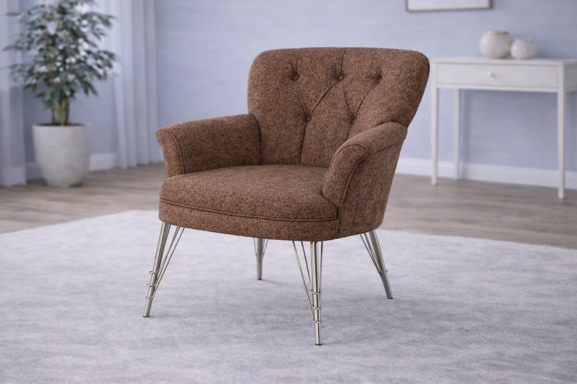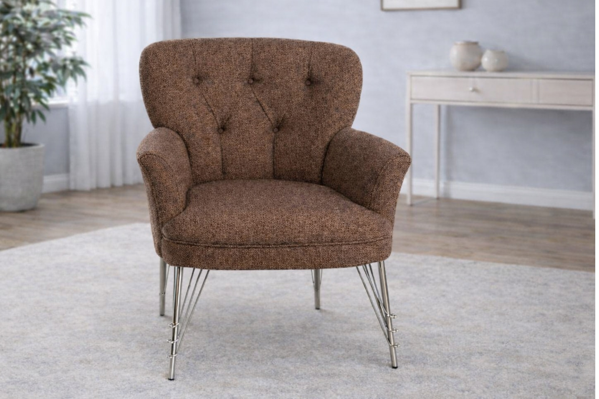 PUFY KOLLU TEKLİ BERJER KAHVERENGİ 60 cm 50 cm 75 cm