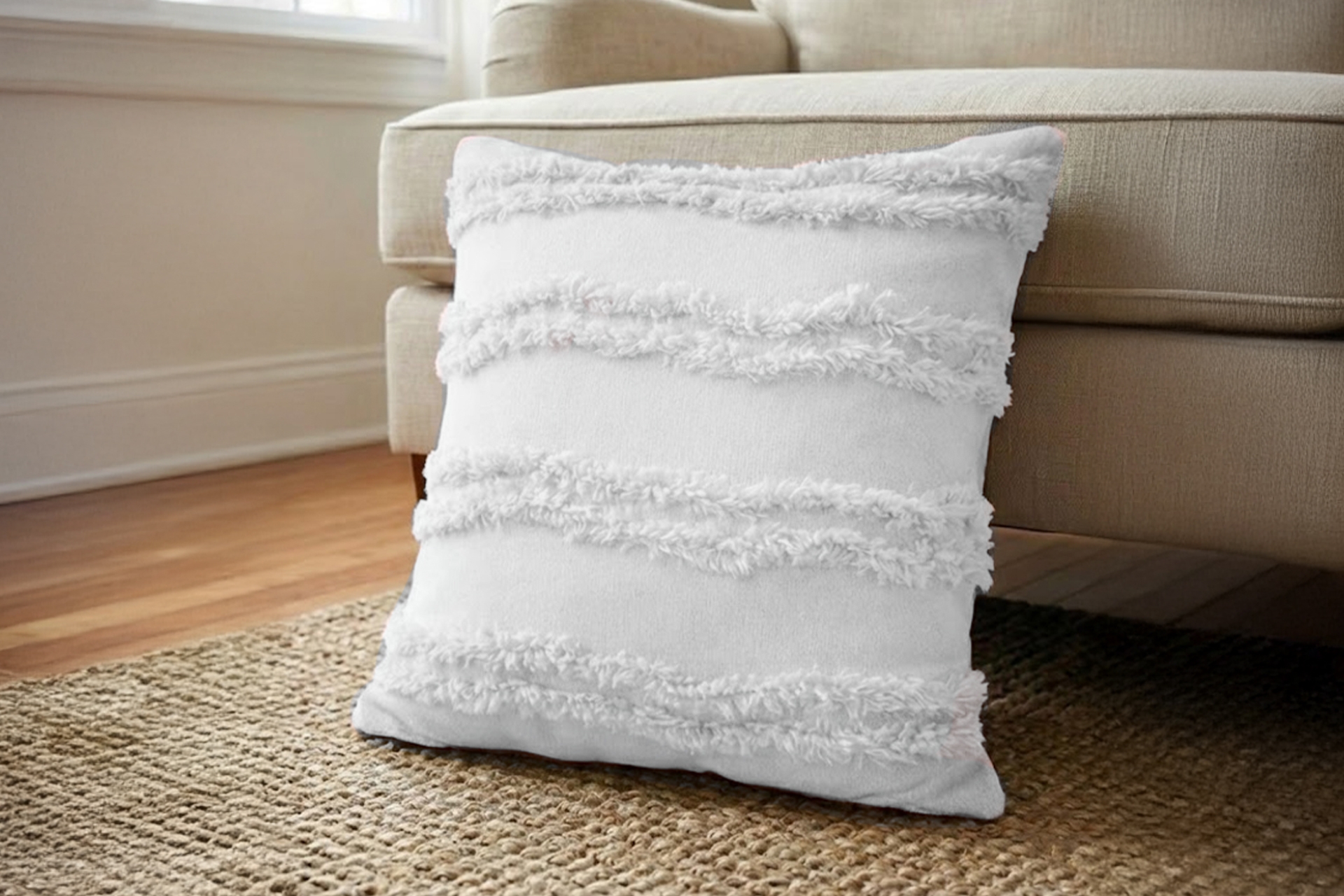 Püsküllü Pamuk Kırlent Kılıfı Beyaz 43 cm 2 cm 43 cm