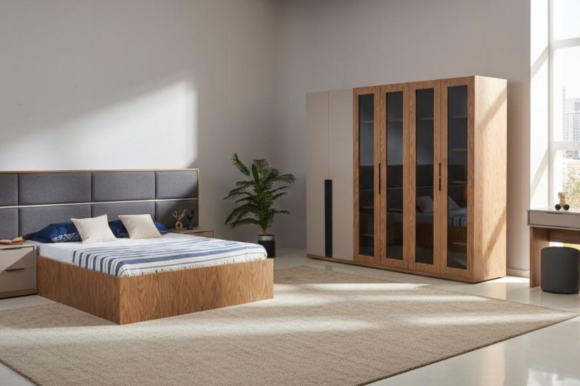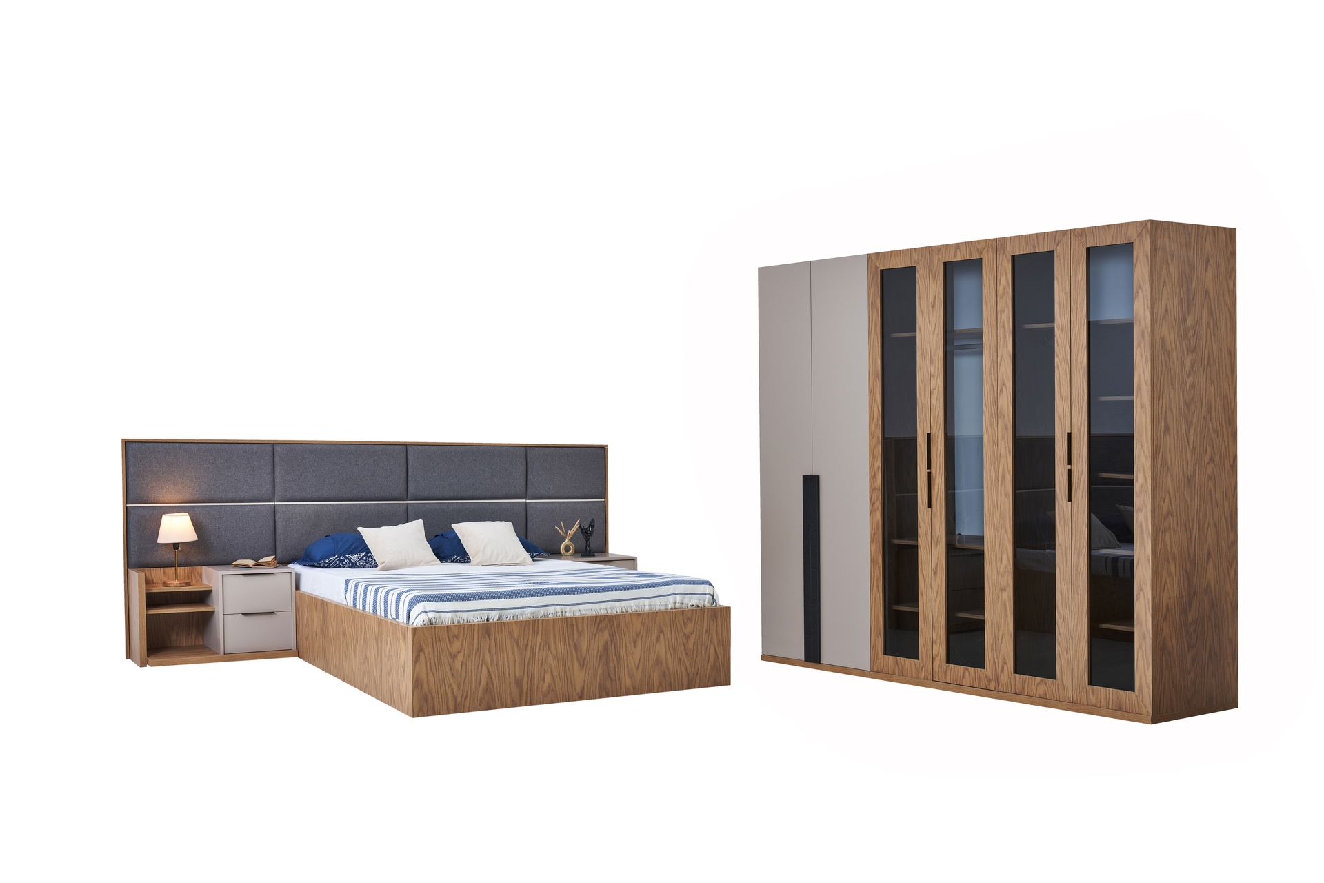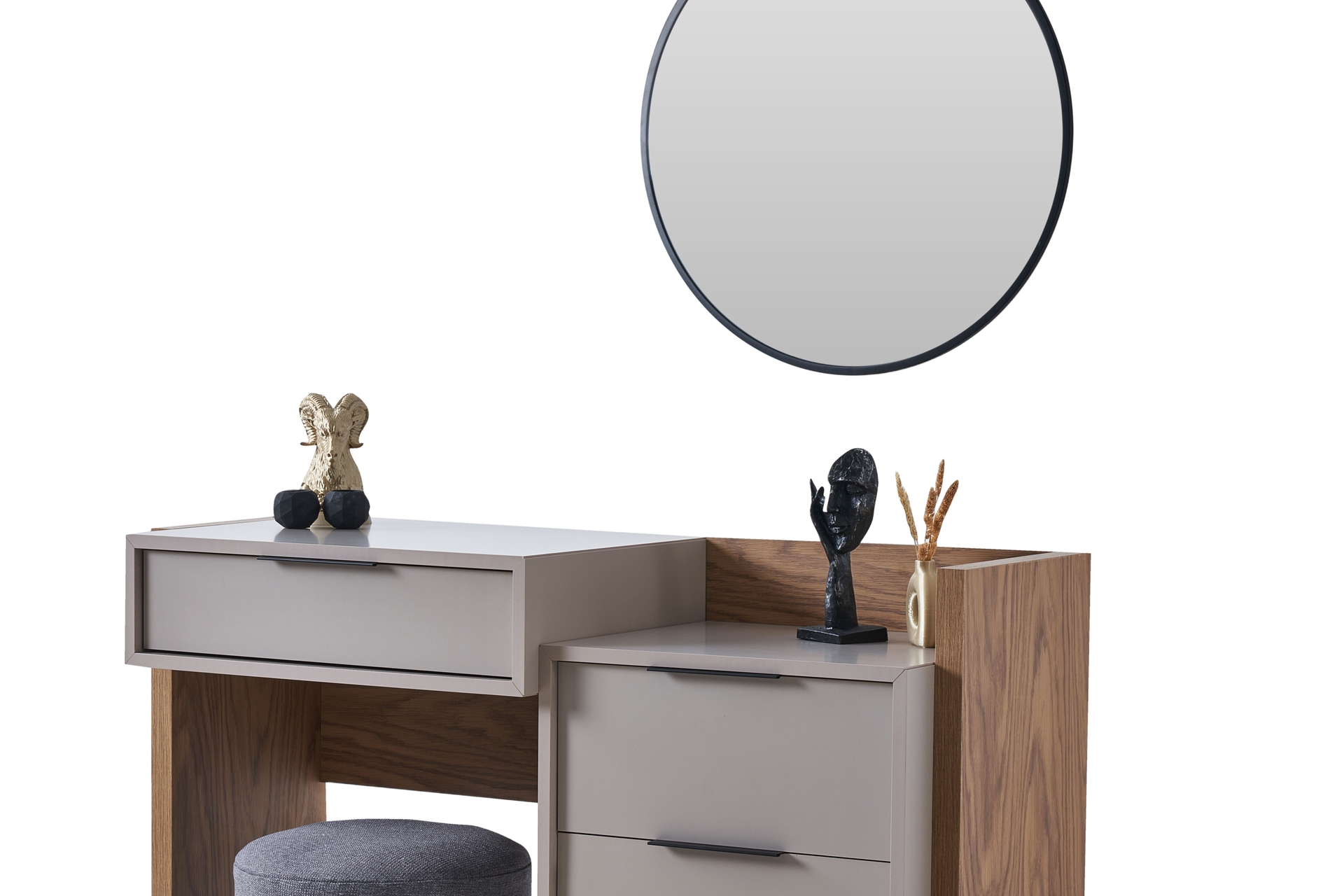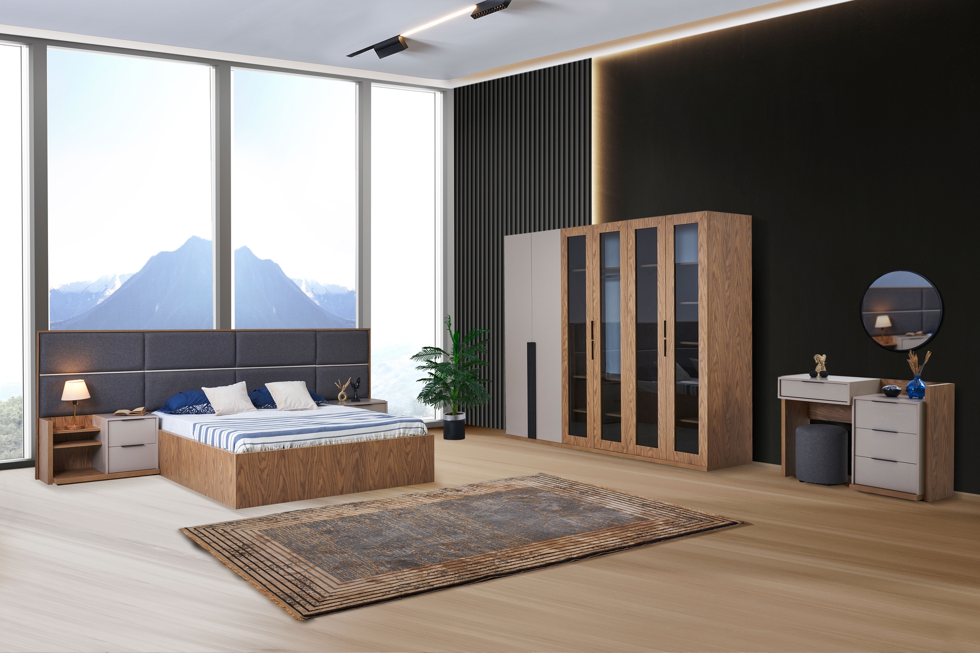 Takım İçeriği1 Adet Renata Gardırop, 6 Kapaklı 1 Adet Renata Makyaj Masası, Meşe Vizon, 4 Çekmeceli 1 Adet Renata Şifonyer Aynası, Siyah 1 Adet Renata Modern Komodin, Meşe, Vizon Gri 1 Adet Renata Modern Açık Raflı Komodin, Meşe, Vizon Gri 1 Adet Renata Modern Bazalı Karyola, 160X200 1 ADET,