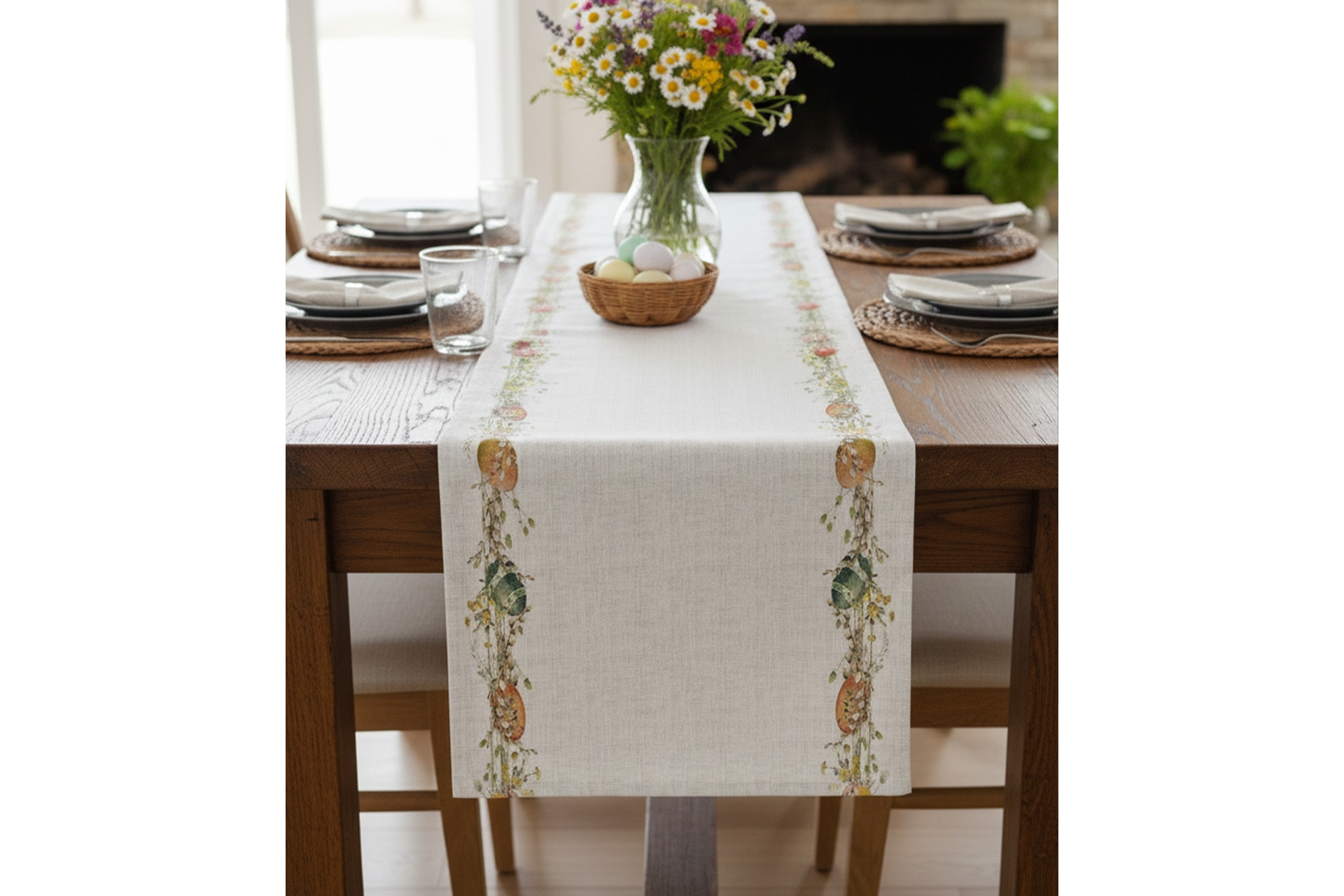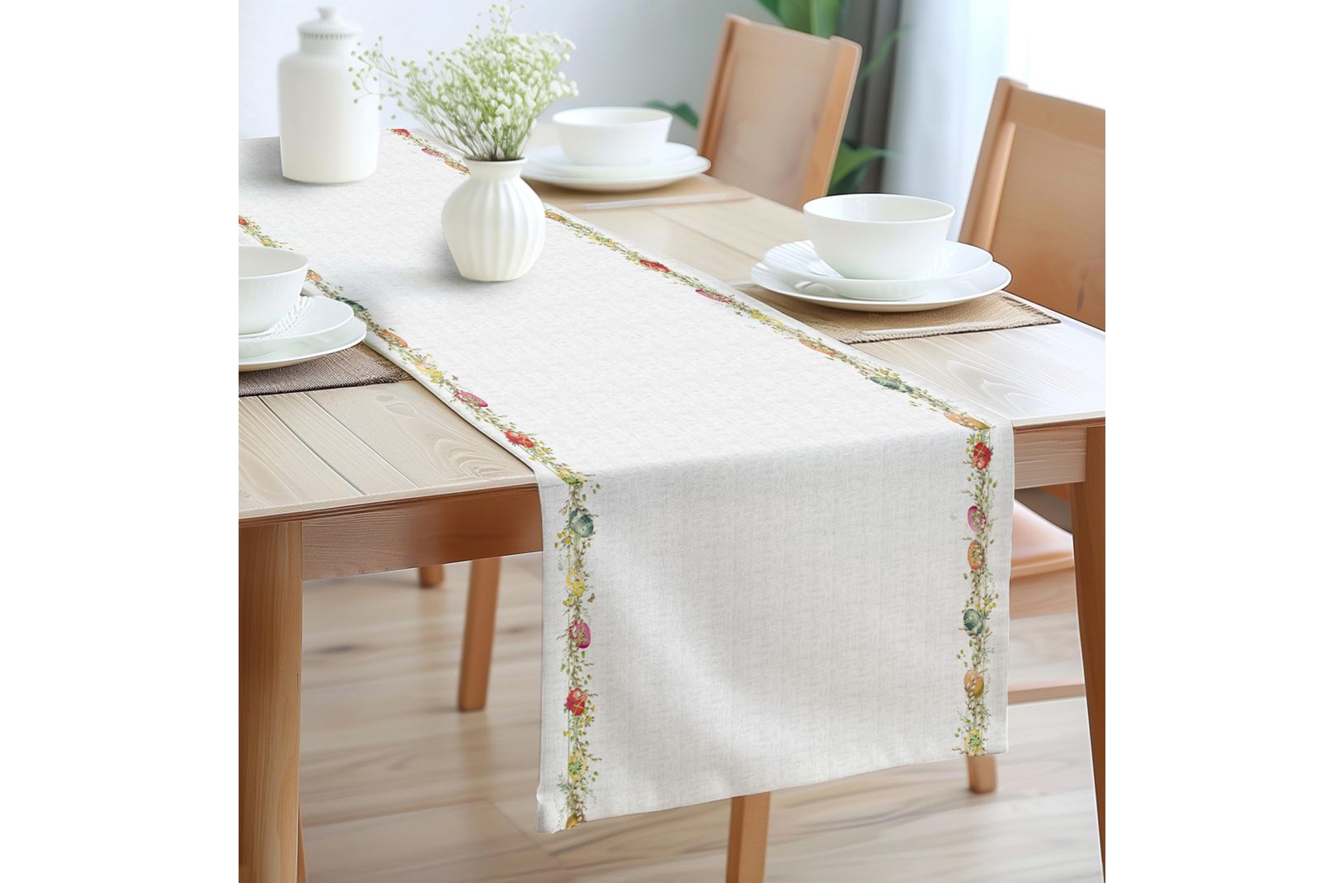 Renkli Yumurta Pamuklu Masa Runner 0069– 50x150 cm 50 cm 150 cm 1 cm