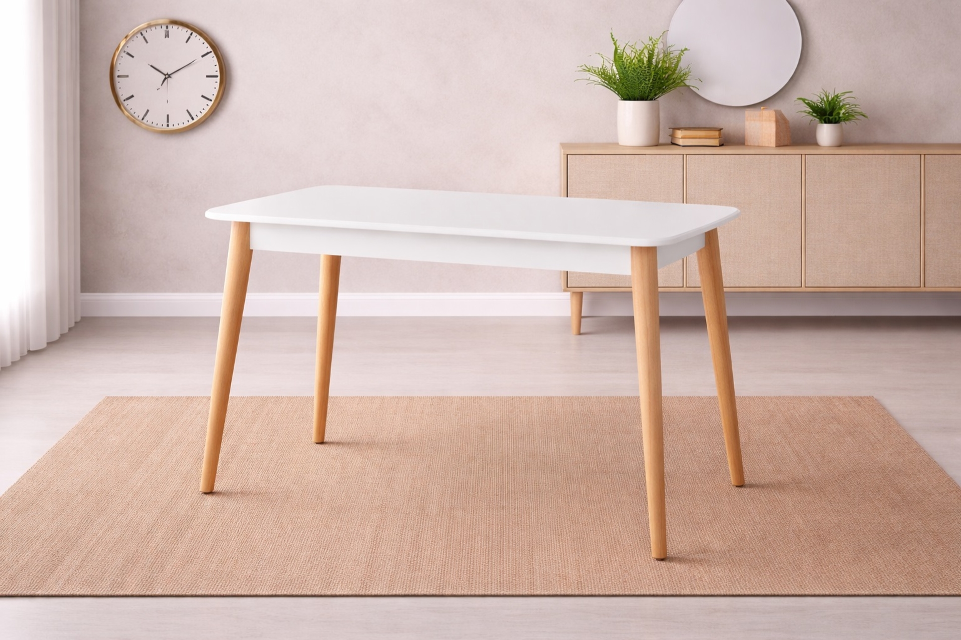Ek BilgilerMasa üst tablası MDF'dir. Beyaz cila atılmaktadır. Masa ayakları meşe renkli olup natural cilalıdır.