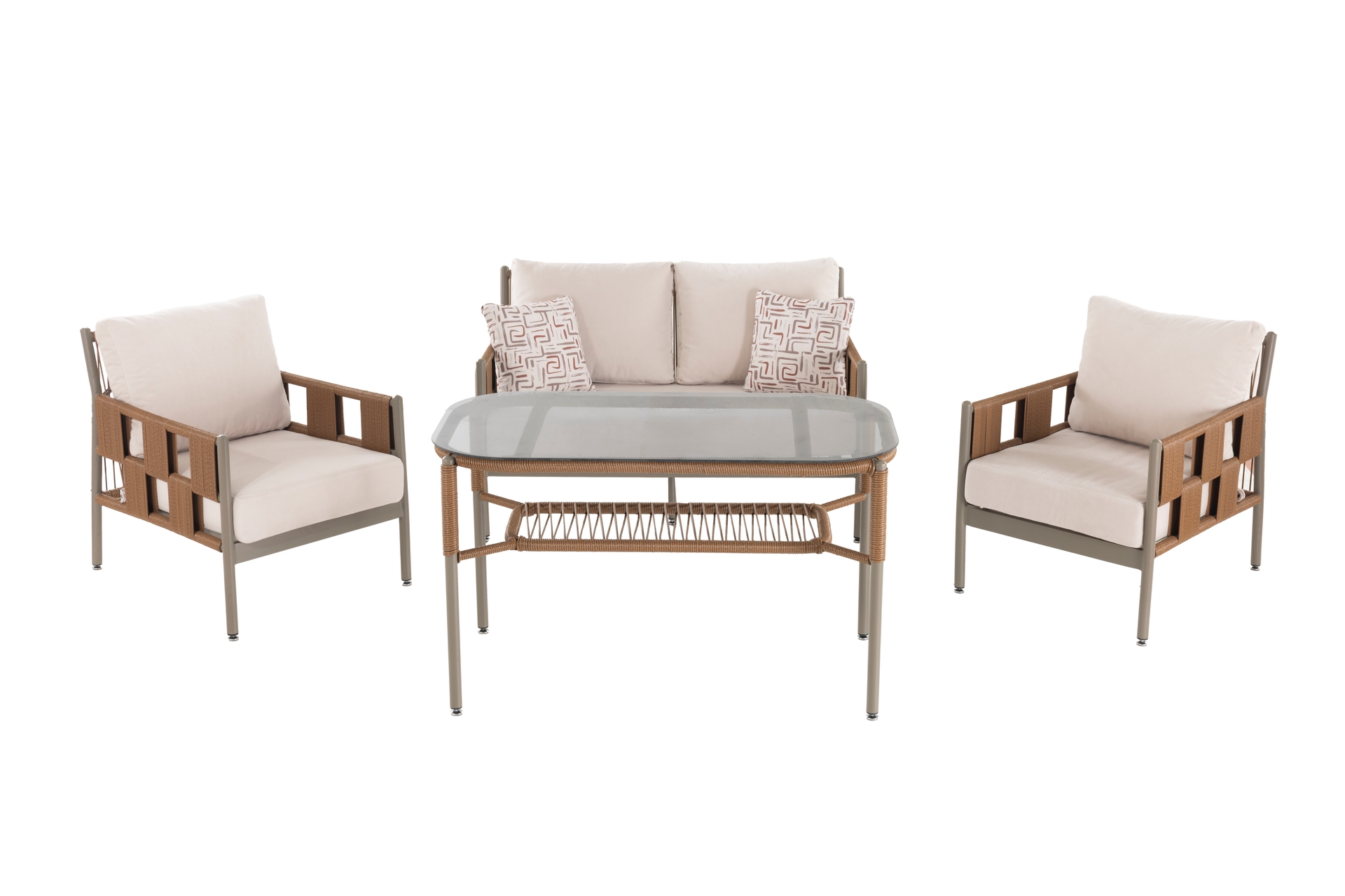 Ek BilgilerMalzemeler: Elyaf : Polipropilen veya Polietilen gibi poliolefinden yapılmış bir sentetik elyaftır. Döşemelik kumaş, ve içi mekânlarında kullanılır. Olefinin avantajları; lekelenmeye, küflenmeye, aşınmaya ve güneş ışığına karşı dayanıklıdır. Kumaş : Bahçe ve Balkon mobilyalarında, dış mekan şartlarına dayanıklı olefin içerikli malzemeden imal edilmiştir. Sünger : Oturum konforu sağlayan Yüksek yoğunlukta, soft özellikli poliüretan malzemeden imal edilmiştir. Metal Profil : Korozyona karşı dayanıklı ve dış mekânlarda uzun süre kullanım dayanımı sağlayan özel fırınlarda, elektrostatik boya işleminden geçirilmiş, yüksek kalitede metal malzemedir.