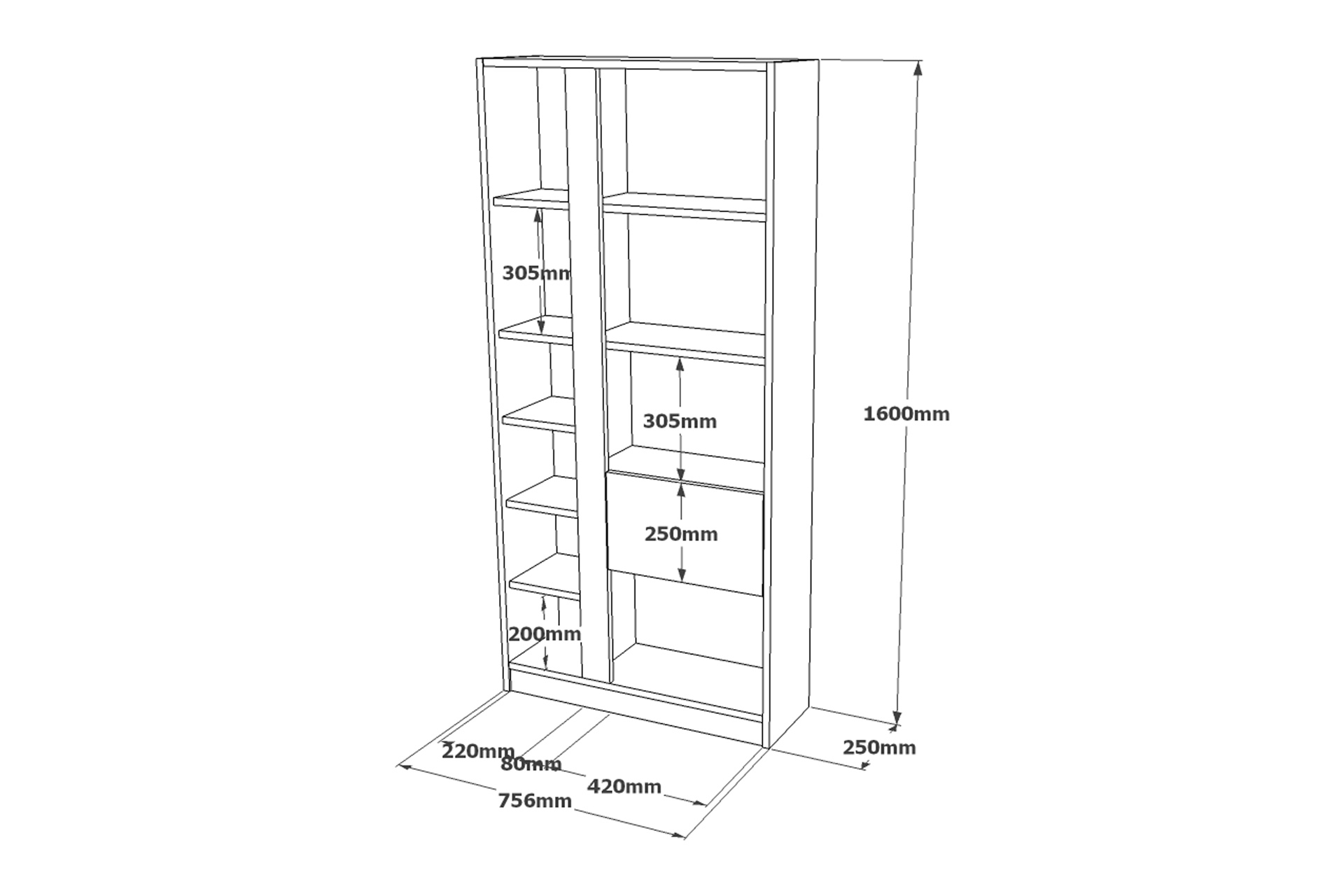 KİTAPLIK 75.6 cm 25 cm 160 cm