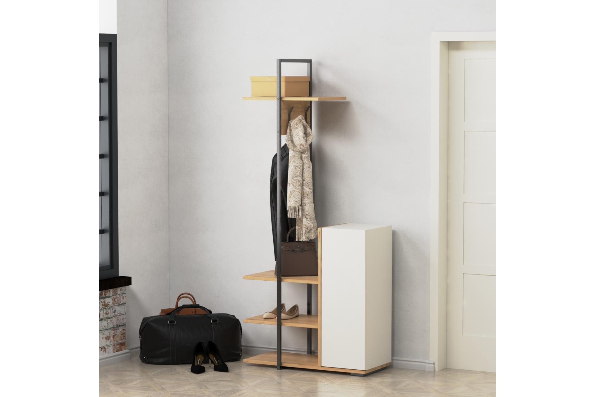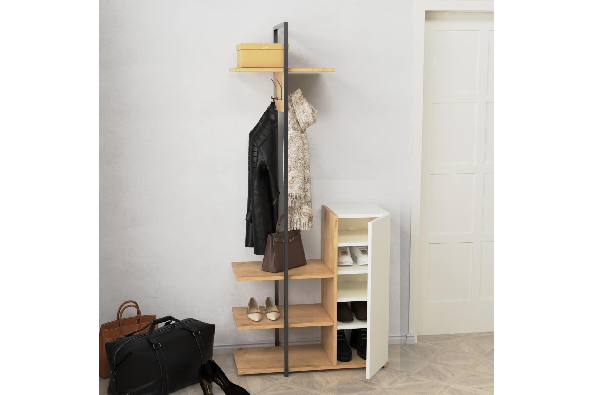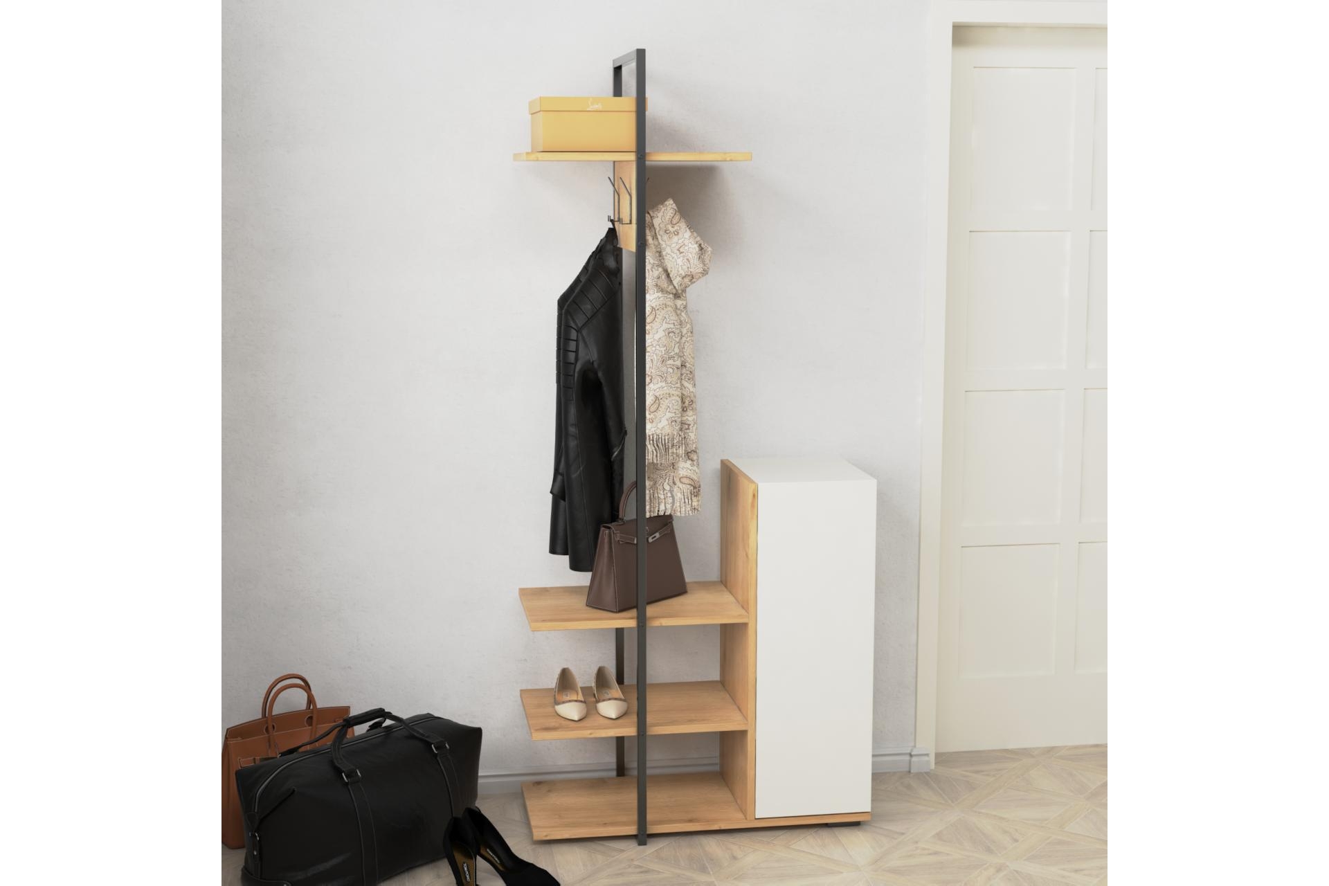 Ek BilgilerRONE Portmanto: -Gövdesi 1. sınıf suntalam malzemeden oluşmaktadır. -Parçaları en sağlam şekilde birleşecek özelliğe sahiptir. -Kurulumu en kolay şekilde yapılabilecek şekilde tasarlanmıştır. -Metal gövdesi çelik profilden imal edilmiştir. -Dolap kapağındaki kulp ve asklıklar metal malzemeden imal edilmiştir. -Metal parçalarda kullanılan boya fırınlanmış statik boyadır. Montaj: Ürünlerimiz özel kargo paketinde demonte olarak teslim edilir. Paketlerde gerekli kurulum şeması, tüm vida ve aksesuarların montaj seması ile uyumlu malzeme kutusu ve kullanma kılavuzu çıkmaktadır. NOT: Ölçüler dıştan dışa hacim ölçüleridir.