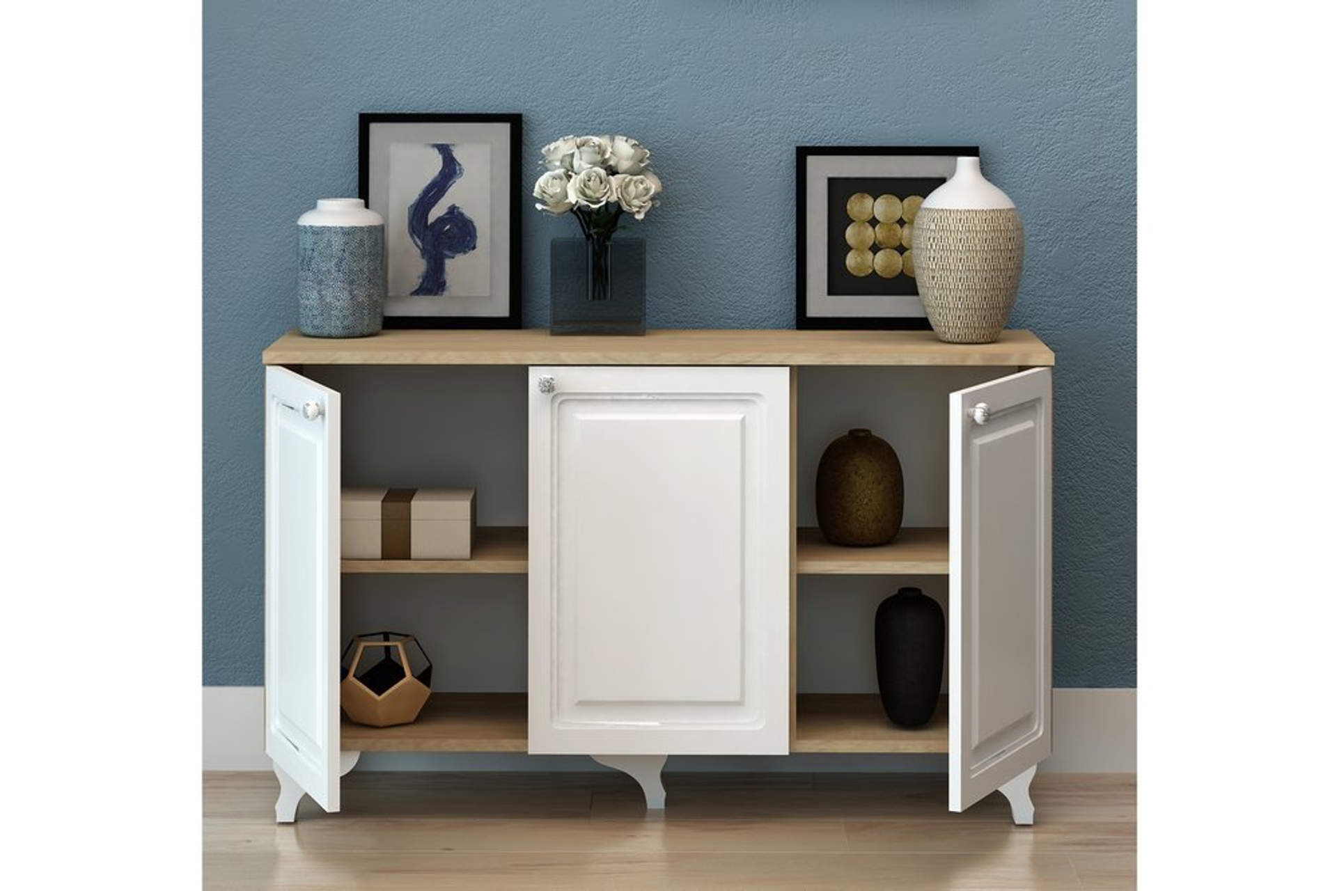 Ek BilgilerGövde kısmı melamin kaplı yonga levha malzemeden üretilmiştir. Kapakları beyaz membran mdf kaplamadır. Porselen düğme kulp kullanılmıştır. Ayak yüksekliği 10 cmdir.