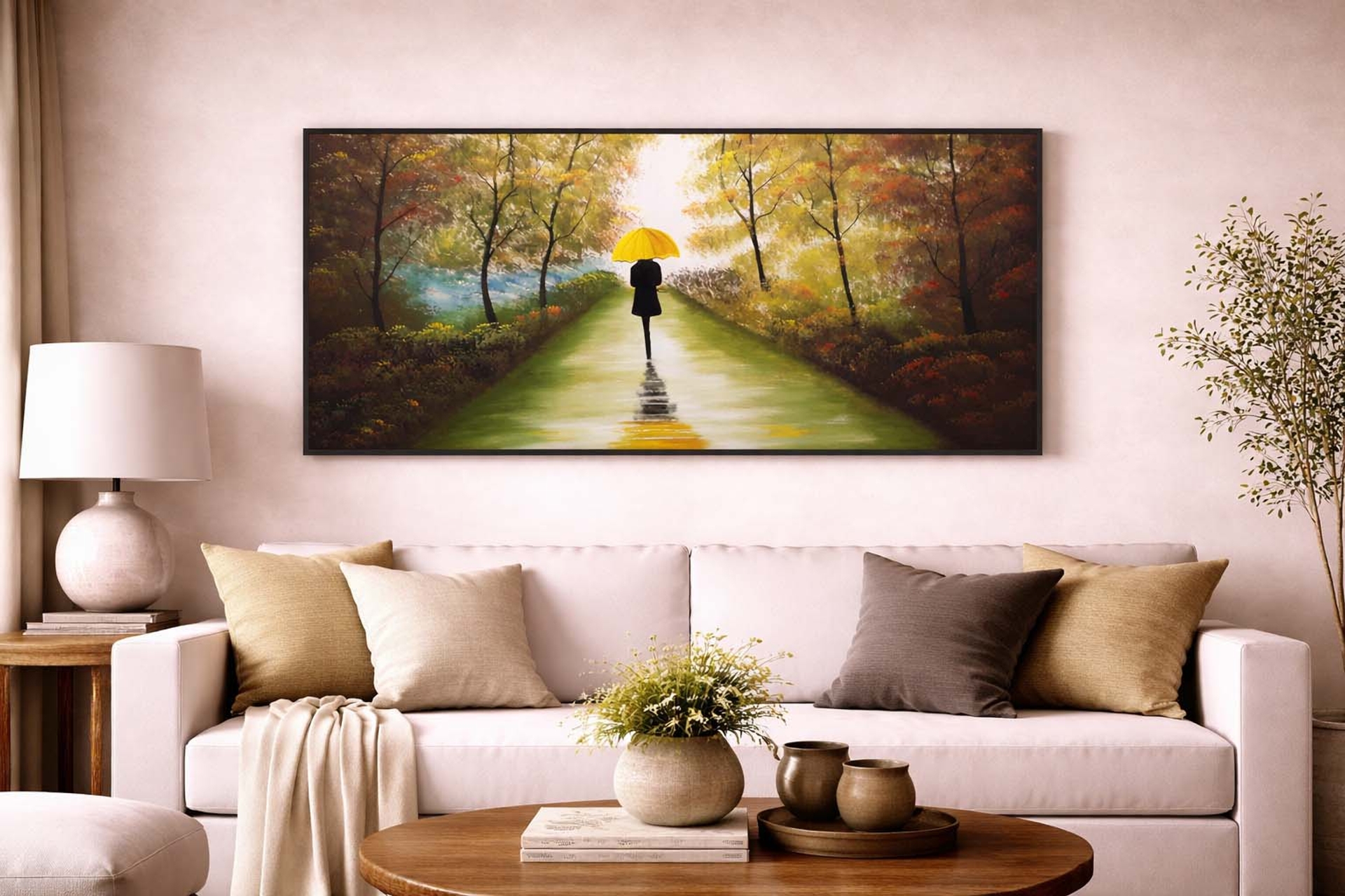 DesenSarı Şemsiyeli Kadın