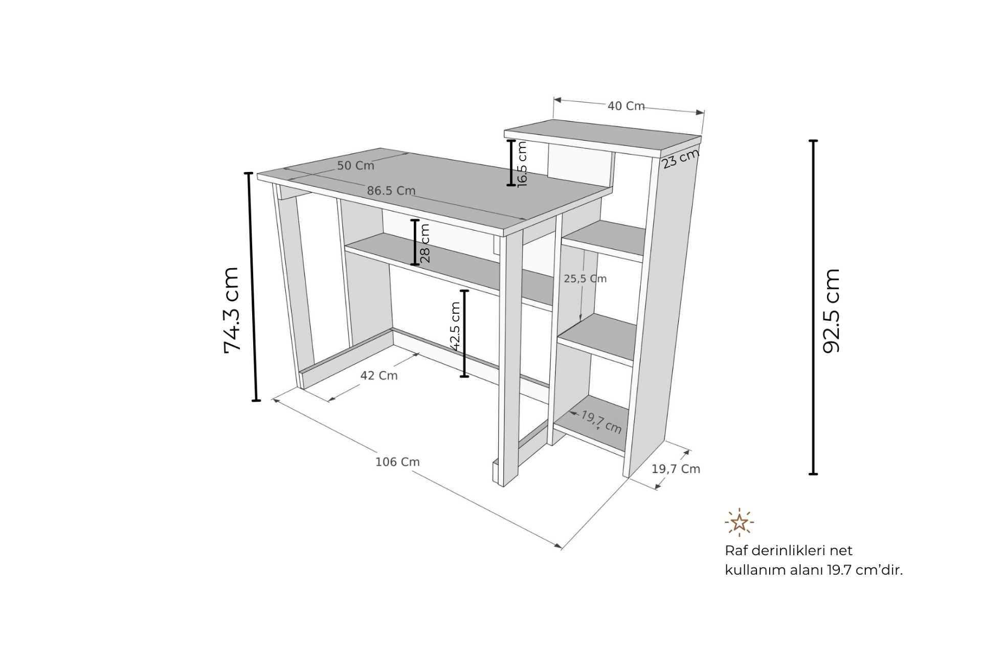ÖLÇÜ 106 cm 50 cm 74.3 cm