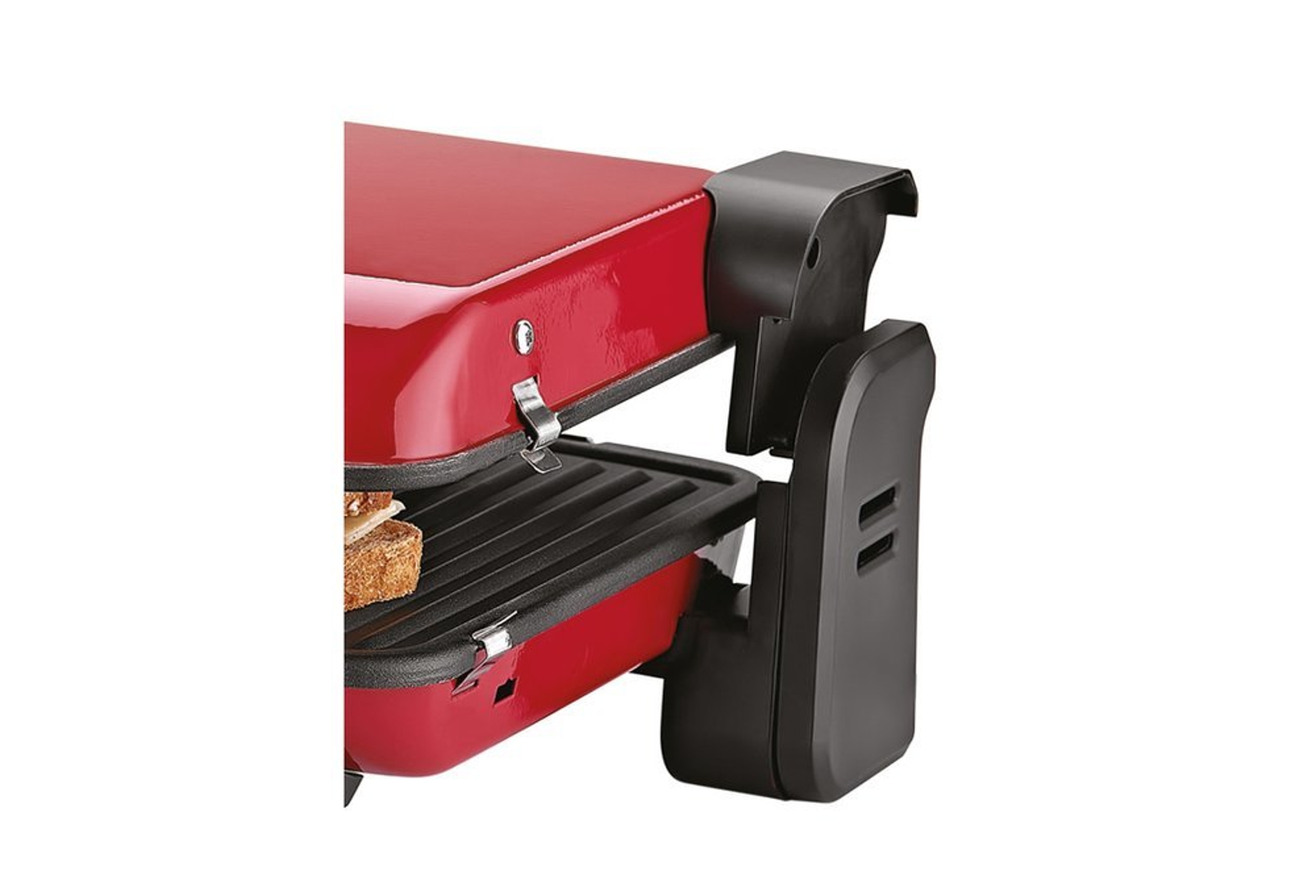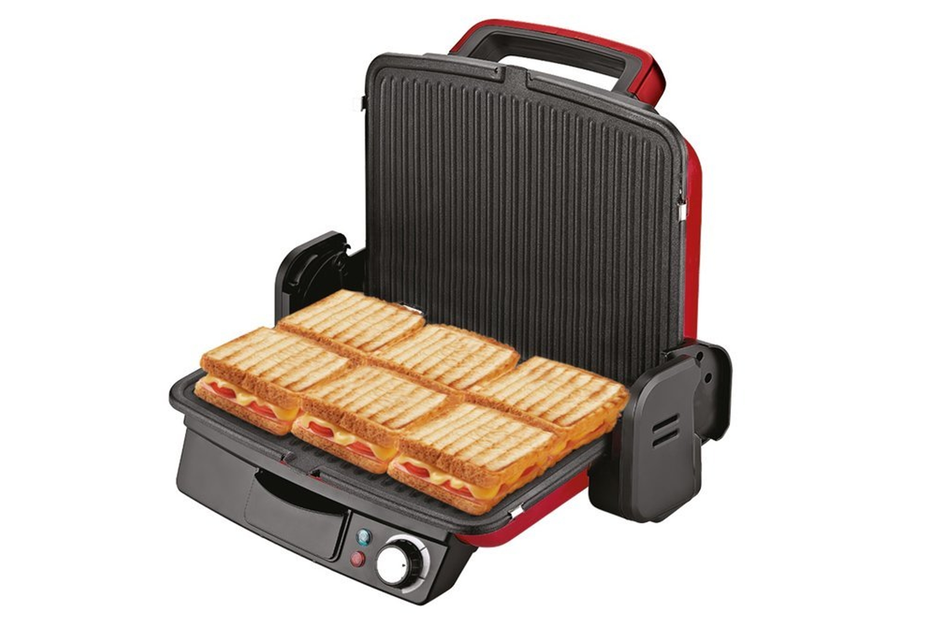 Cooltouch ısıya dayanıklı gövde, yiyecek kalınlığına göre ayarlanabilen üst gövde sistemi, 180 derece açılabilir üst gövde, çıkarılabilir yapışmaz pişirme plakası, ısıya dayanıklı ergonomik tutma sapı, ayarlanabilir ısı kontrol düğmesi, termostat ve ikaz ışığı, dik konumda muhafaza imkanı ve yağ damlama tepsisi bulunur.