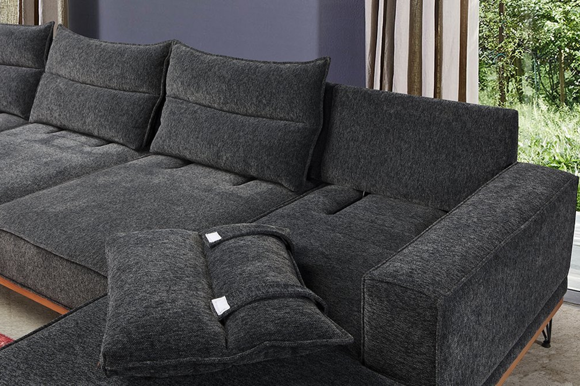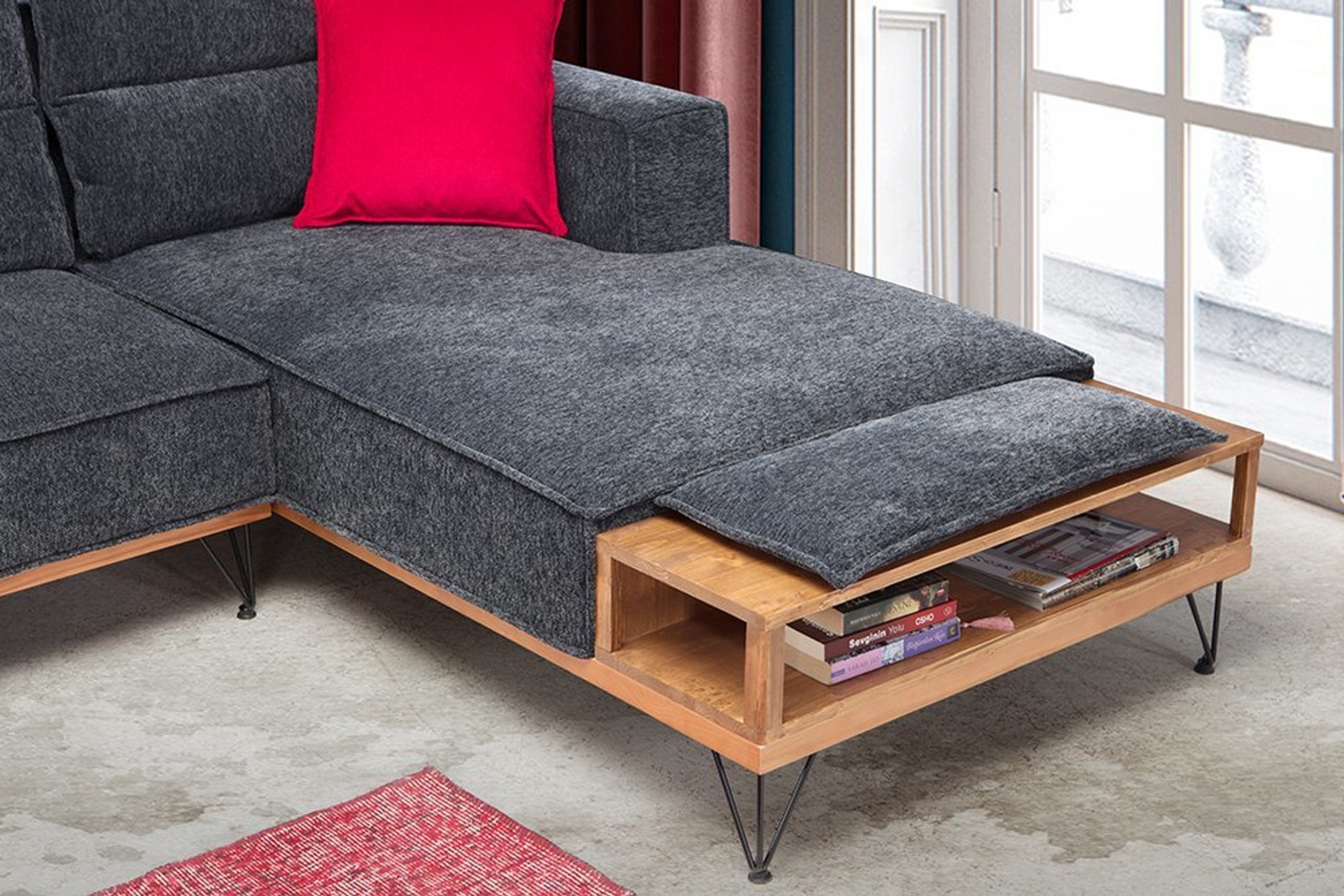 Ek Bilgiler1-Koltuk 35 hr sünger üzeri 4cm kuş tüyü sünger mevcuttur. Oturumu son derece yumuşak ve kalitelidir. 2-Kumaş serisi özel bir üründür ve terleme yakma gibi durumlar söz konusu olmaz. 3-Ağaç panel aksesuarı kitaplarınızı saklayabileceğiniz ve sohbet esnasında kahvelerinizi koyabileceğiniz sehpa özelliği taşımaktadır. 4-Sırt minderleri çıkarılabilir ve 30 derecede yıkanabilir. 5-Görsellerde yer alan karteladaki istenilen renkte üretilmektedir. 6-Köşe yönü, ürünün karşıdan görünüşüne göre belirlenmektedir.