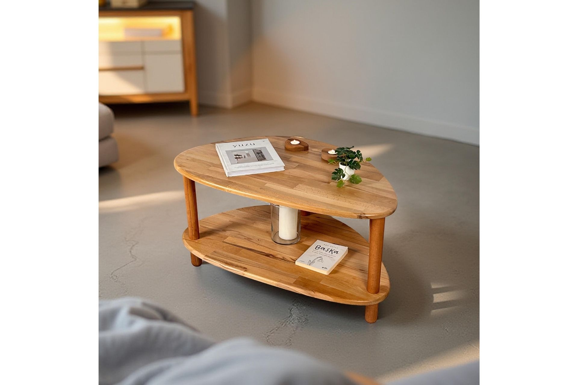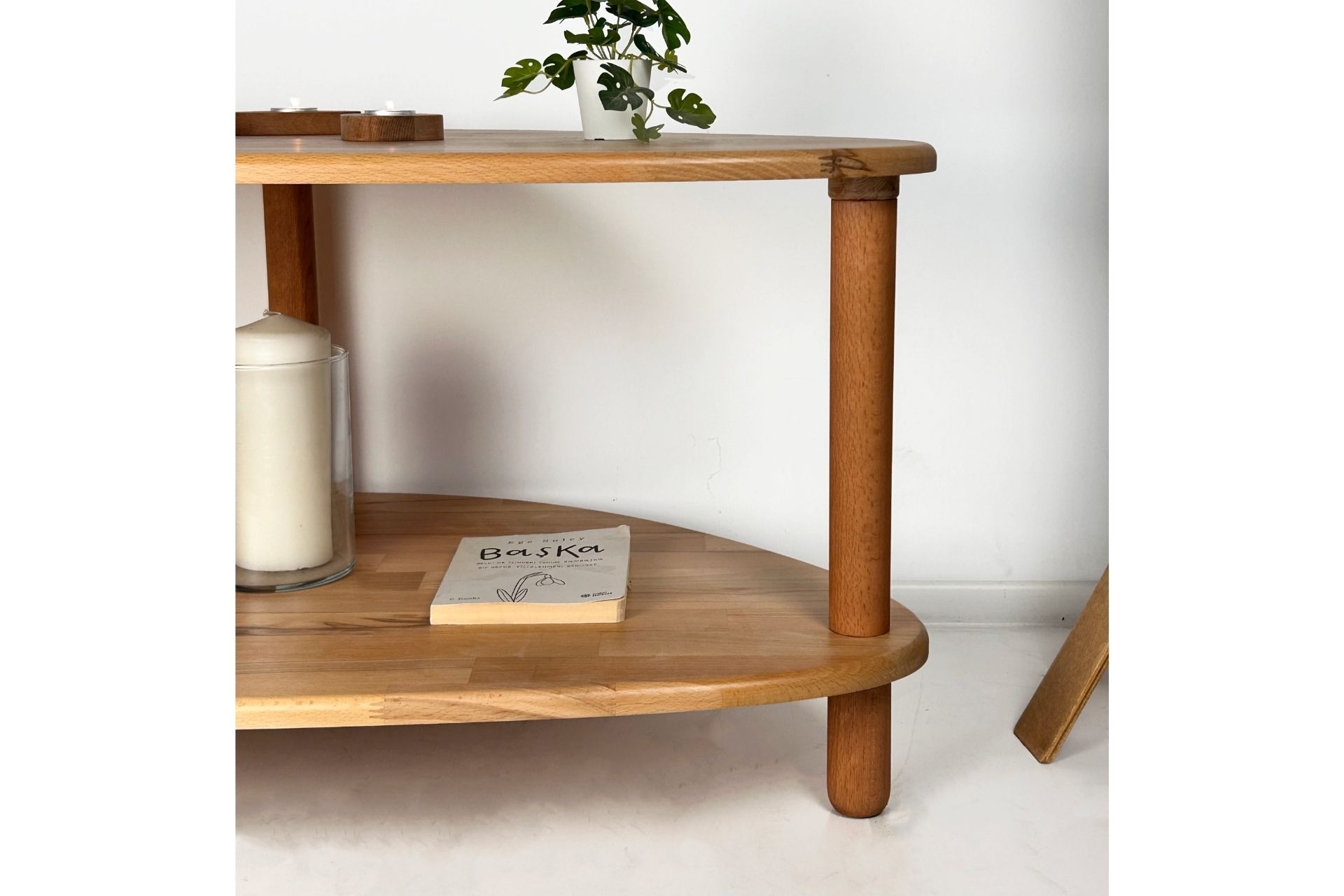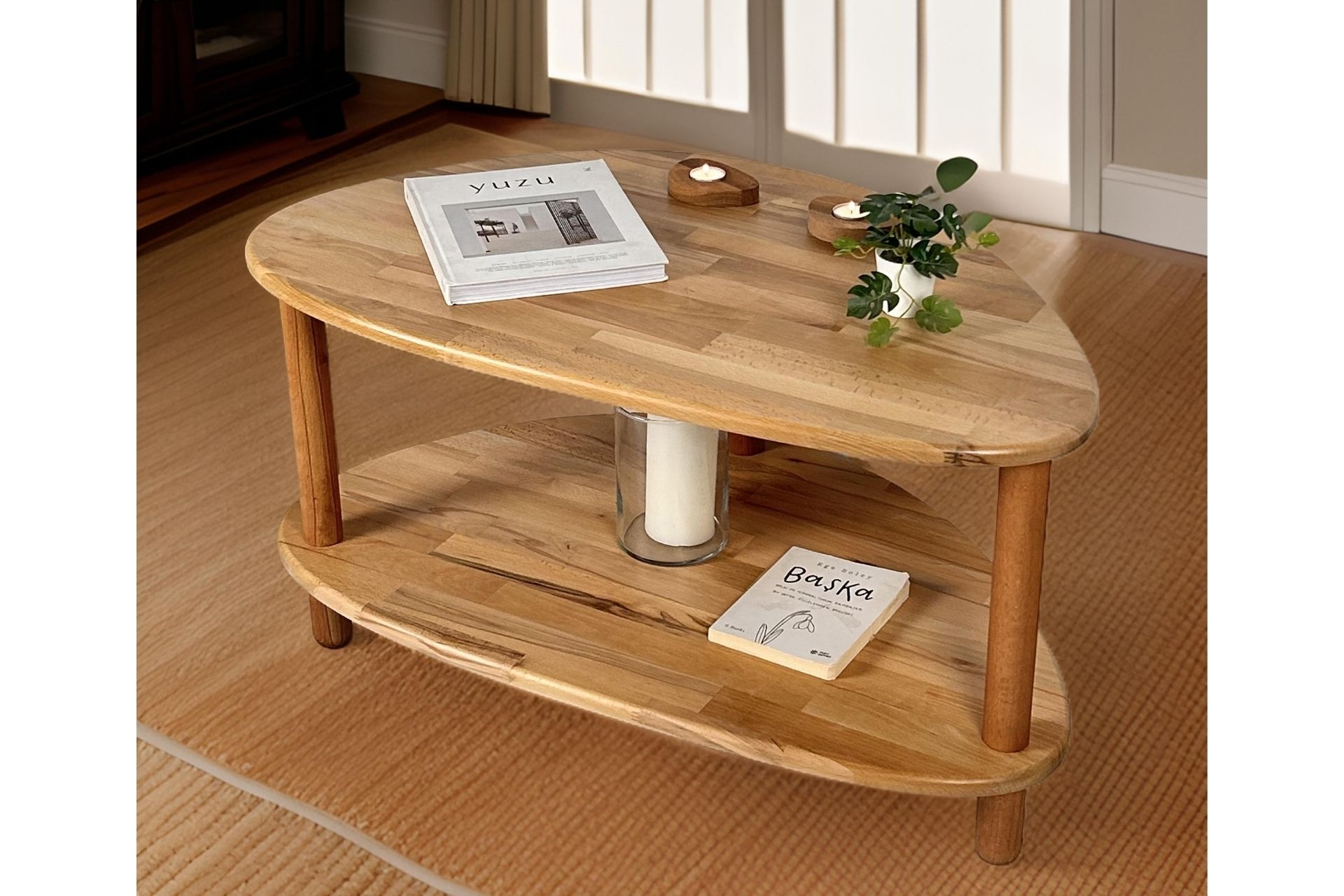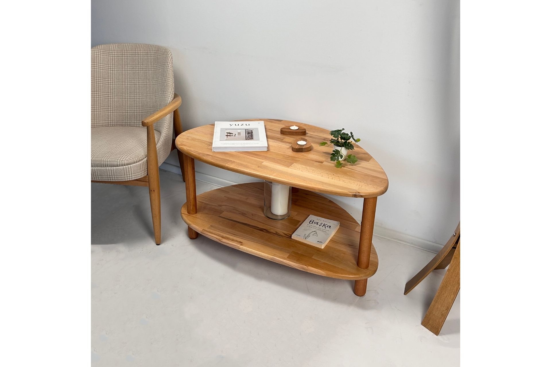 Ek BilgilerYaşam alanlarınıza sıcaklık ve şıklık katacak bu doğal ahşapiki raflı orta sehpa, zarif tasarımıyla dikkat çekiyor. Organik formdaki üsttabla ve alt raf, hem estetik hem de işlevsel bir kullanım sunar.Kitaplarınızı, dekoratif objelerinizi rahatça yerleştirebileceğiniz geniş yüzeyi ile salonlarınıza ferahlık kazandırır. %100 doğal masif ahşaptan üretilmiştir. Doğal dokusu, ahşabın sıcak ve zarif görünümünü yansıtır. Modern ve minimal çizgilerle tasarlanmıştır. Dengeli yapısıyla güvenli bir kullanım sunar. Üst yüzeyi, dekoratif objeler, kitaplar ve bitkiler içinideal genişliğe sahiptir. Sağlam gövde yapısı ve kaliteli bağlantı noktaları sayesinde uzun ömürlüdür. Her parça özenle işlenmiştir; doğal dokular korunarak kusursuz bir görünüm sağlanır. Alt raf ile ekstra depolama alanı sunar; hem şık hem işlevsel bir kullanım sağlar. El işçiliği ile üretilmiş, tamamen özgün bir tasarıma sahiptir. Ürün Ölçüleri: Yükseklik:45 cm Genişlik: 90 cm Derinlik: 55 cm