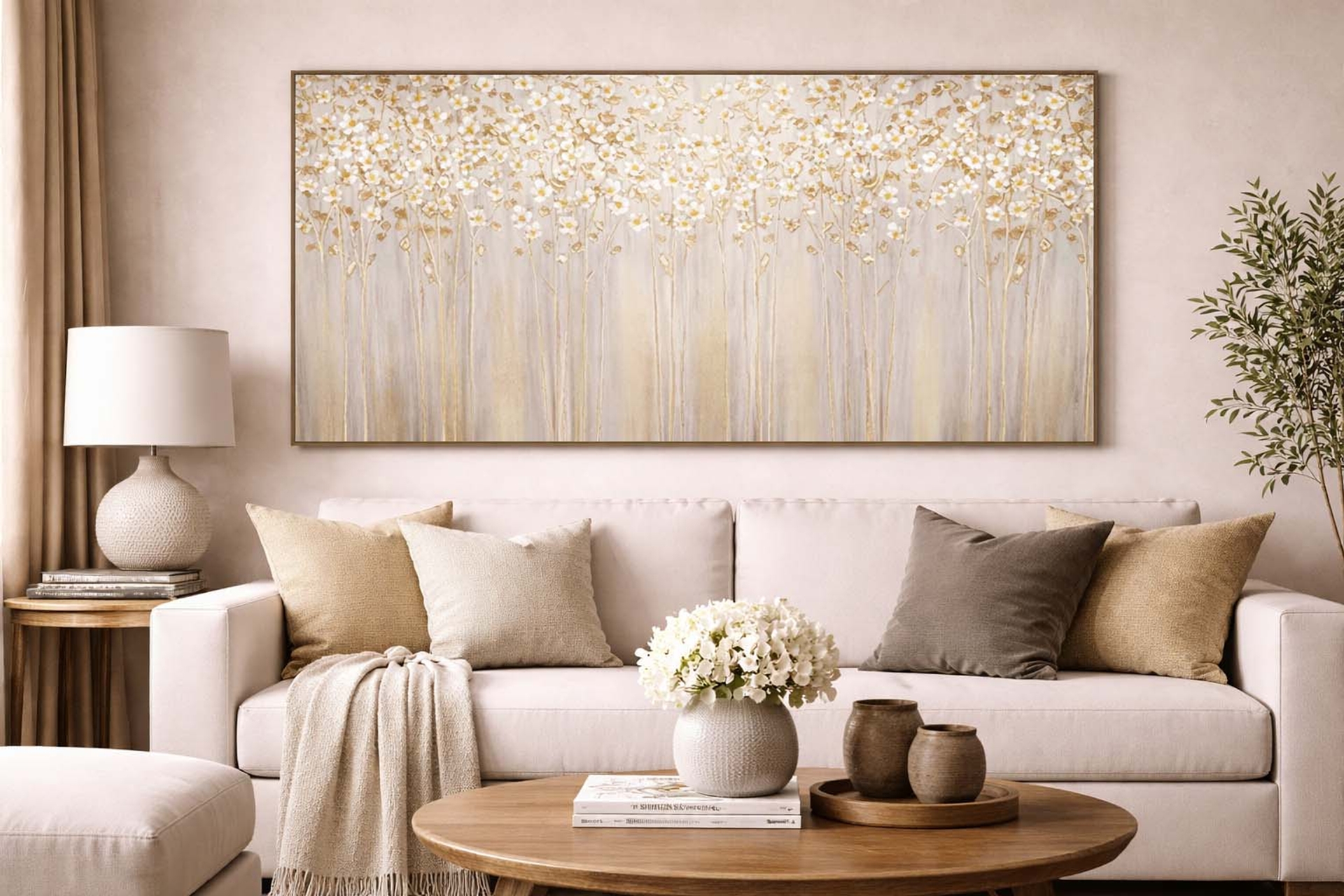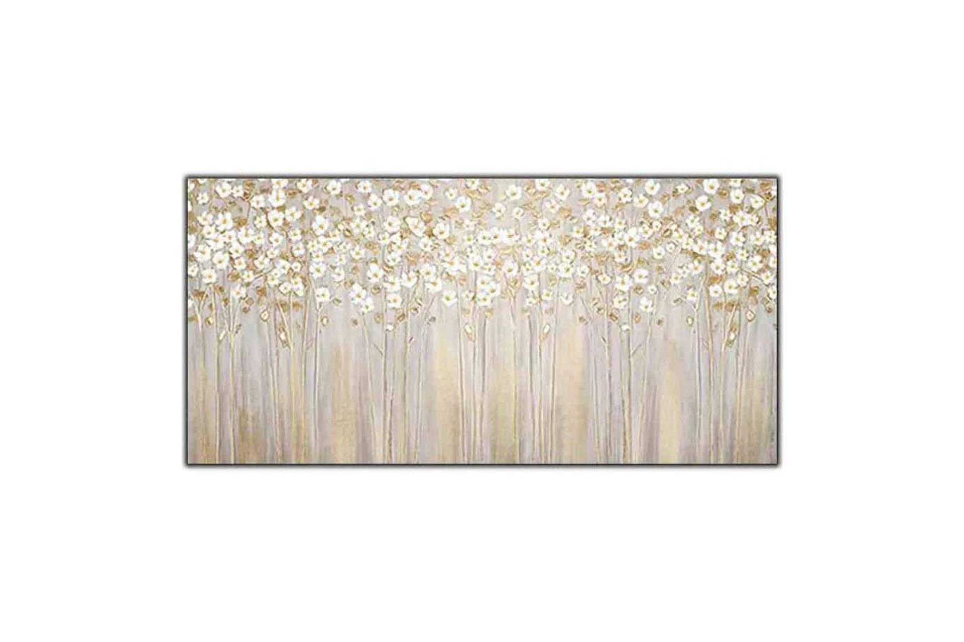 DesenSoyut Altın Zemin Ve Beyaz Yapraklı Çiçekler
