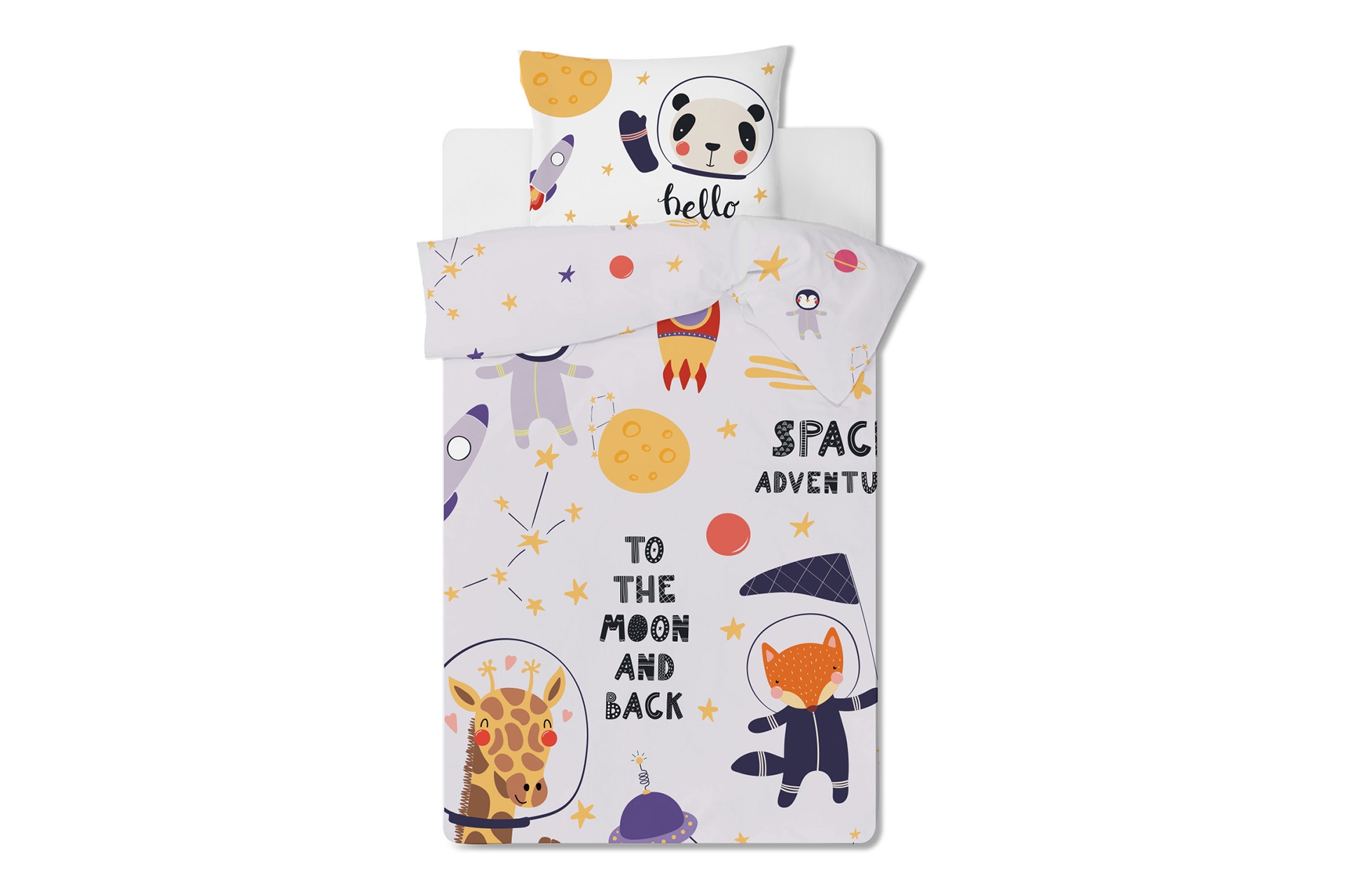 Ek BilgilerBebek nevresim takımında 35×45 cm yastık kılıfı ve 100×150 cm yorgan kılıfı bulunmaktadır.%100 organik pamuk saten kumaştan üretilmektedir.Organik sertifikalı boya ile baskı yapılmaktadır.Nevresim set içeriğinde çarşaf bulunmamaktadır.Yorgan kılıfı ve 1 adet yastık kılıfı bulunmaktadır.İsteğe göre baskılı veya düz renk lastikli alt çarşaf temin edilmektedir.Kumaşında veya baskısında çocuk sağlığına zararlı herhangi bir madde kullanılmamaktadır.Makina da 30°C hassas yıkama yapılmalıdır.Beyazlatıcı kullanılmamalıdır.
