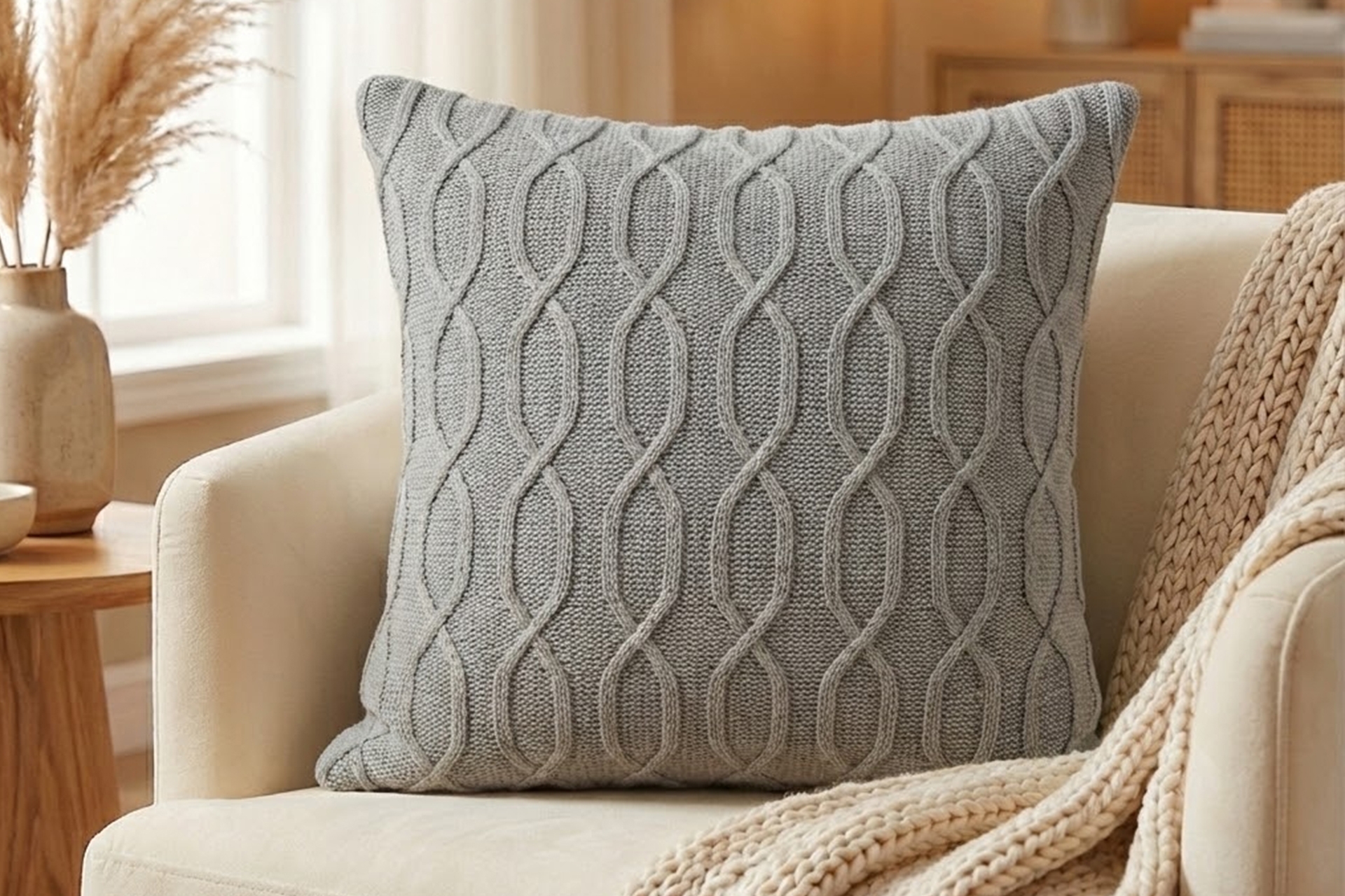 Ek BilgilerTriko Pamuk Kırlent Kılıfı Gri