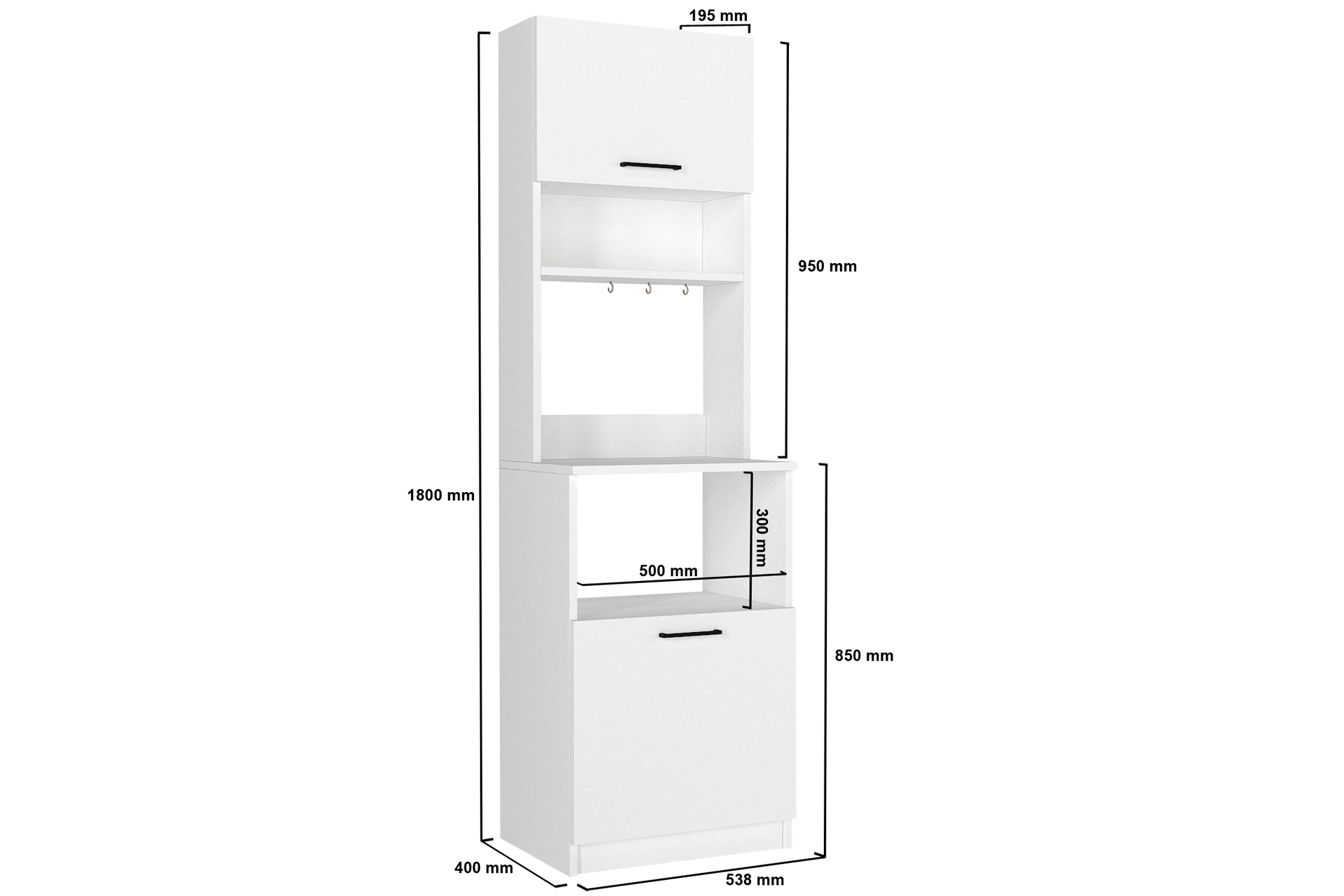 Dorpek Tuco 1 Kapaklı Mutfak Dolabı Beyaz 53.8 cm 40 cm 180 cm