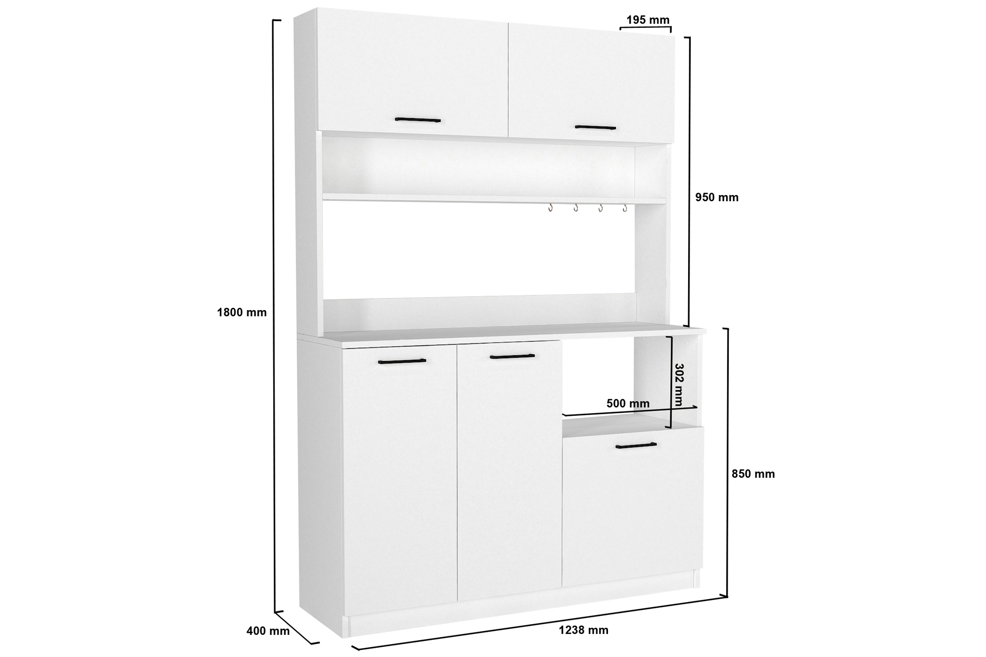 Dorpek Tuco 3 Kapaklı Mutfak Dolabı Beyaz 123.8 cm 40 cm 180 cm
