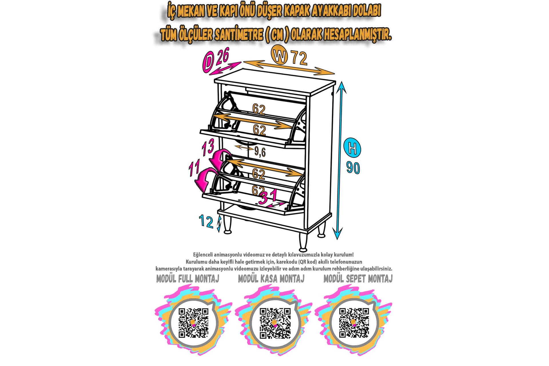 Kurulu Ölçüler 72 cm 26 cm 90 cm