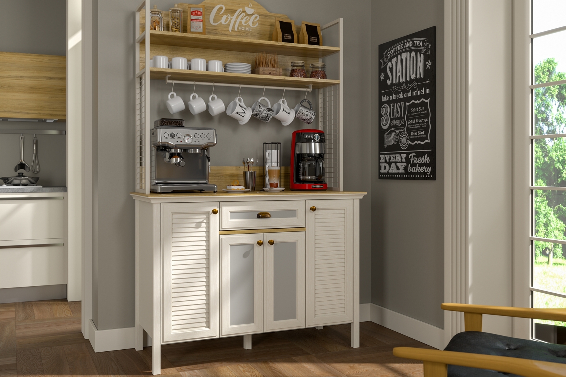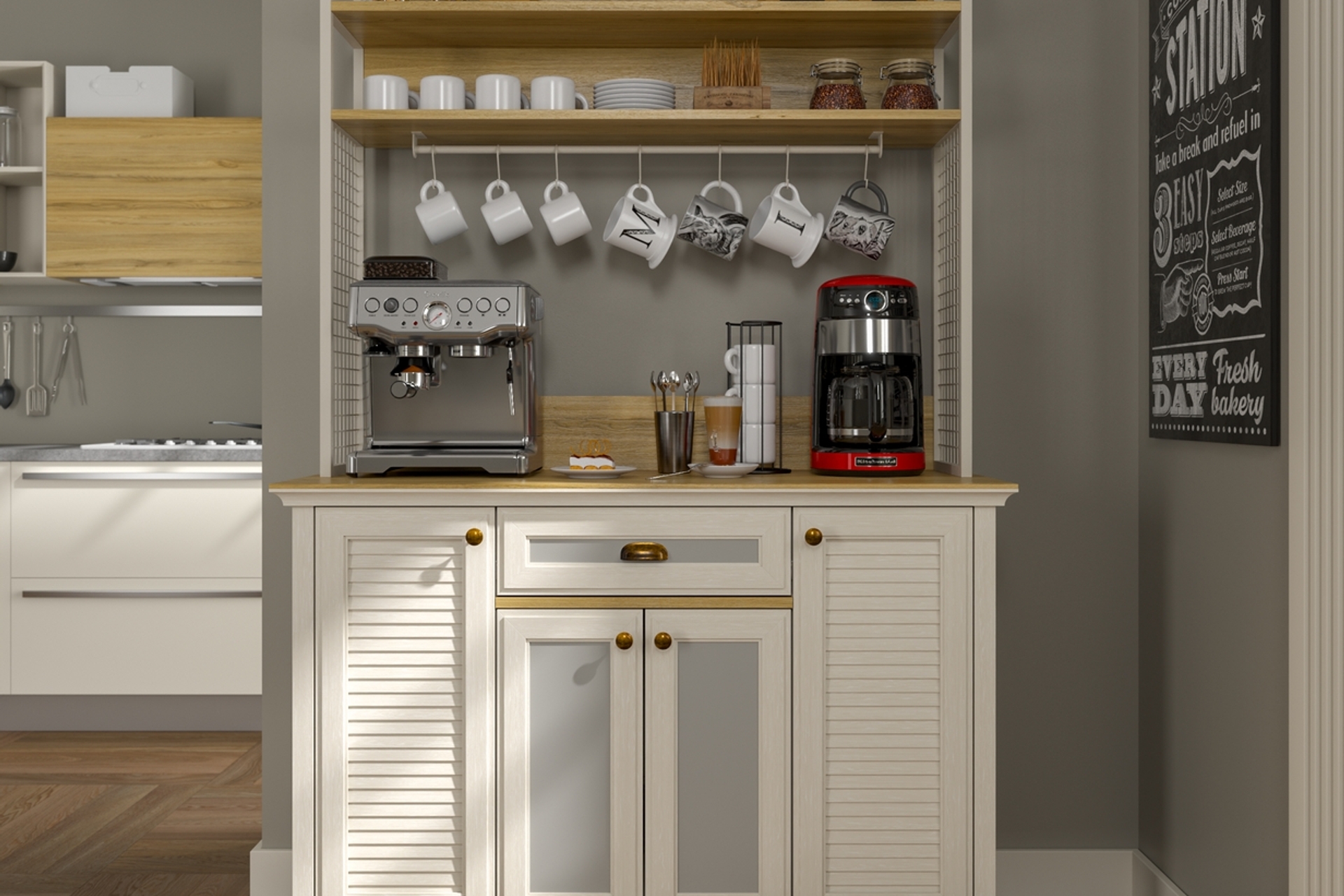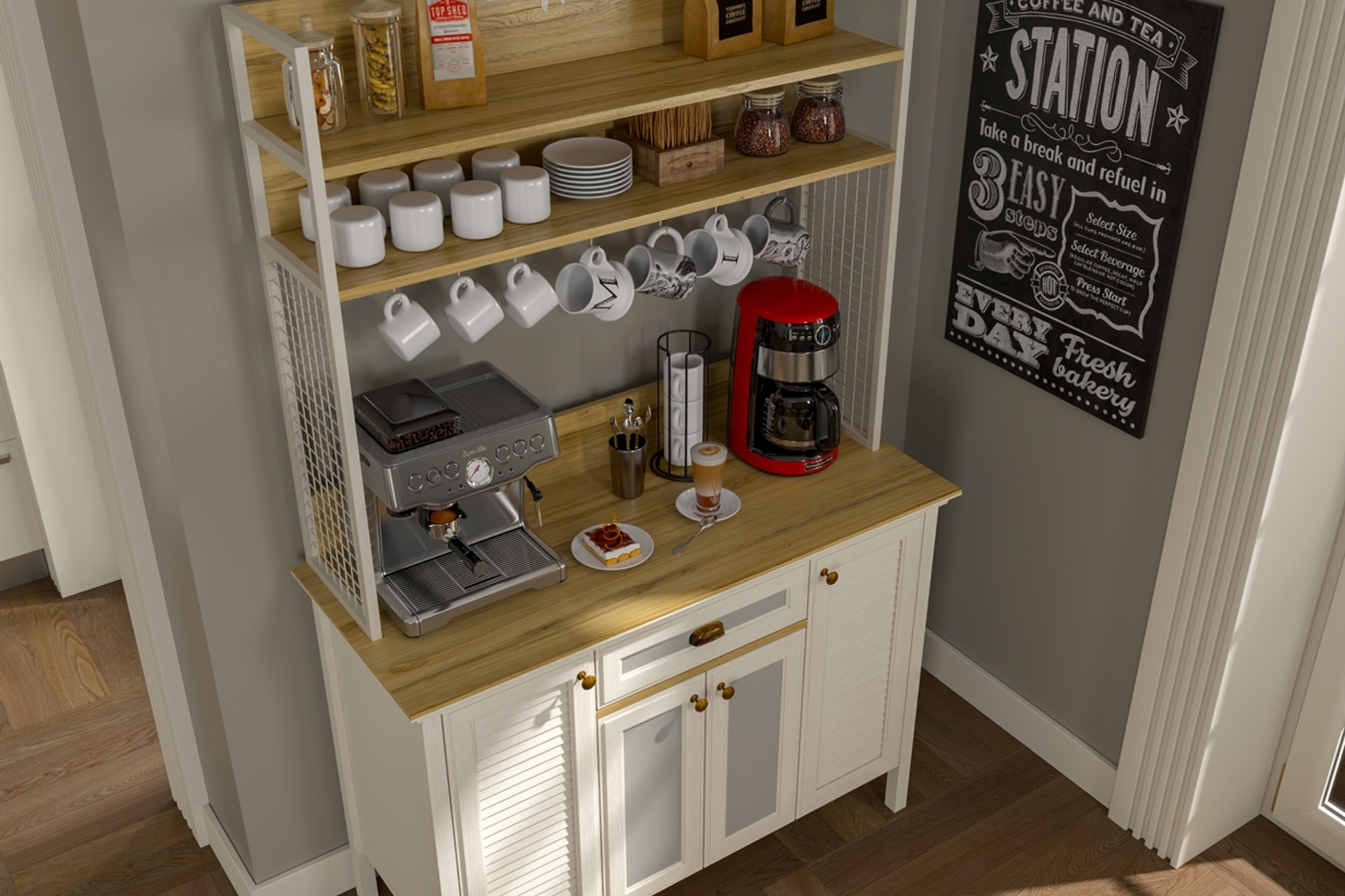 Tasarım4 KAPAKLI 1 ÇEKMECELİ BARDAK ASKILIKLI