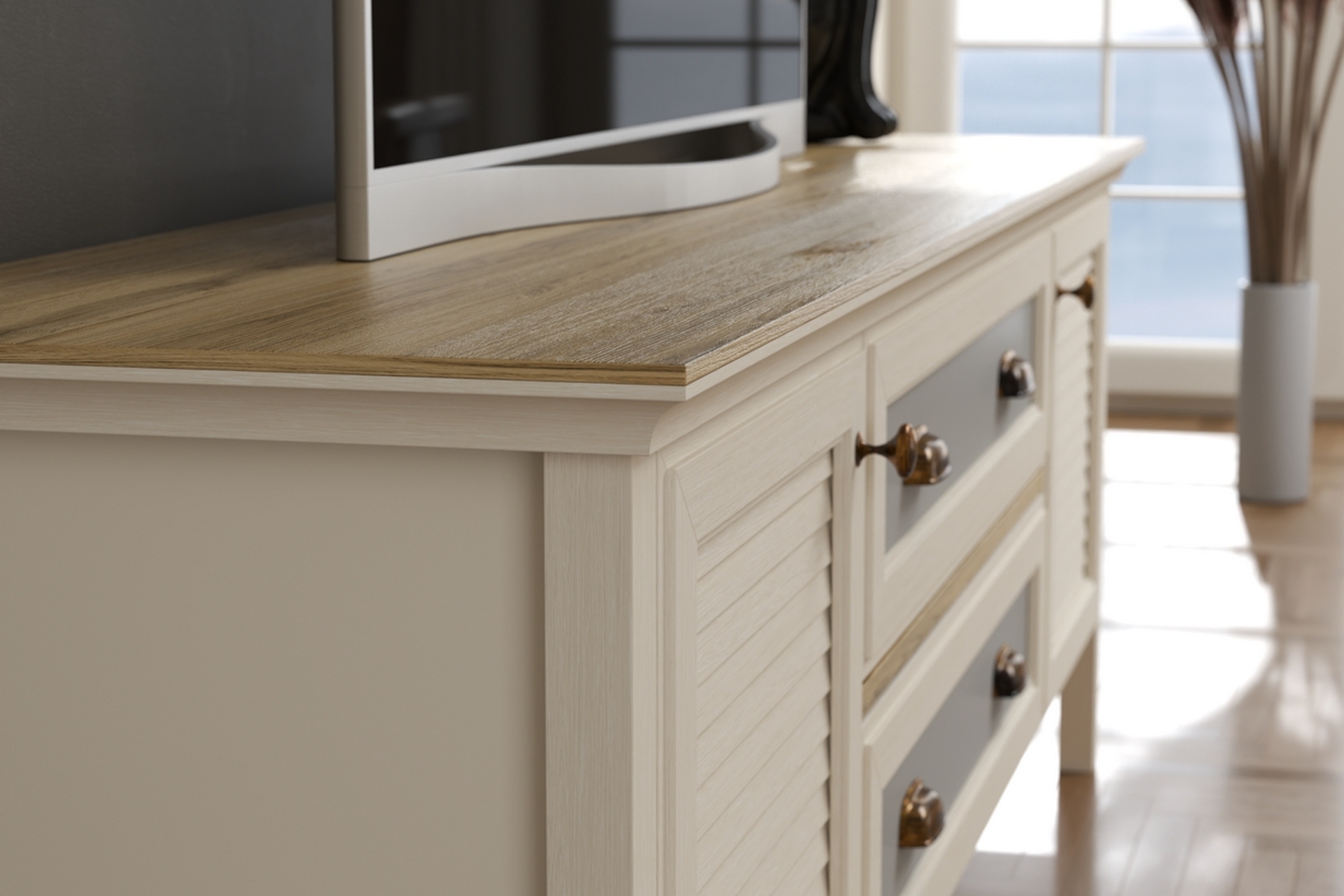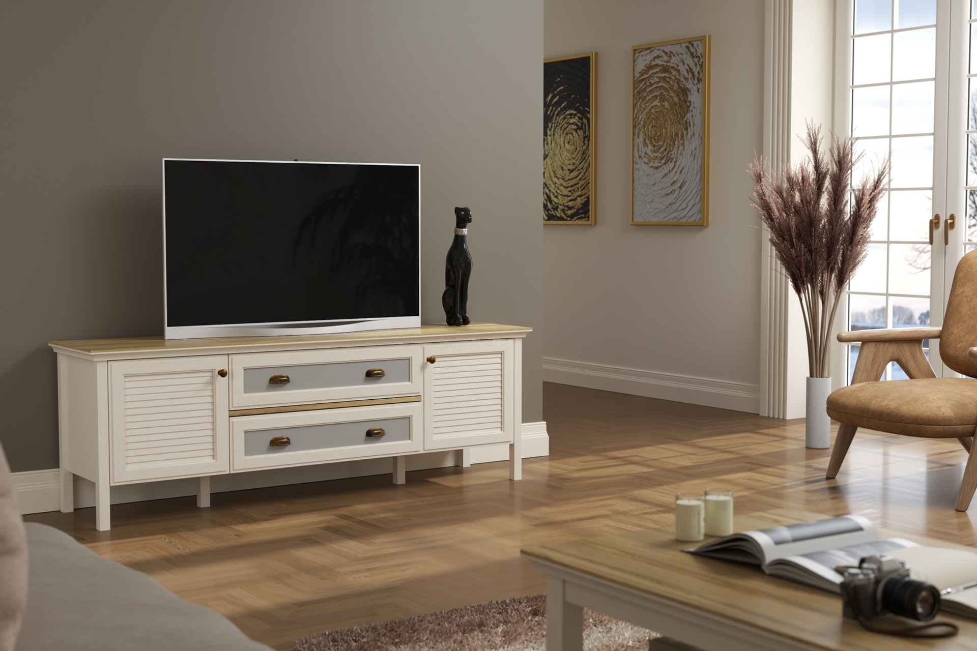 Ek BilgilerValena Tv Ünitesi - Konsol 2 Kapaklı 2 Çekmeceli Panjur Kapaklı MDF Profil Ayaklı 180 Cm Minifixli Modern ve şık tasarımıyla yaşam alanlarına zarif bir dokunuş katan TV Ünitemiz, fonksiyonel depolama alanları ve estetik görünümüyle ev dekorasyonunuza uyum sağlar. Minimal çizgileri, dayanıklı malzemesi ve trend renk seçenekleriyle salon ve oturma odalarında uzun yıllar rahatlıkla kullanabileceğiniz bir çözüm sunar. Hem modern hem de sıcak bir atmosfer yaratmak isteyenler için ideal bir seçimdir. Ölçüler Genişlik :180 Derinlik :44 Yükseklik :62 Renk : Aytaşı - Legnano Valena Serisi, modern çizgilerin İskandinav sadeliğiyle birleştiği; özel tasarım panjur kapak detaylarıyla premium mobilya deneyimini bir araya getiren seçkin bir koleksiyondur. Minimal tasarım anlayışını kalite odaklı üretim ile buluşturan De Valena, sofistike görünümü ve güçlü duruşuyla yaşam alanlarına zarafet katar. TV ünitesi, konsol, makyaj masası ve çalışma masası gibi koleksiyonun her ürünü; özgün hatları, dekoratif panjur kapakları ve modern yüzey yapısıyla ev dekorasyonunda üst seviye bir stil arayanlar için tasarlanmıştır. İskandinav sıcaklığını modern şıklıkla harmanlayan bu seri, hem dekoratif görünüm hem de fonksiyonel kullanım sunar. Sade geometrik formlar, yumuşak renk geçişleri ve özel yüzey dokuları; ürünlere premium bir hissiyat kazandırırken, mekânlara ferah ve estetik bir atmosfer oluşturur. De Valena Serisi, modern yaşam alanlarında hem düzen hem şıklık arayanlar için ideal bir tasarım anlayışı sunar.