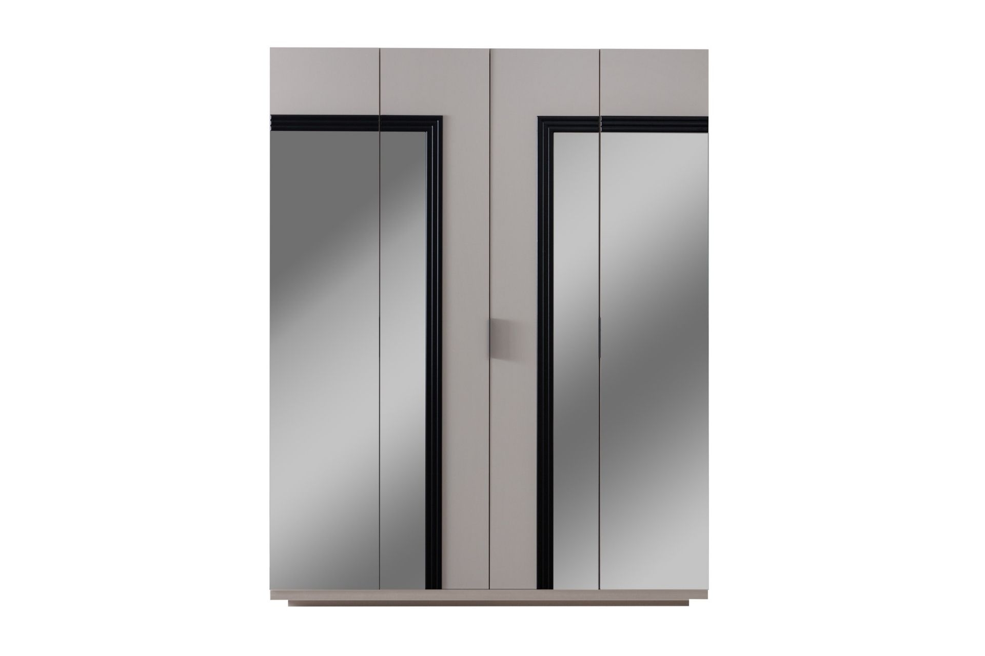 Ek Bilgiler1. Sınıf Melamin Kaplı Yonga Levha malzemeden üretilmiştir. Ön kapakta bulunan siyah şeritler MDF malzemedir. Dolap 4 kapaklı ve aynalıdır. Dolap içerisinde askı bölümü ve raflar yer almaktadır. Ürün düz menteşe kapaklıdır. Kulplar alüminyumdur Ürün Kurulu Ölçüleri : Genişlik : 160 cm Yükseklik : 208 cm Derinlik: 51 cm