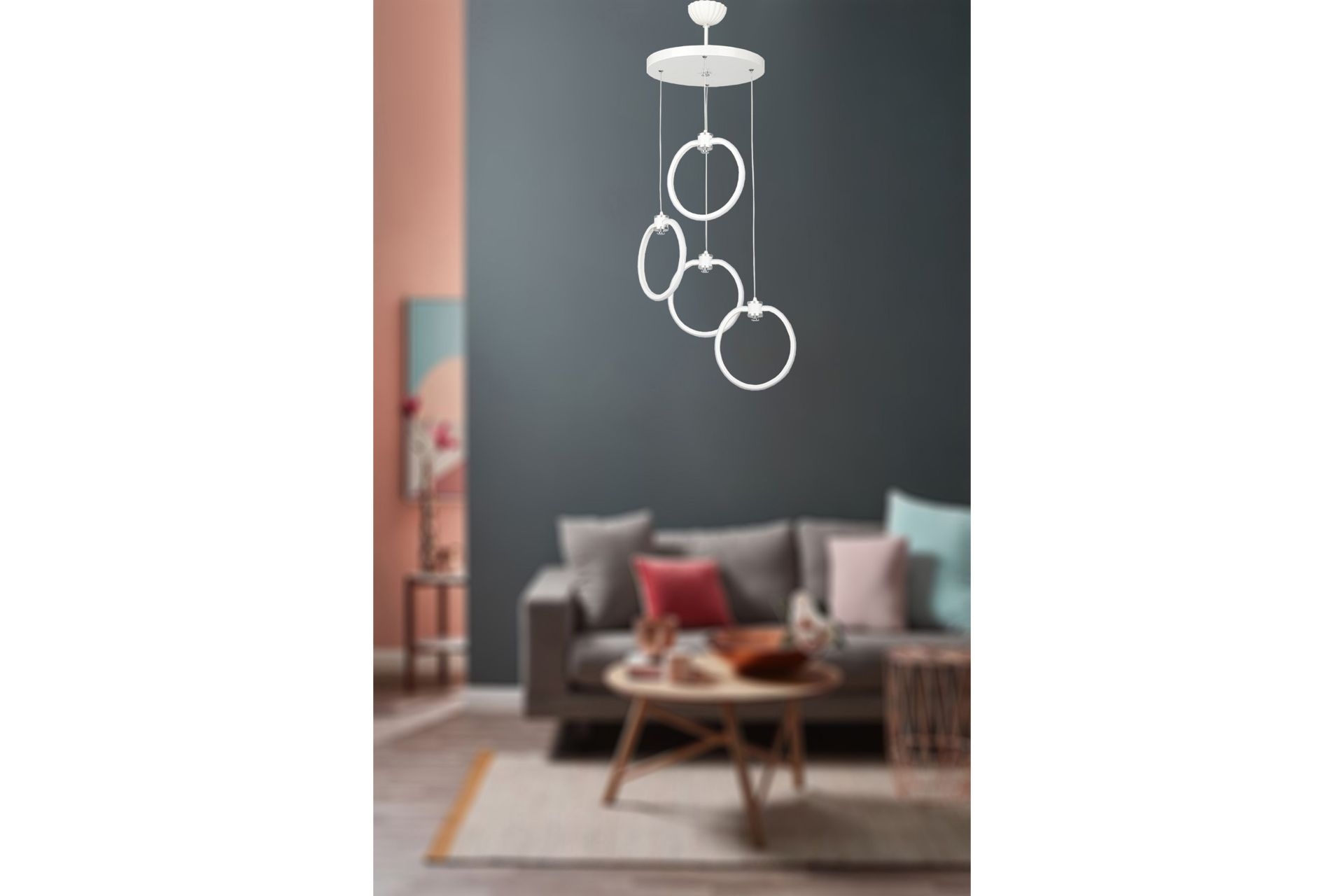 VENON AYDINLATMA HESTİA DÖRTLÜ SARKIT AVİZE, BEYAZ 42 cm 42 cm 124 cm
