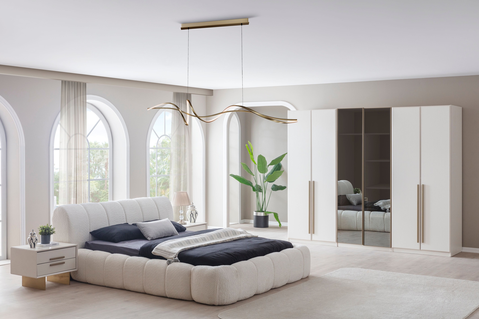 Takım İçeriğiGARDIROP - BAZALI KARYOLA -2 KOMODİN - ŞİFONYER VE AYNA