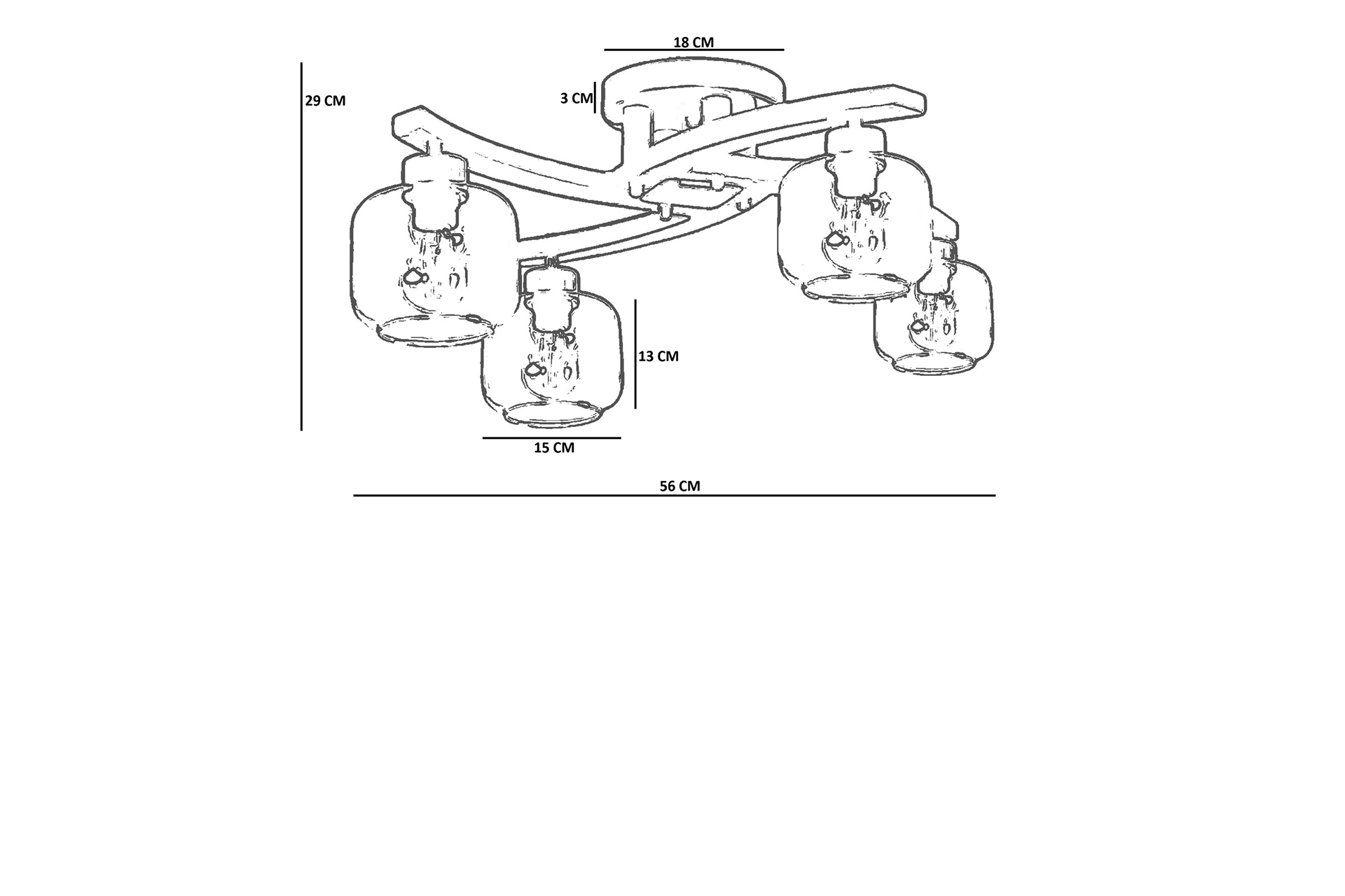 WESTON 4 LÜ CEVİZ FÜME CAMLI PLOFONYER AVİZE 56 cm 1 cm 29 cm