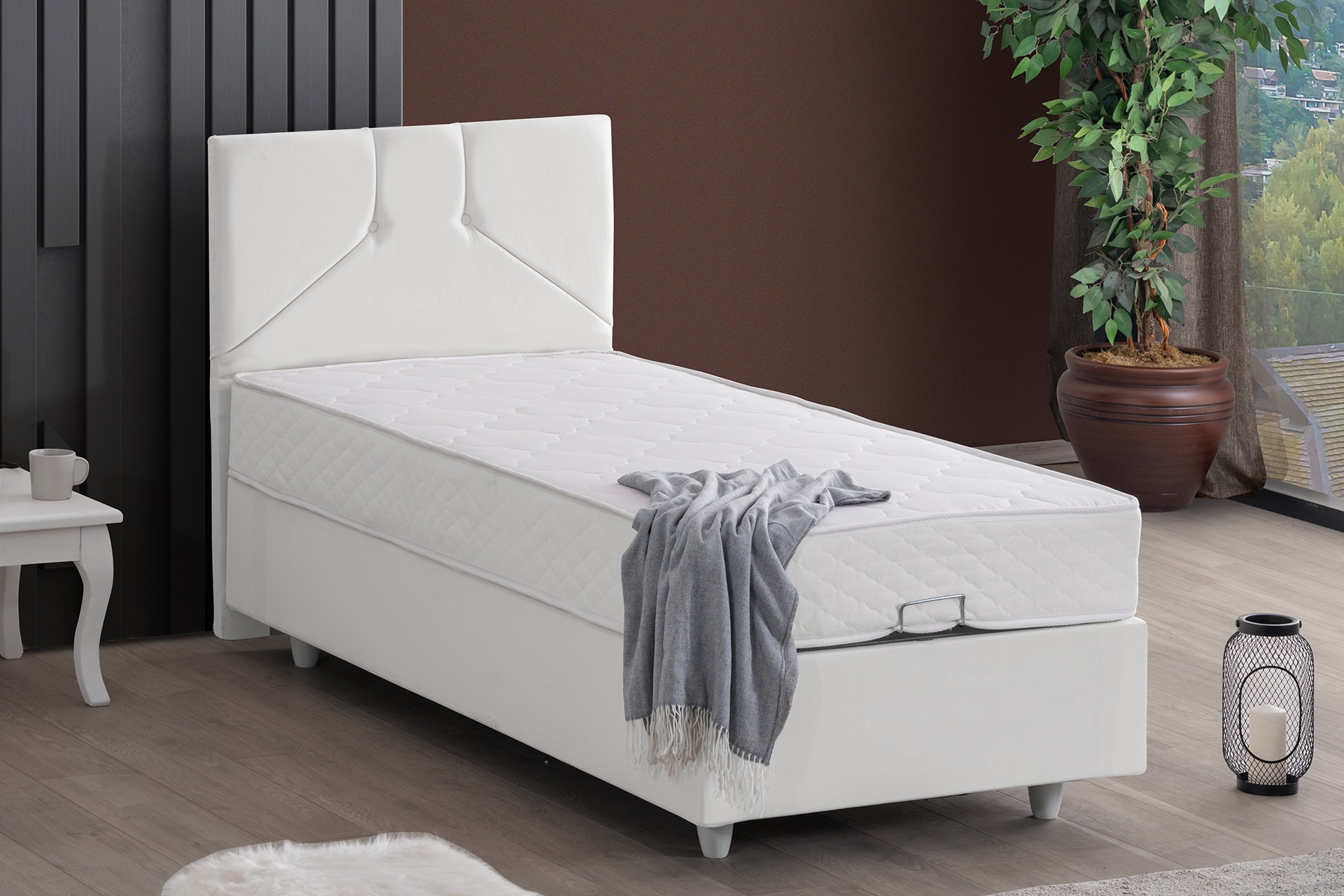 Ek BilgilerBaza malzemesi: MDF + Çelik Profil Kumaş malzemesi: 1. Kalite Silinebilir Soho Kumaş Başlık Yüksekliği : 105 cm Baza ayaksız yükseklik: 25 cm Baza iç derinliği: 23 cm Ayak Malzemesi: Armut Ayak 10 cm Letto Yatak Özellikleri; Yarı ortopedik destek, 1000 gr sert keçe kullanılmıştır. 180 gr jakarlı kumaş ile kaplanmıştır. Yaylar arasındaki ağırlığı dengeli dağıtan takoz sünger kullanılmıştır. Yükseklik 21 cm dir( +/- 1 cm )